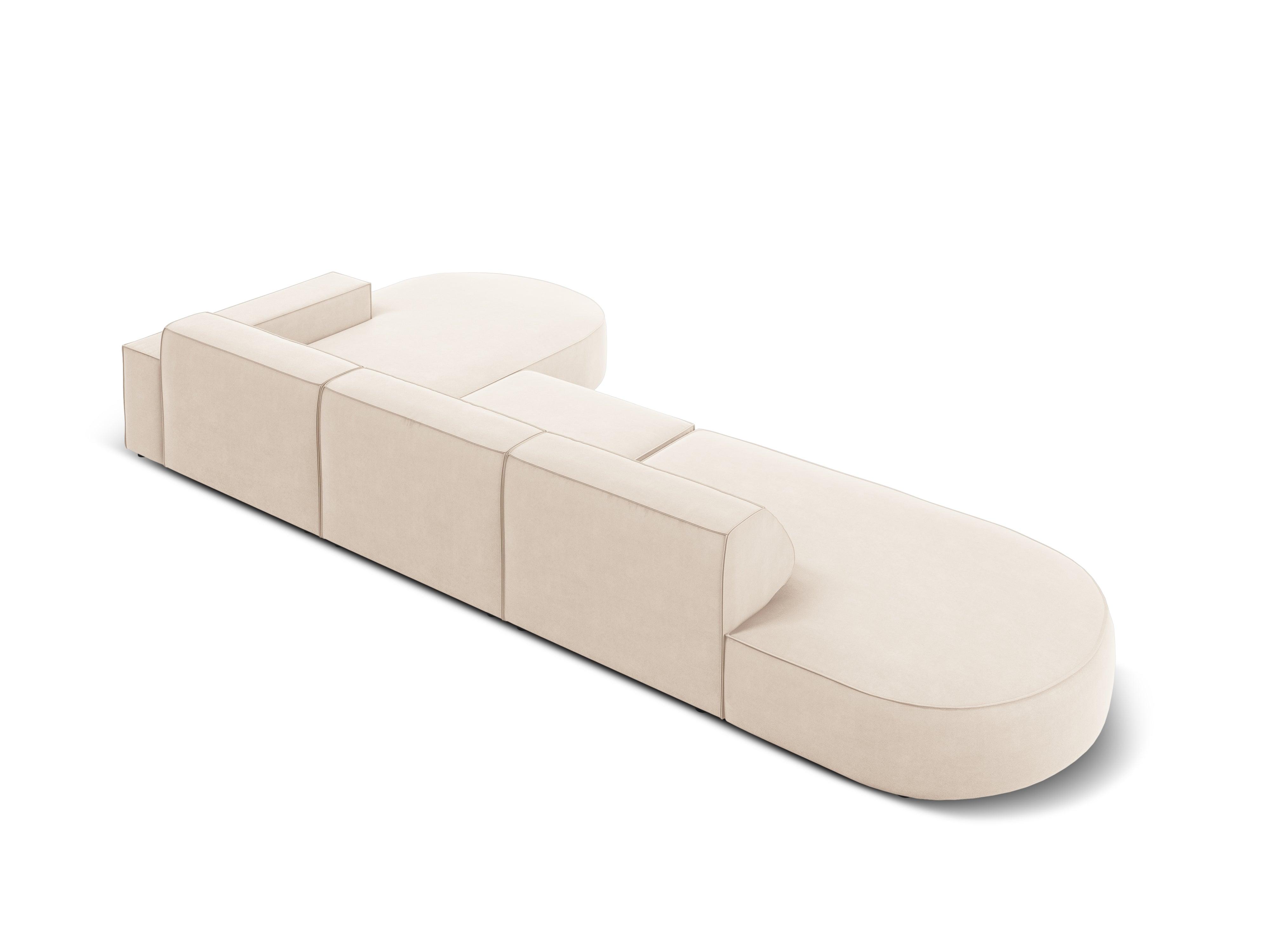 Narożnik aksamitny prawostronny 4-osobowy otwarty JODIE jasnobeżowy