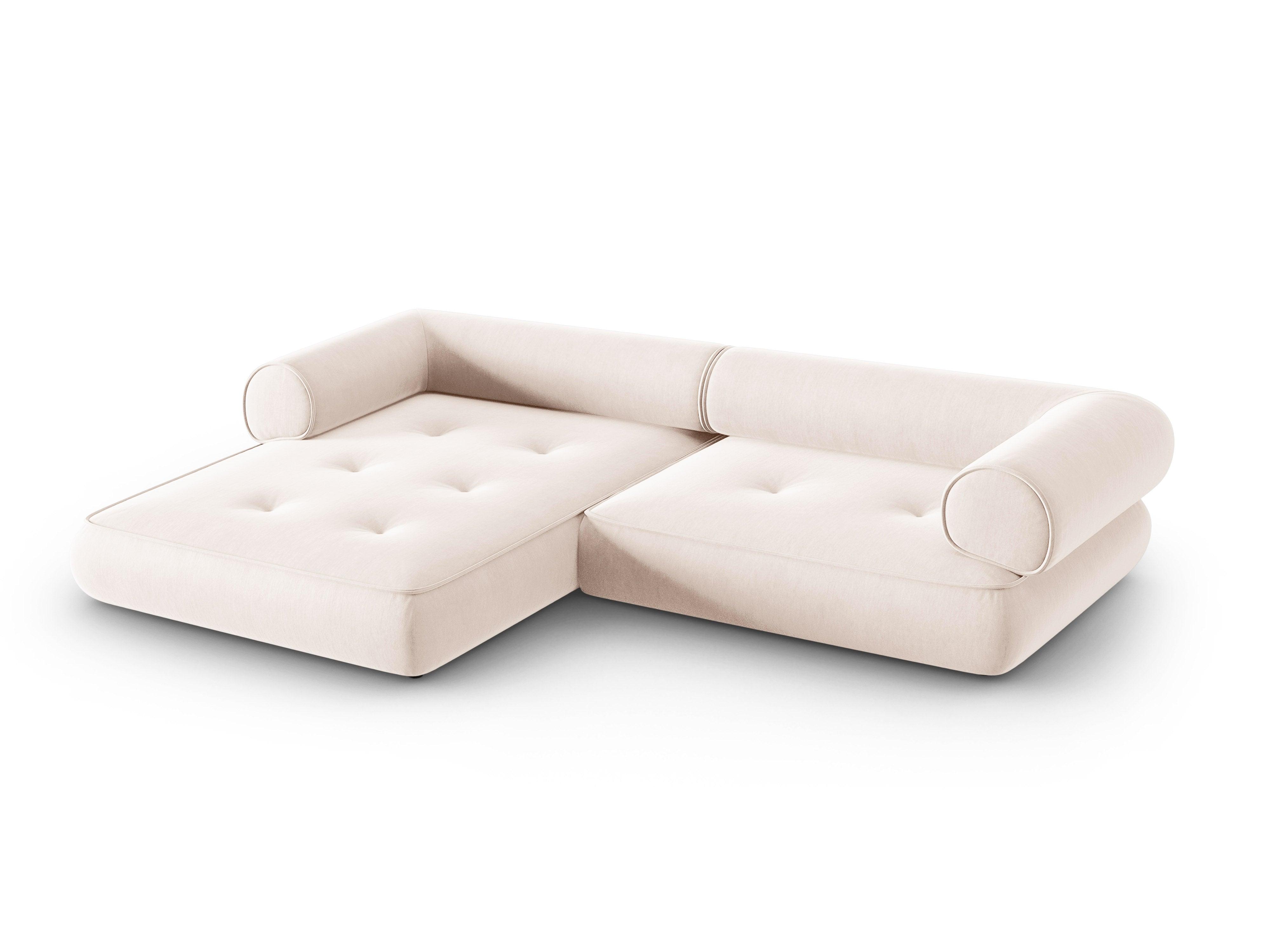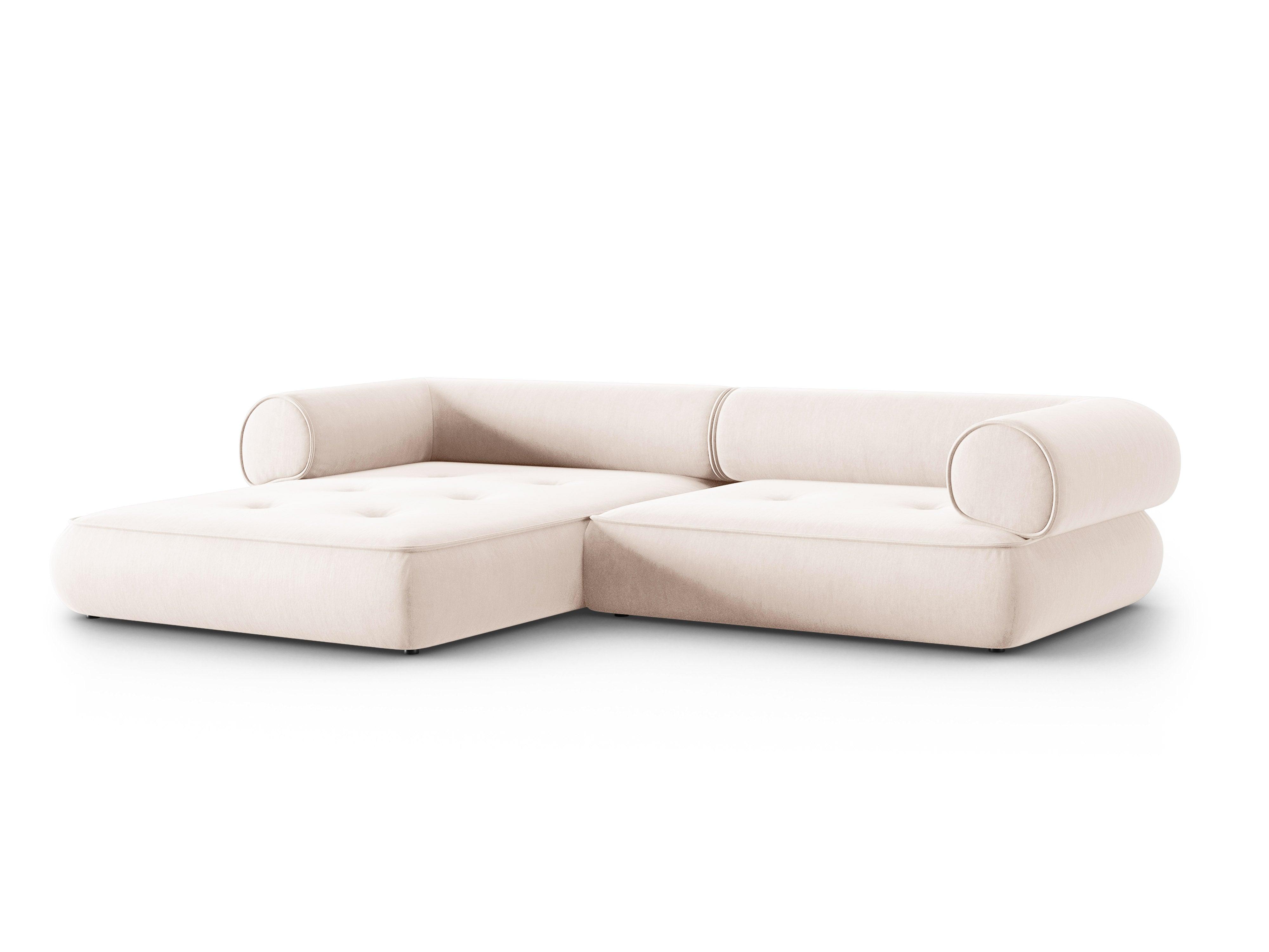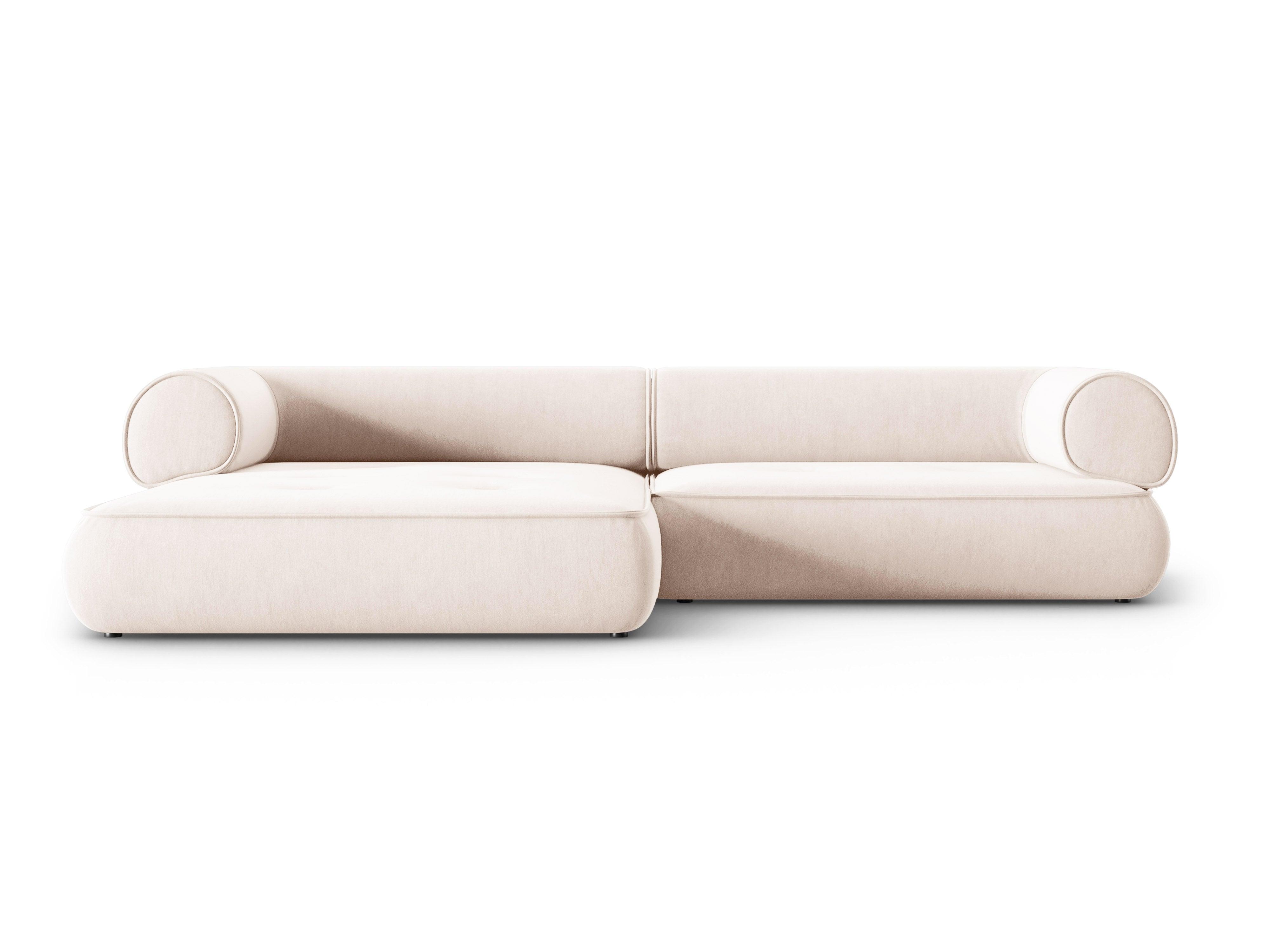 Narożnik w tkaninie szenilowej lewostronny LILY jasnobeżowy