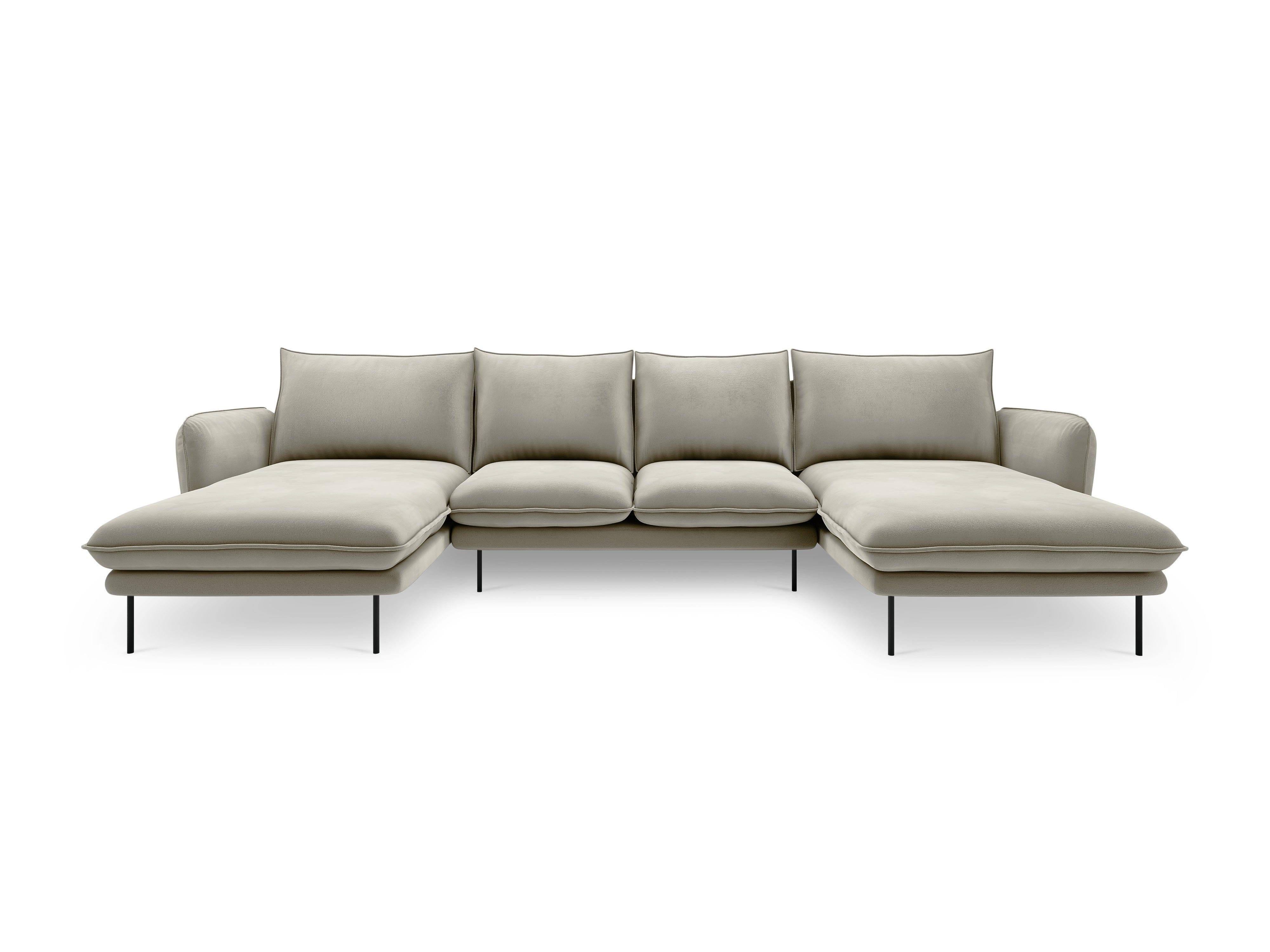 Narożnik aksamitny w kształcie U VIENNA beżowy z czarną podstawą