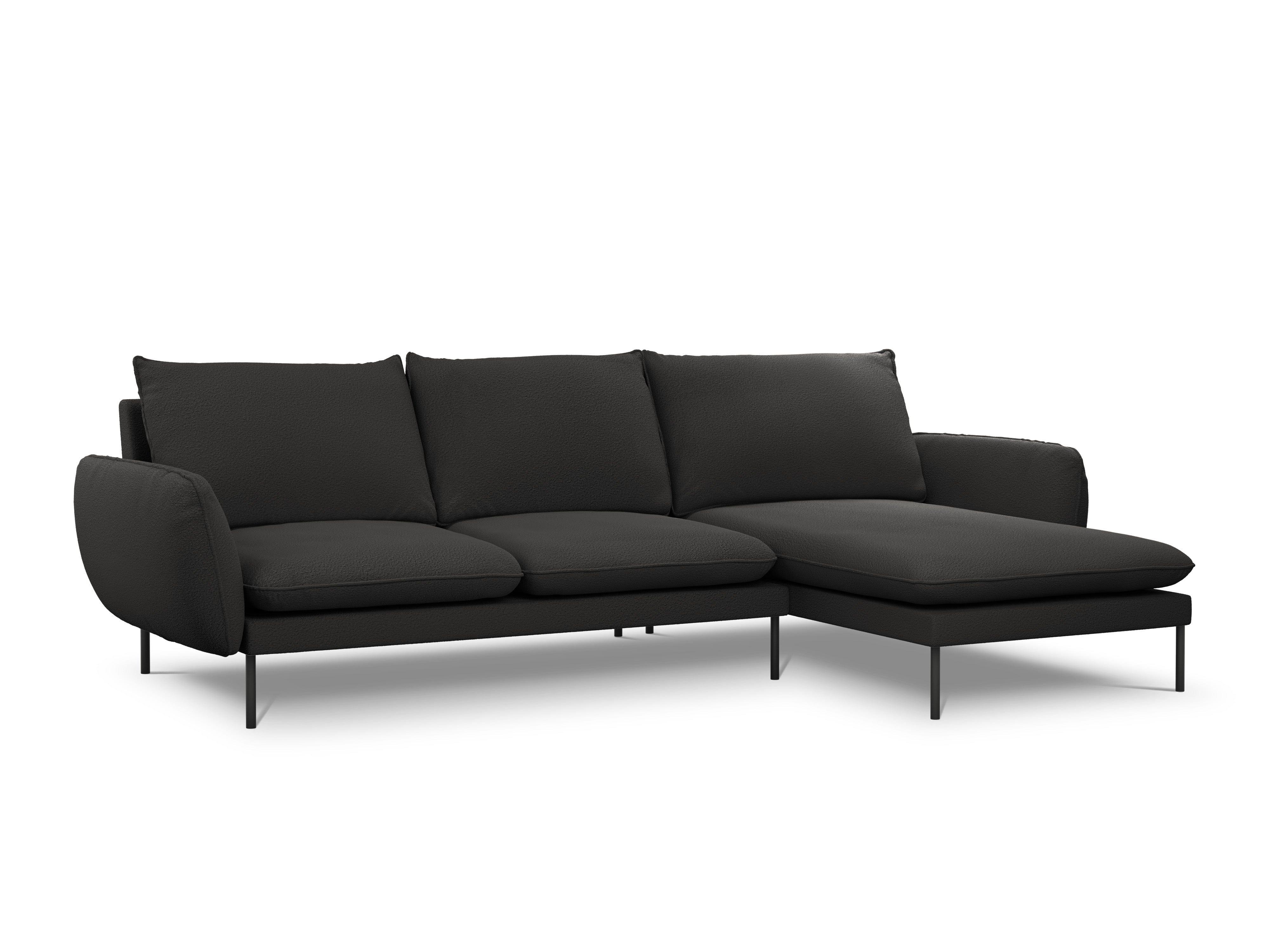 Narożnik w tkaninie boucle prawostronny VIENNA czarny z czarną podstawą