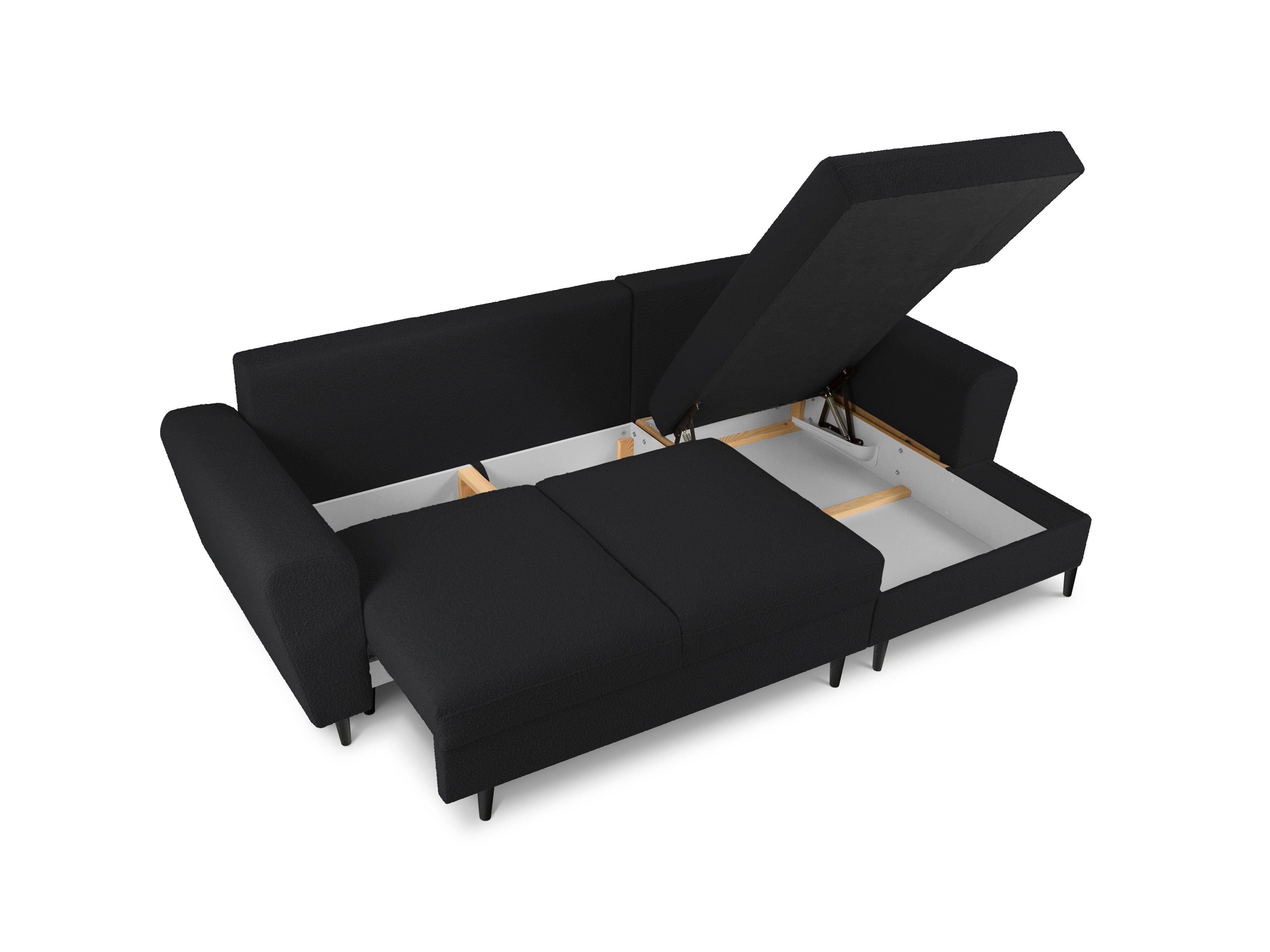 Narożnik prawostronny z funkcją spania KYOTO czarny bouclé z czarną podstawą