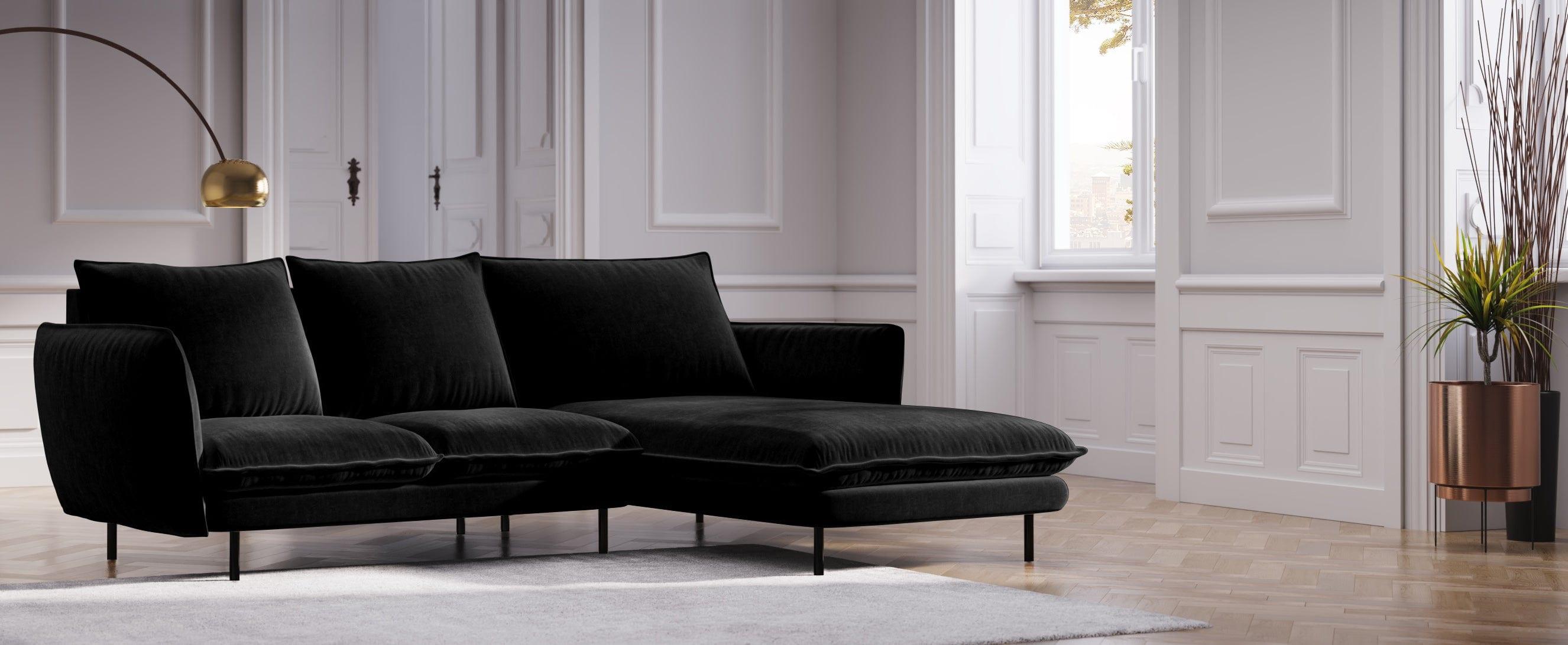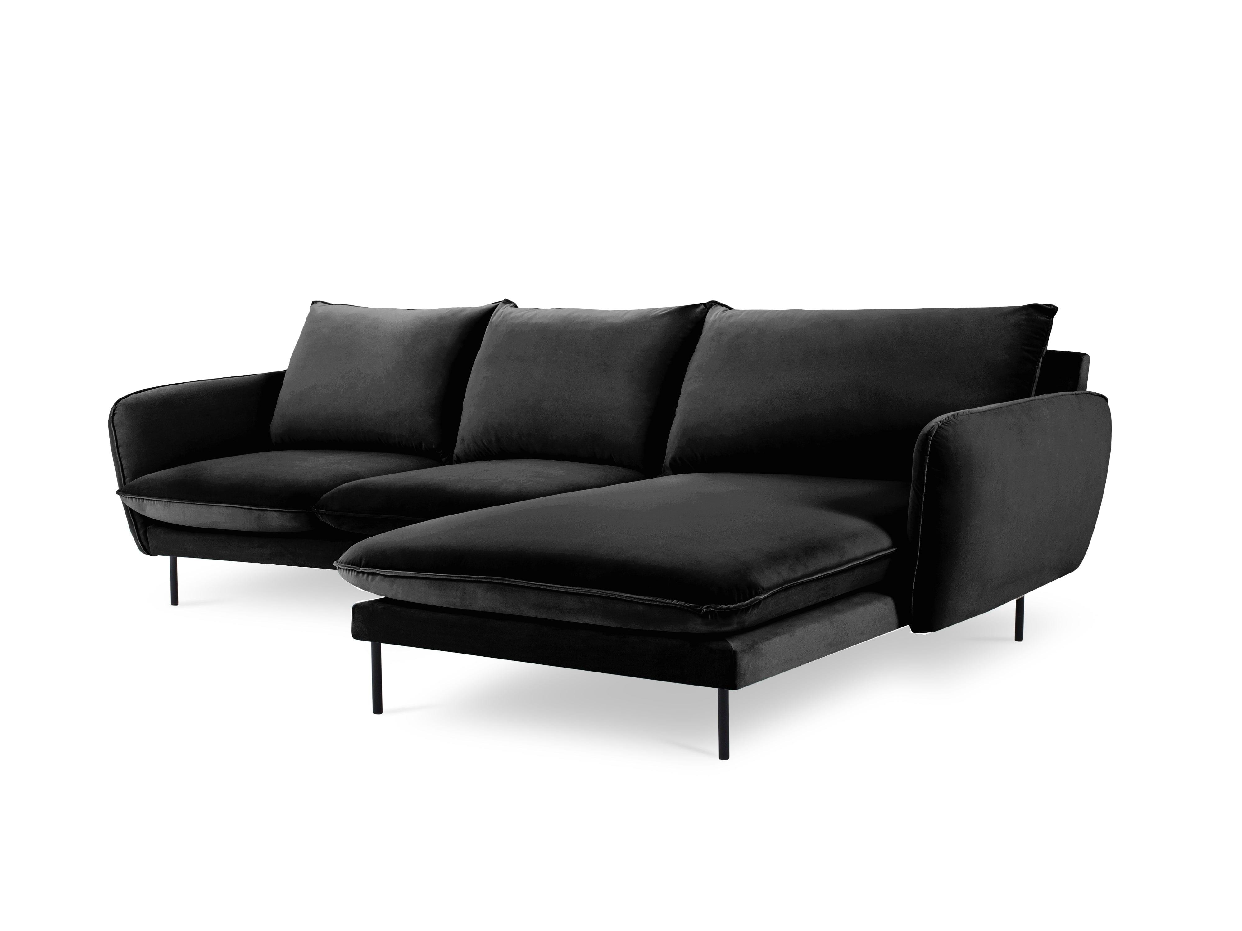 Narożnik aksamitny prawostronny VIENNA czarny z czarną podstawą