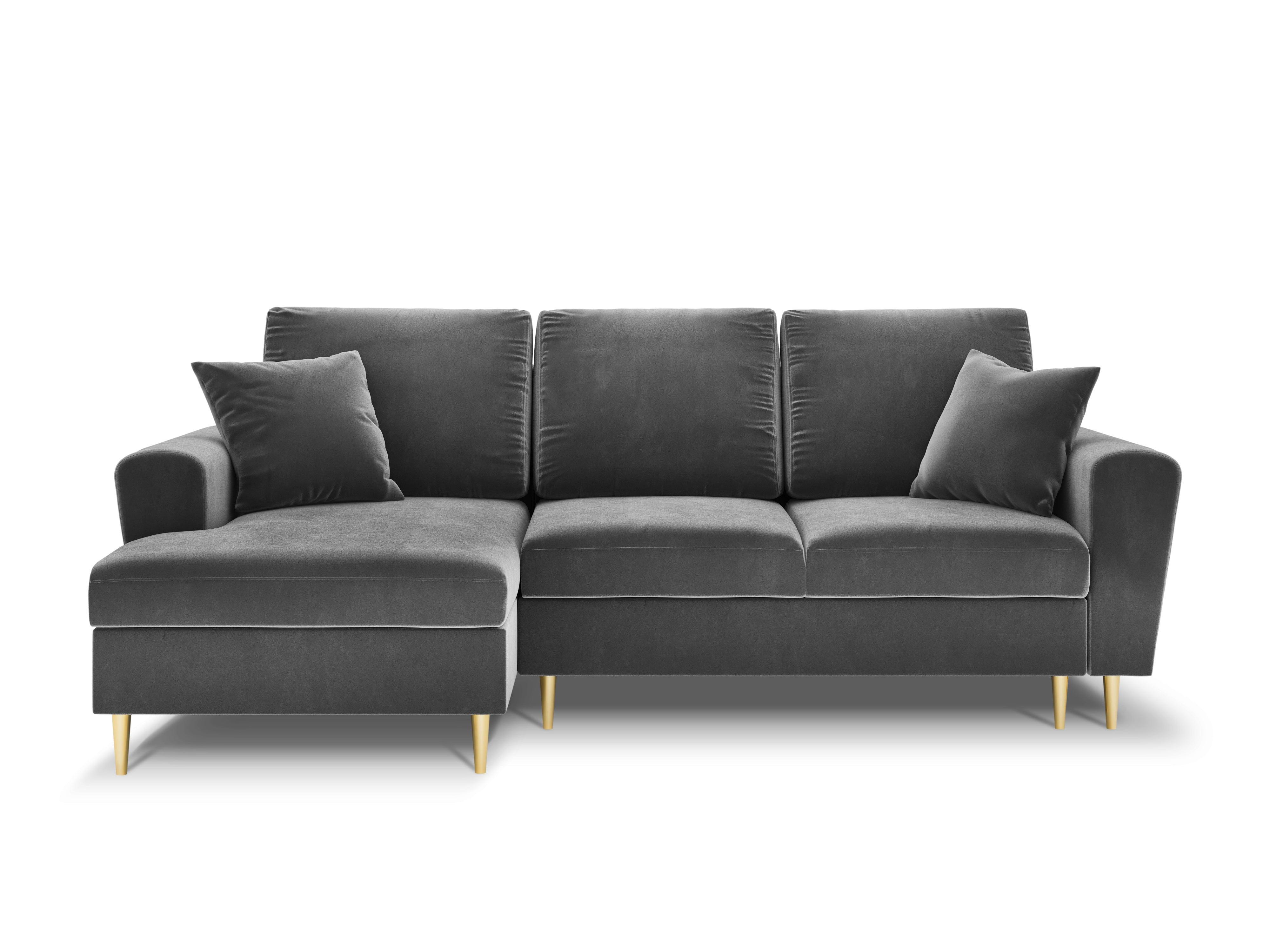 Narożnik lewostronny aksamitny z funkcją spania KYOTO jasnoszary ze złotą podstawą