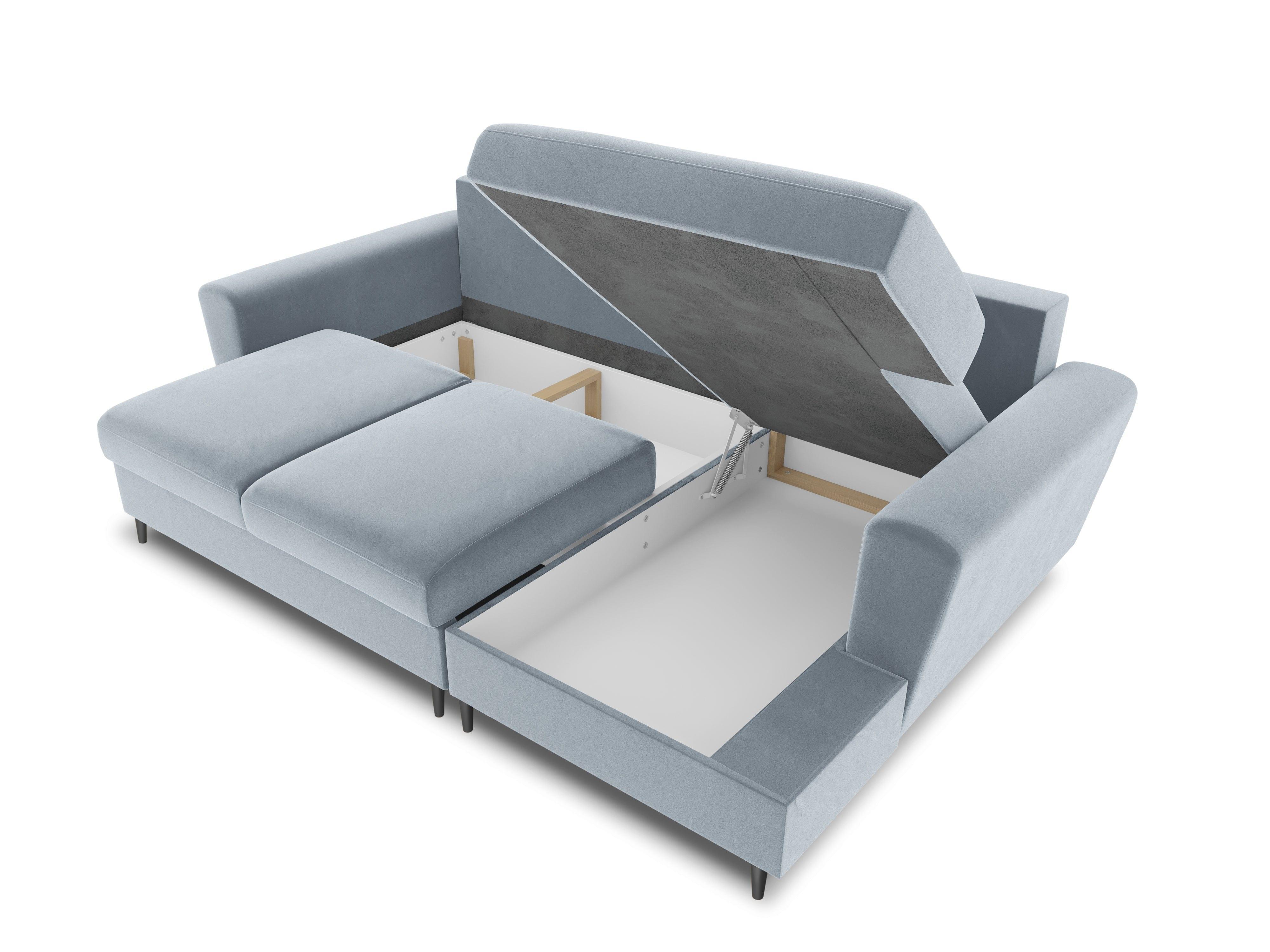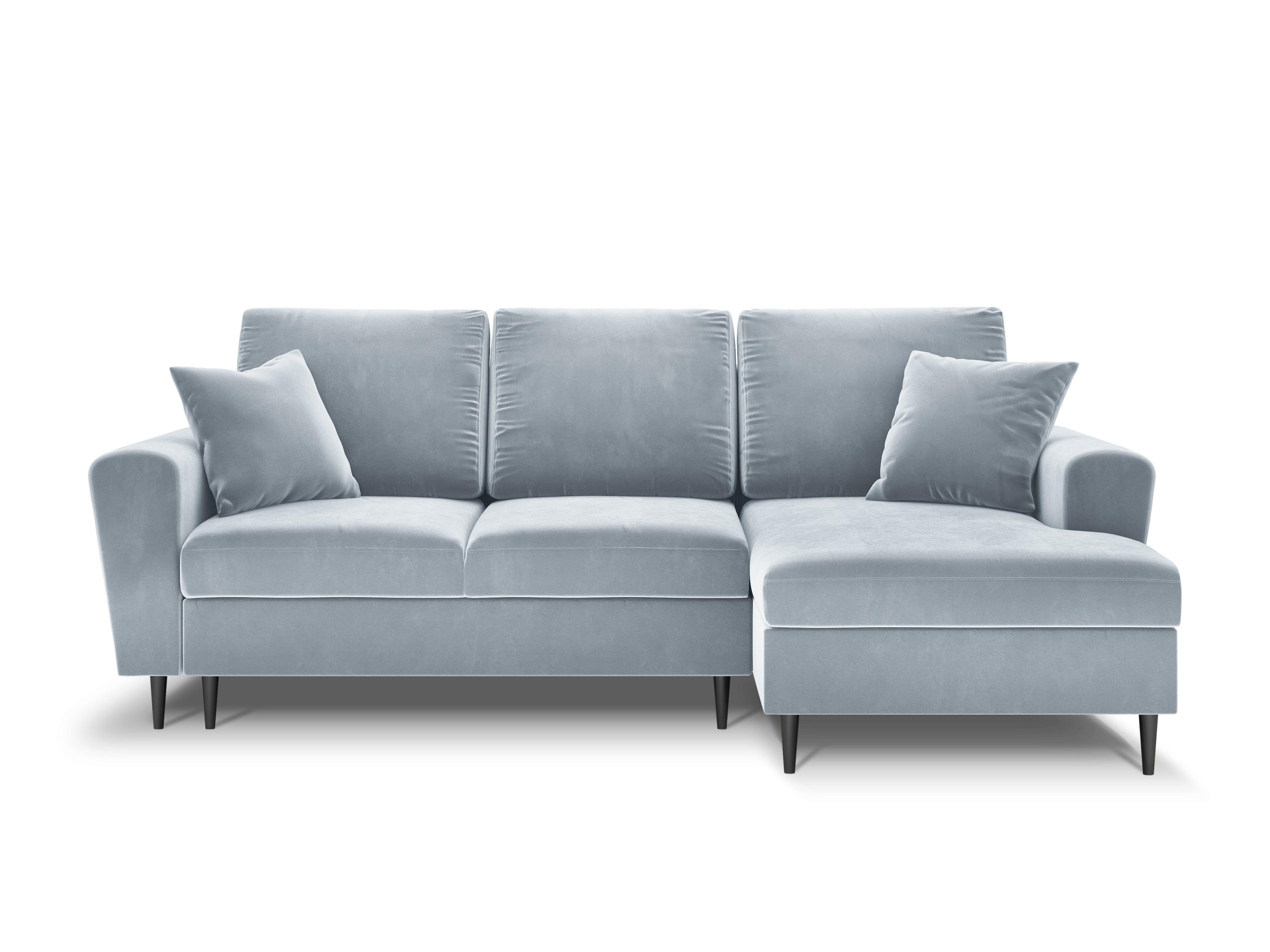 Narożnik prawostronny aksamitny z funkcją spania KYOTO jasnoniebieski z czarną podstawą