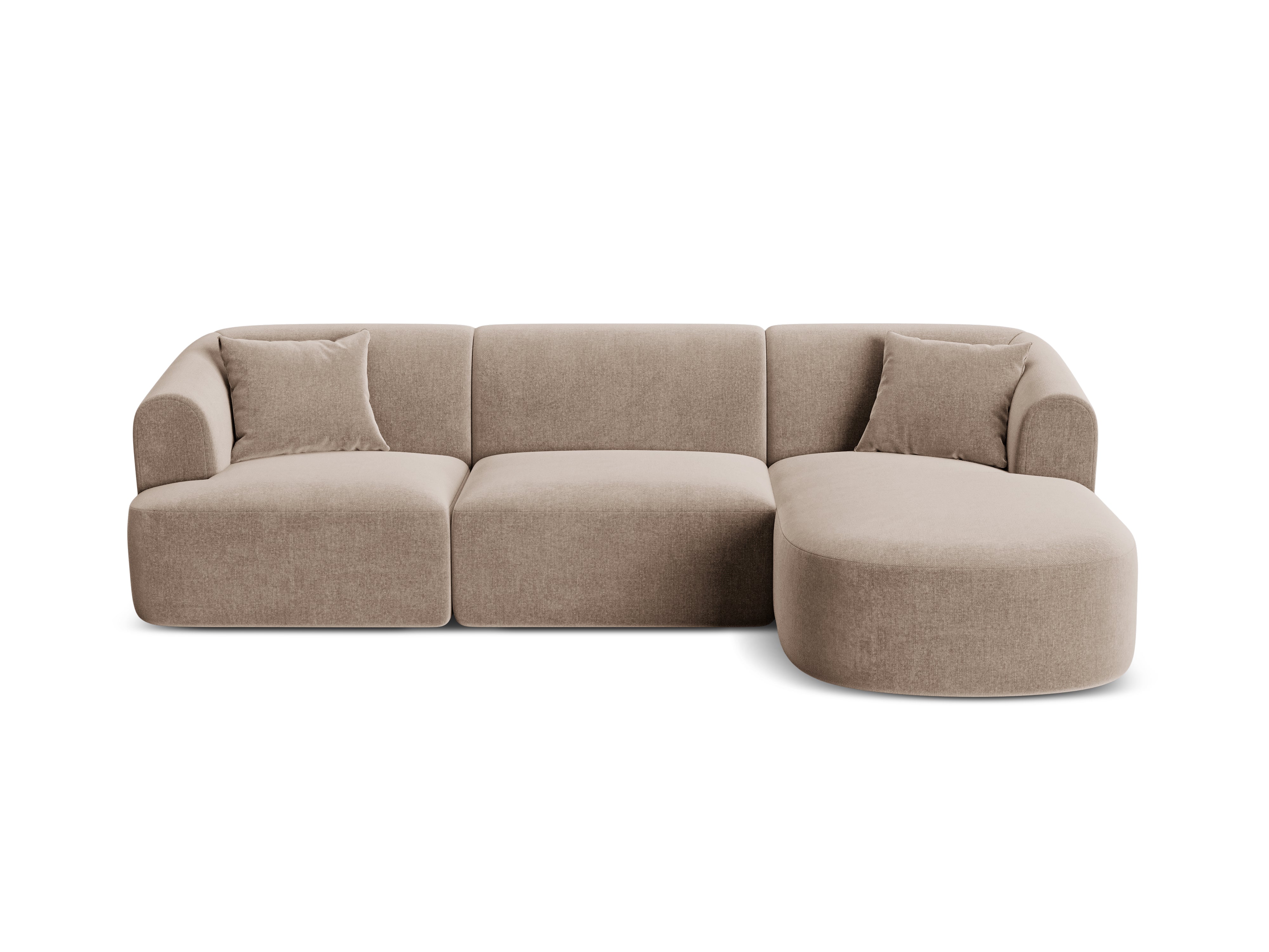 Narożnik aksamitny prawostronny 4-osobowy CAMPI ciemnobeżowy