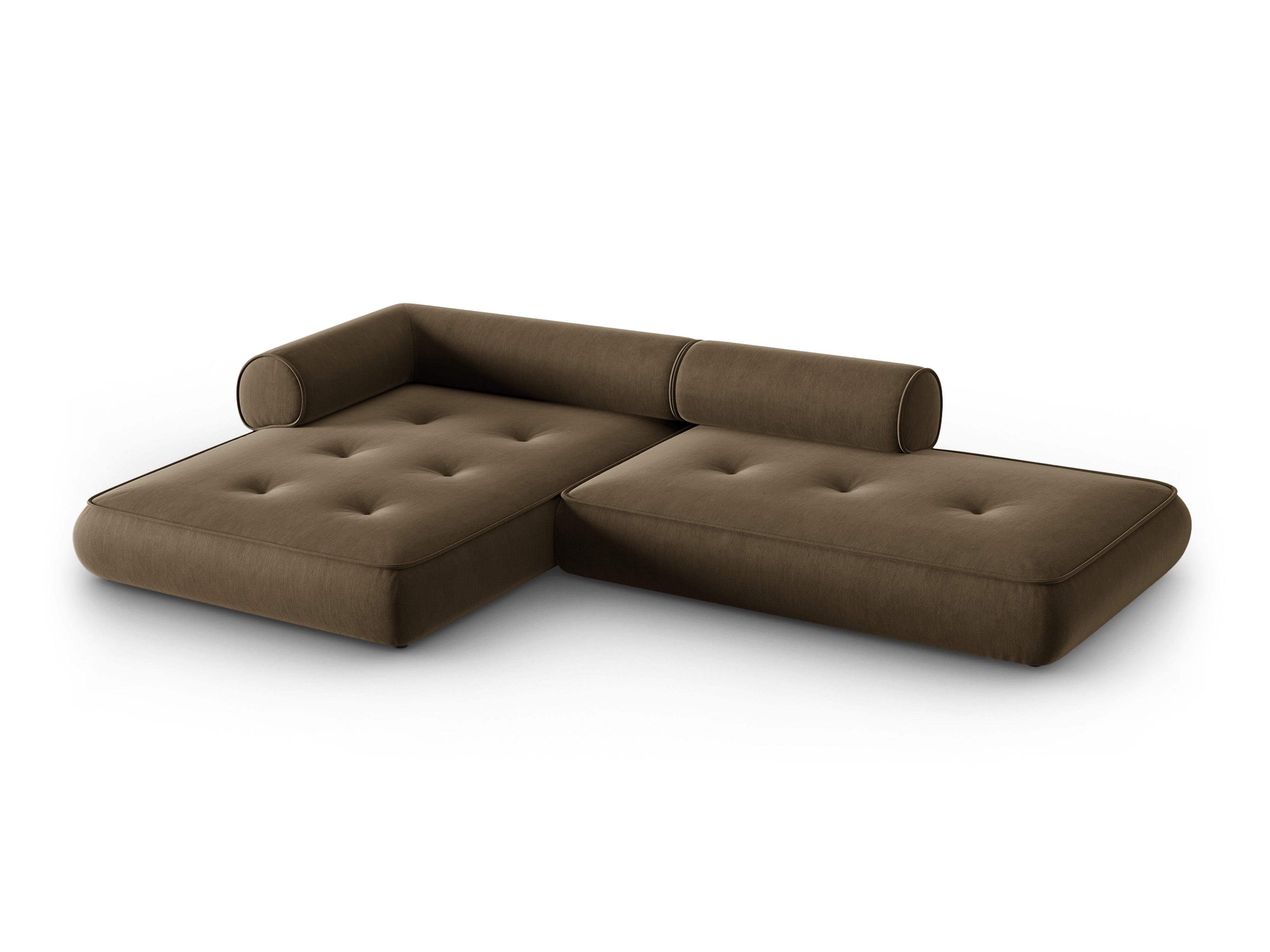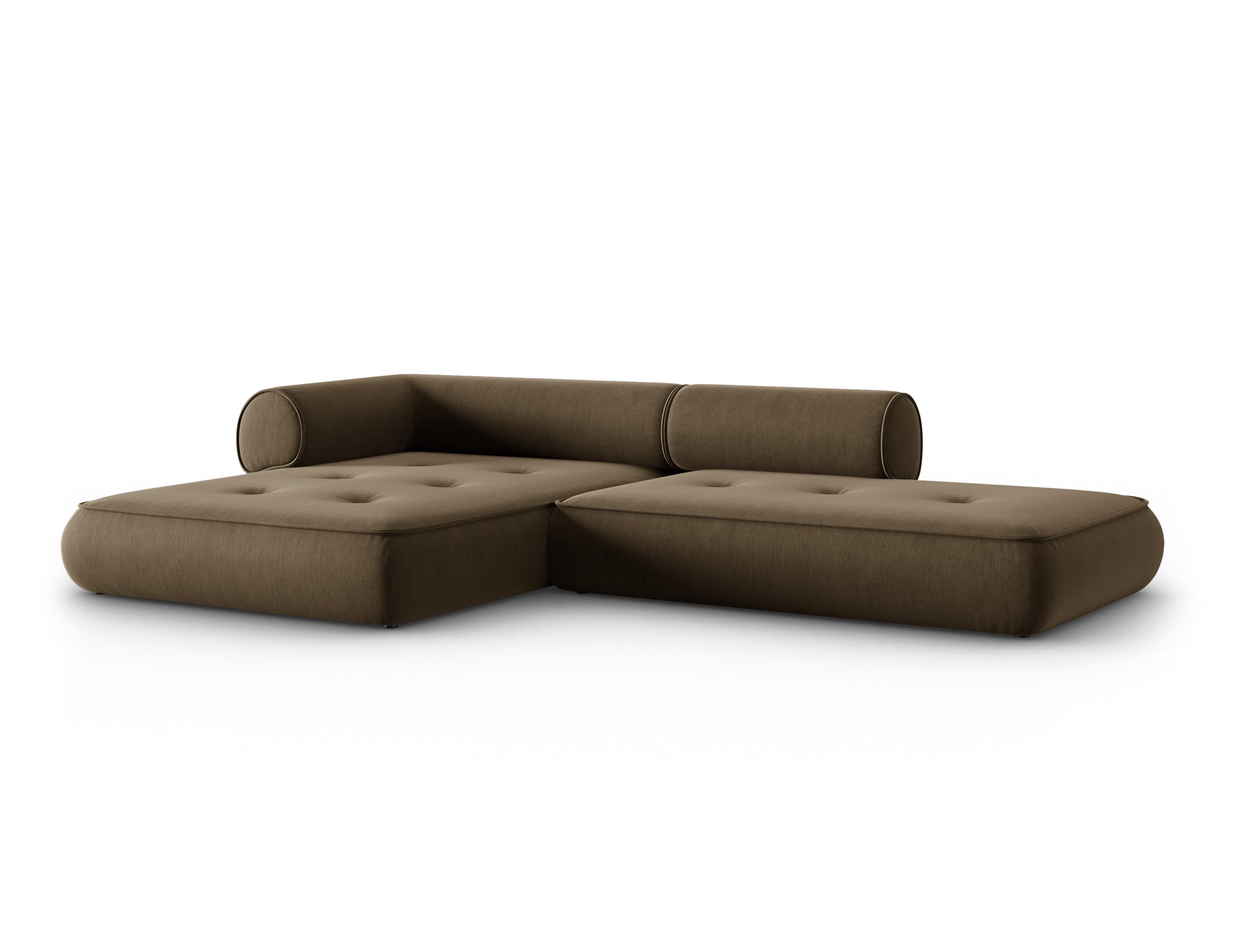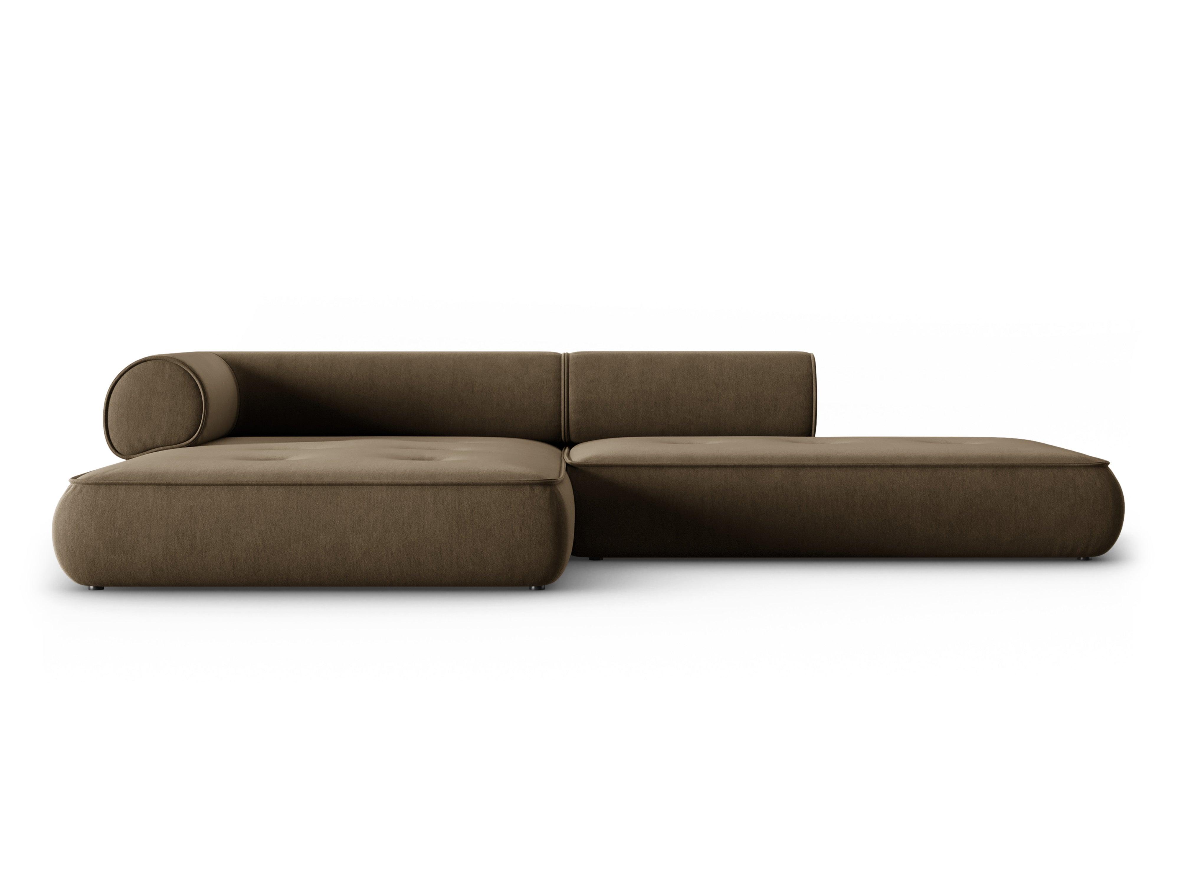 Narożnik w tkaninie szenilowej lewostronny otwarty LILY szarobrązowy
