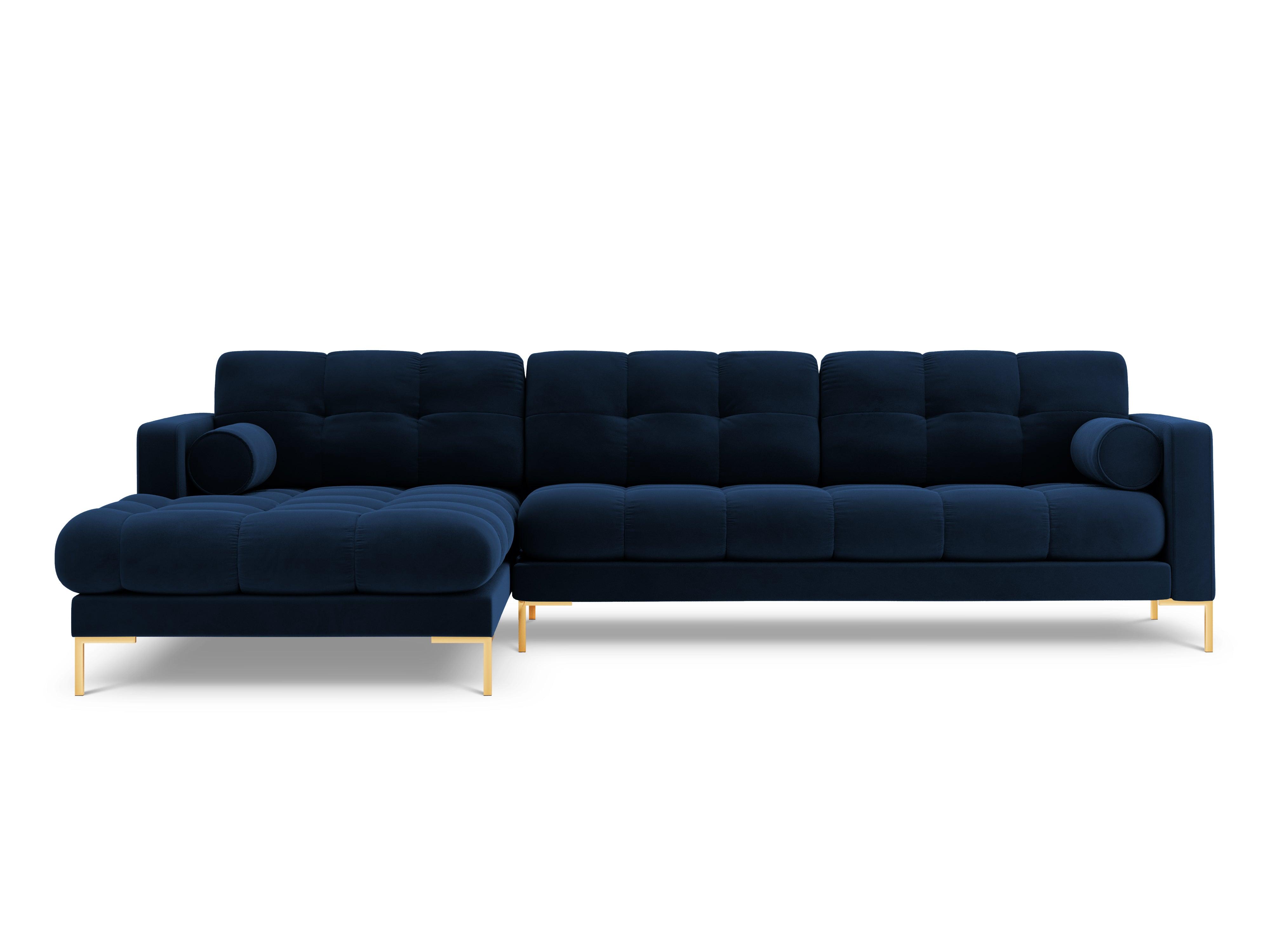 Narożnik aksamitny lewostronny BALI granat królewski ze złotą podstawą