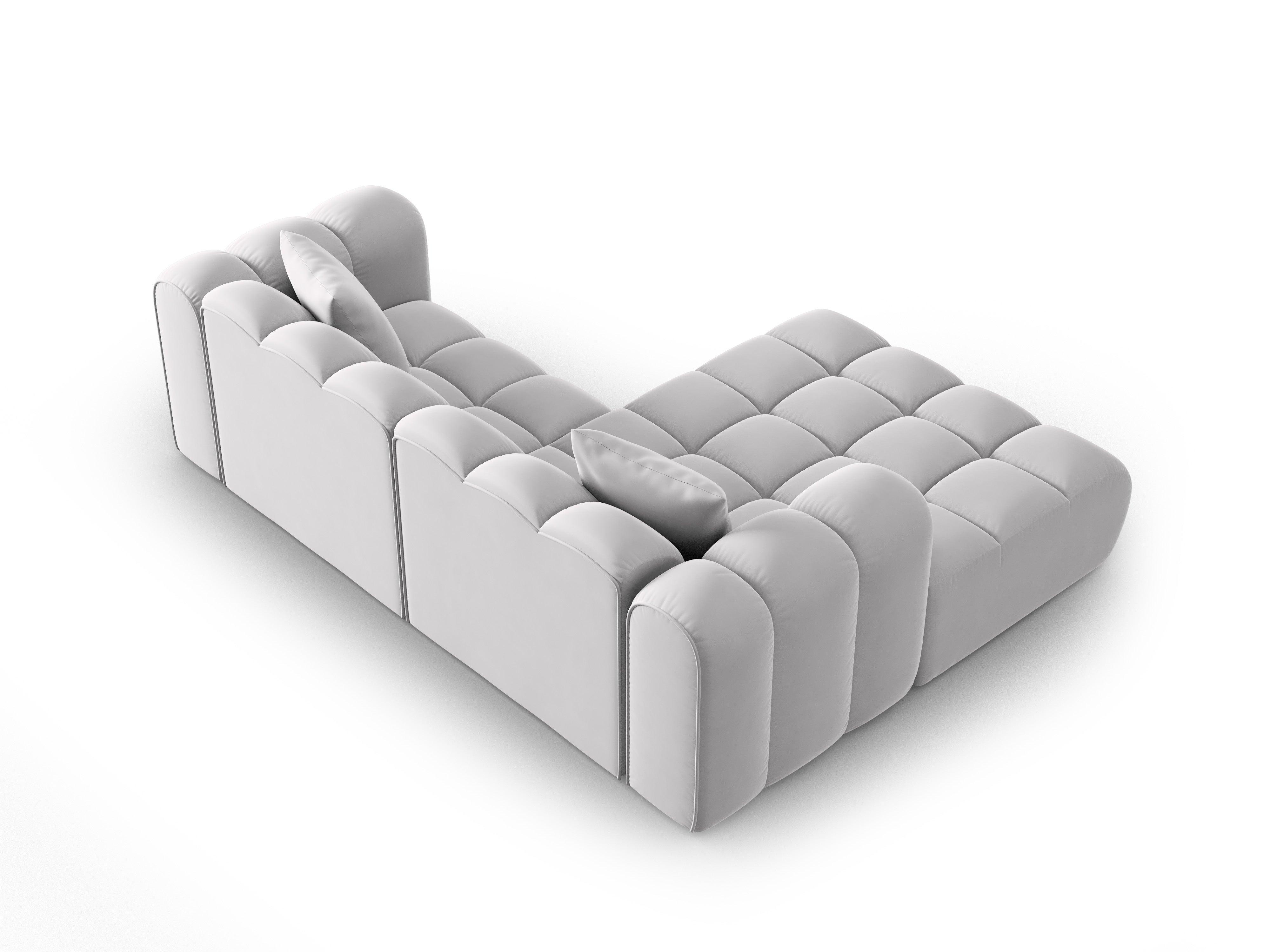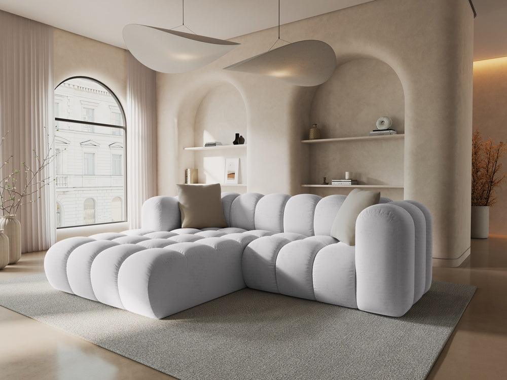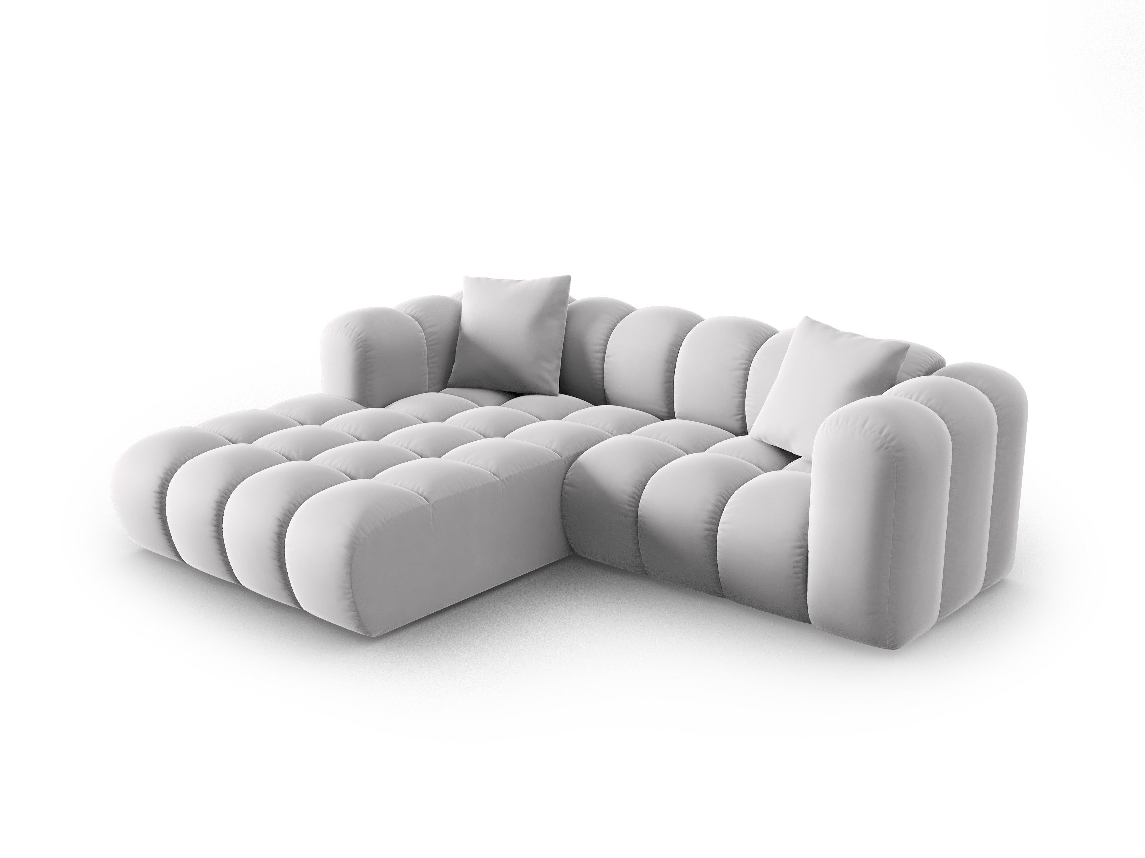 Narożnik aksamitny 3-osobowy lewostronny HALLEY srebrny