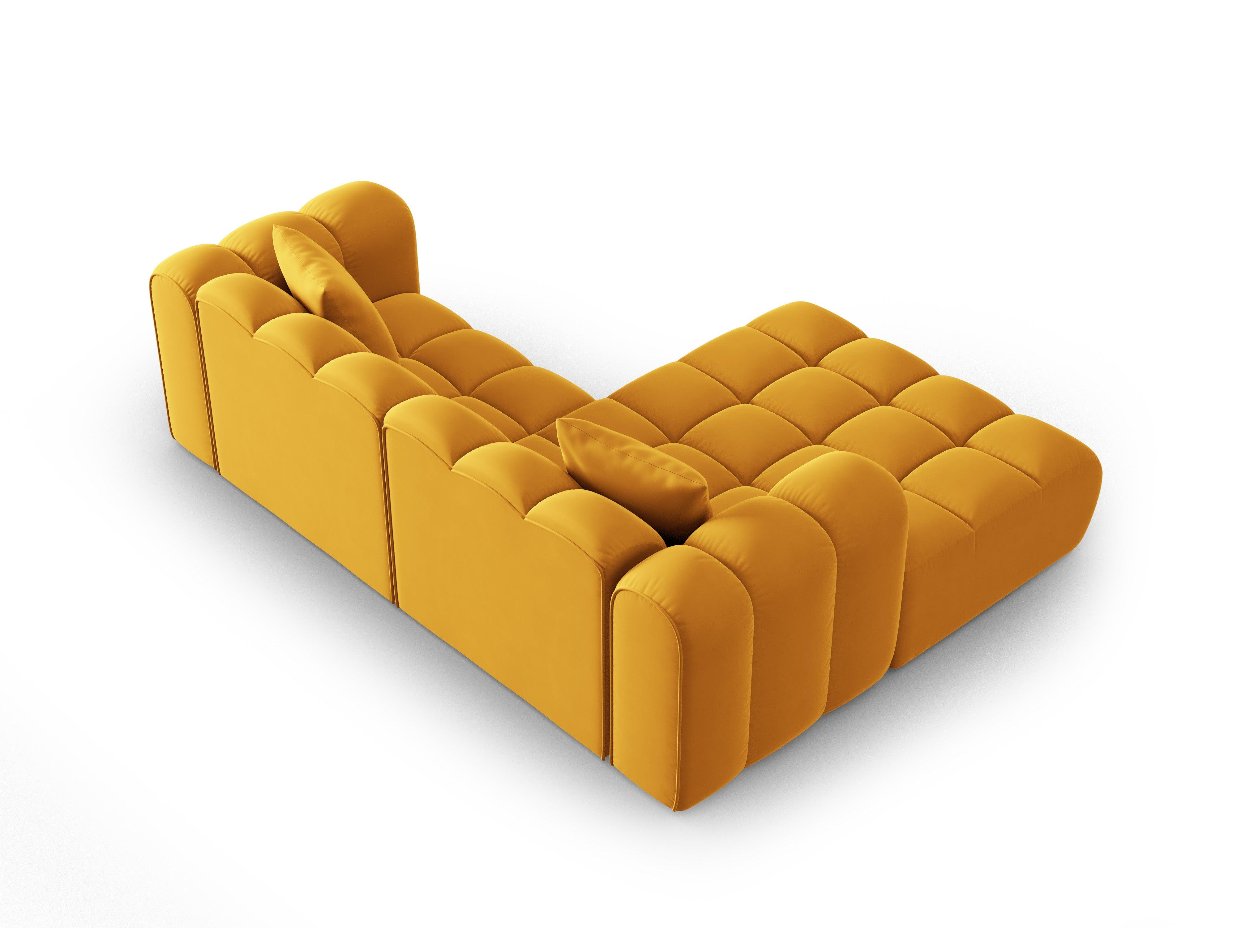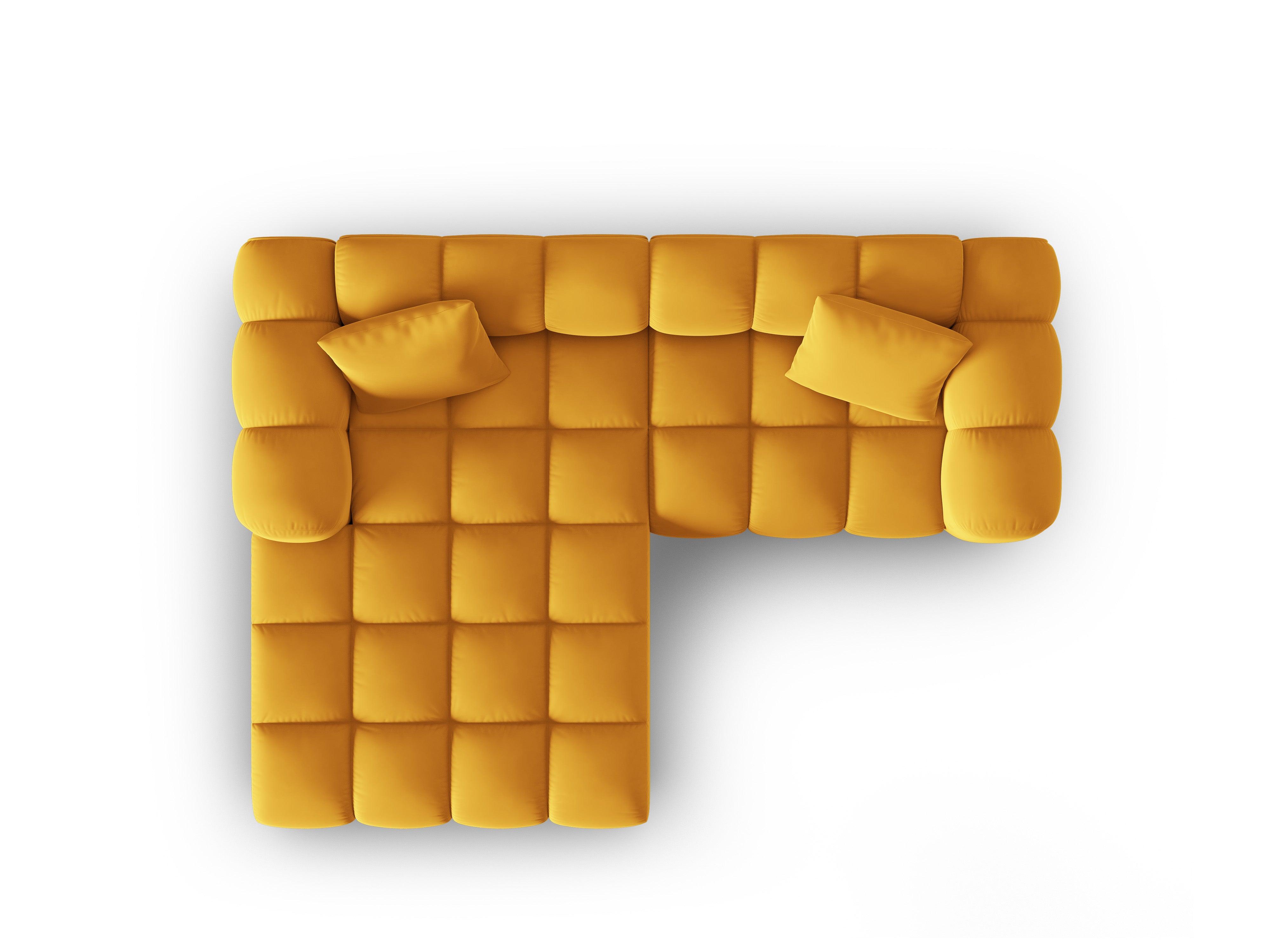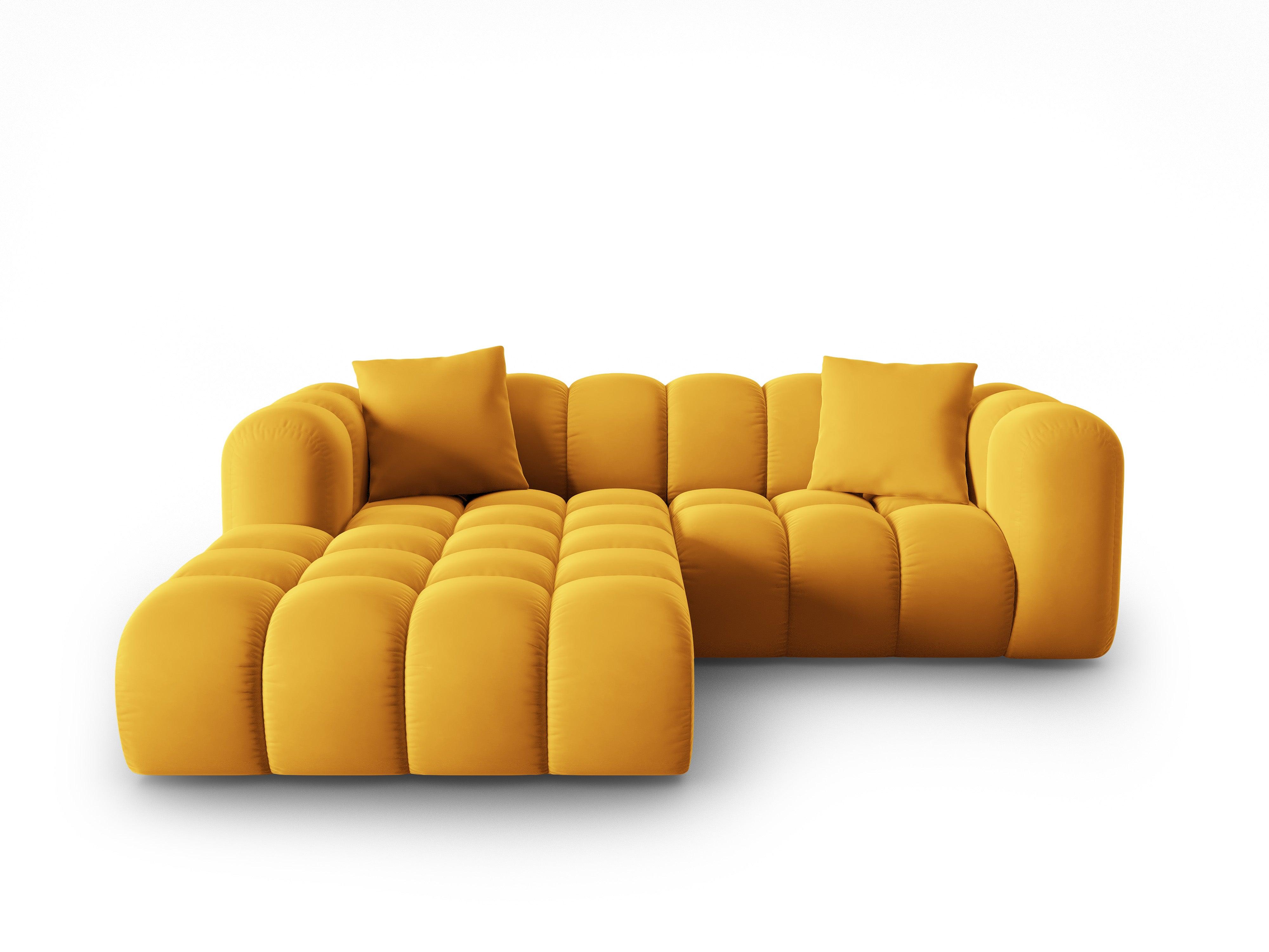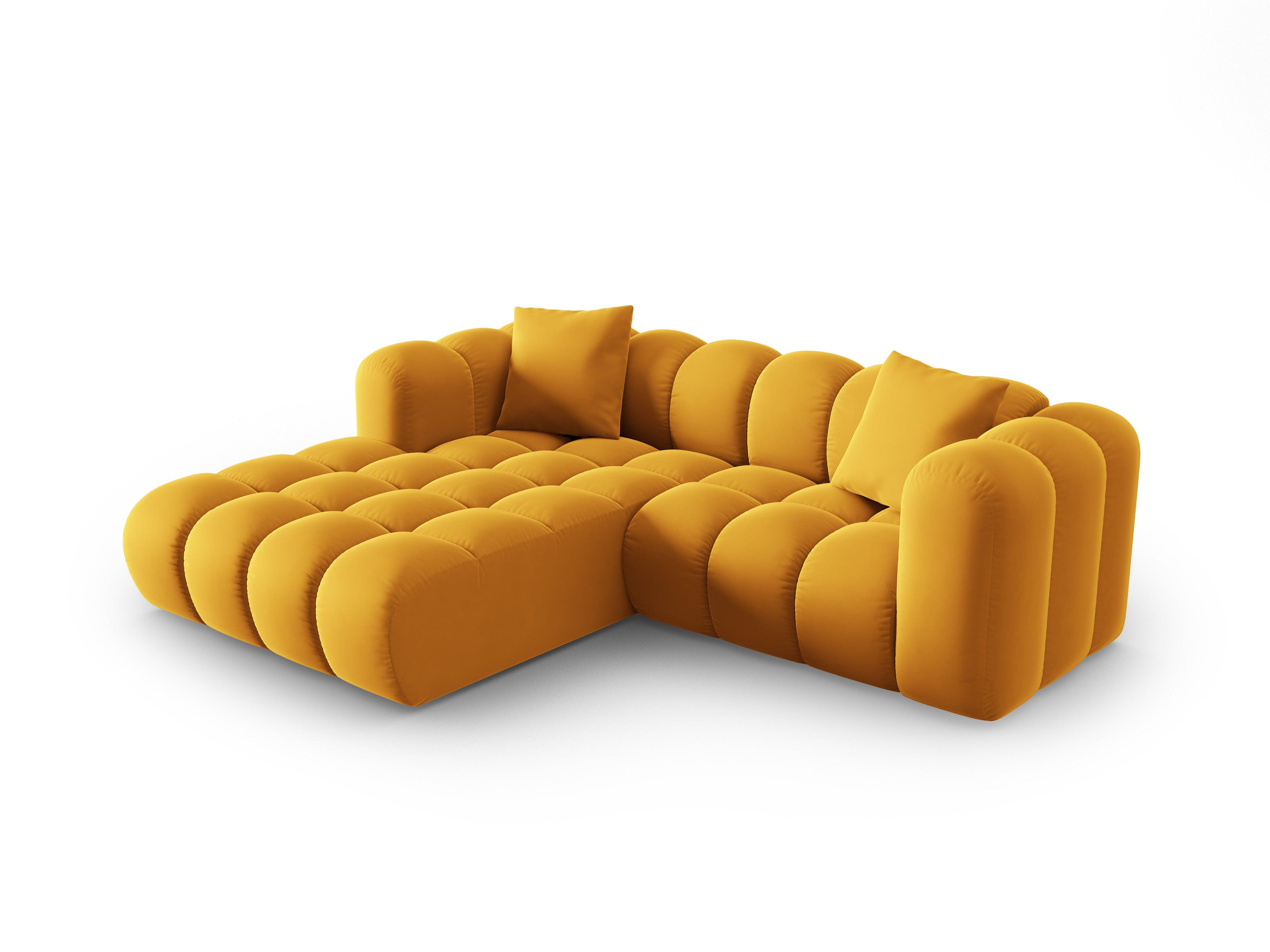 Narożnik aksamitny 3-osobowy lewostronny HALLEY żółty