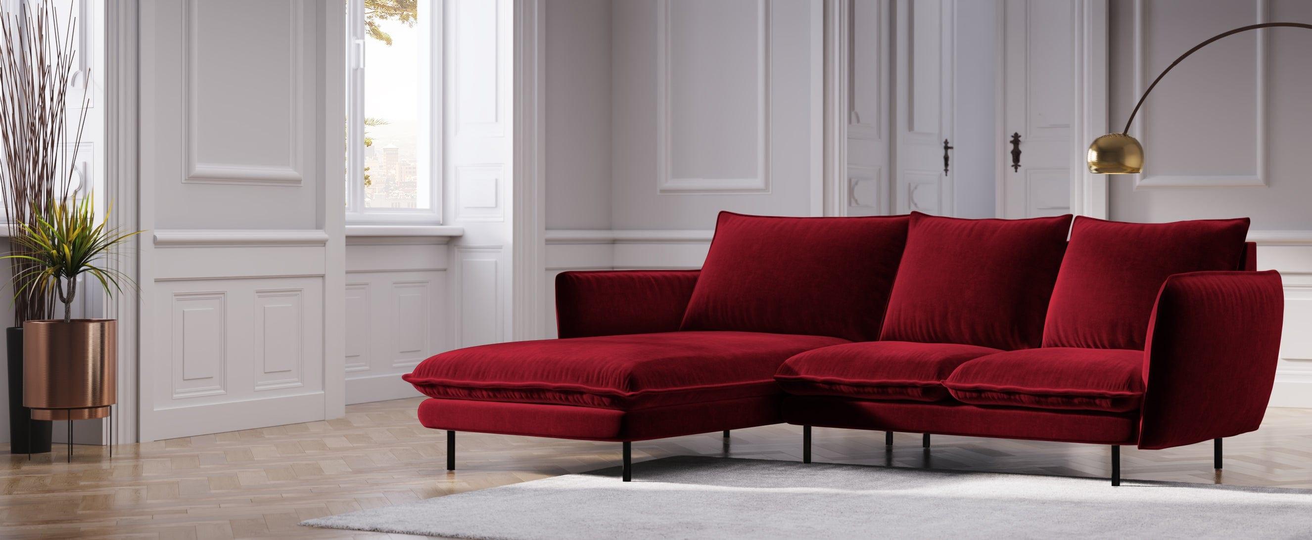 Narożnik aksamitny lewostronny VIENNA bordowy z czarną podstawą