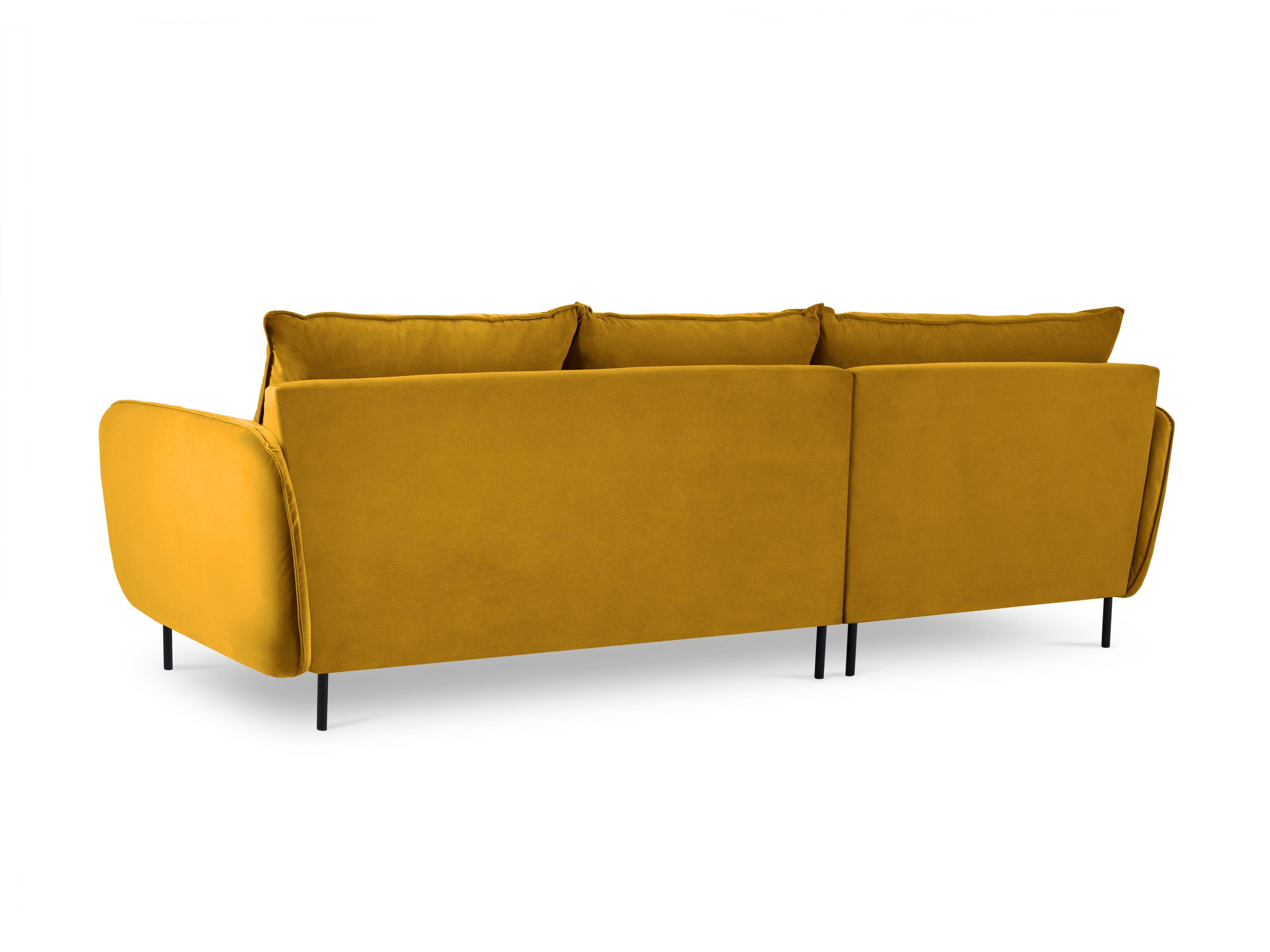 Narożnik aksamitny lewostronny VIENNA żółty z czarną podstawą