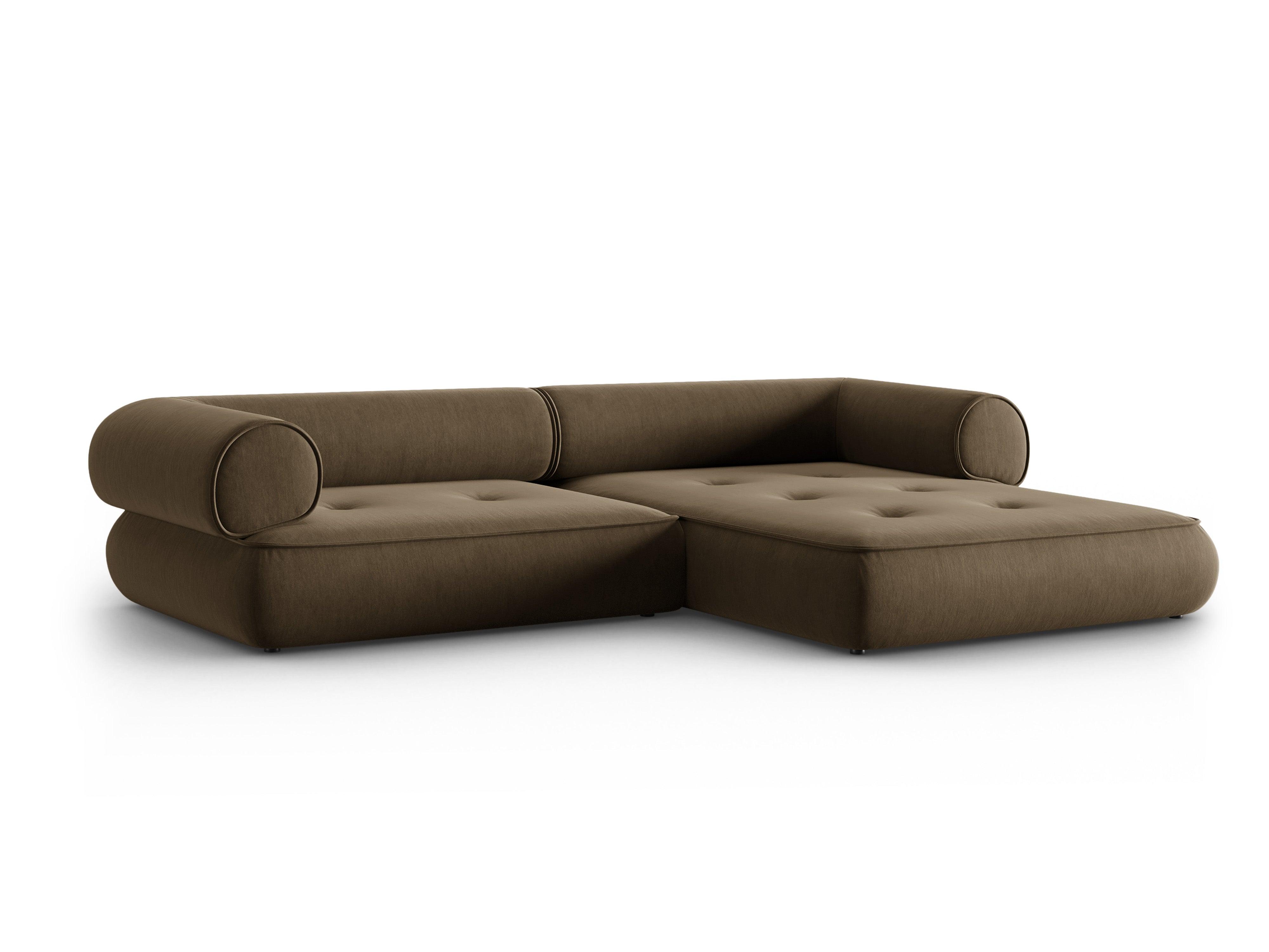 Narożnik w tkaninie szenilowej prawostronny LILY szarobrązowy