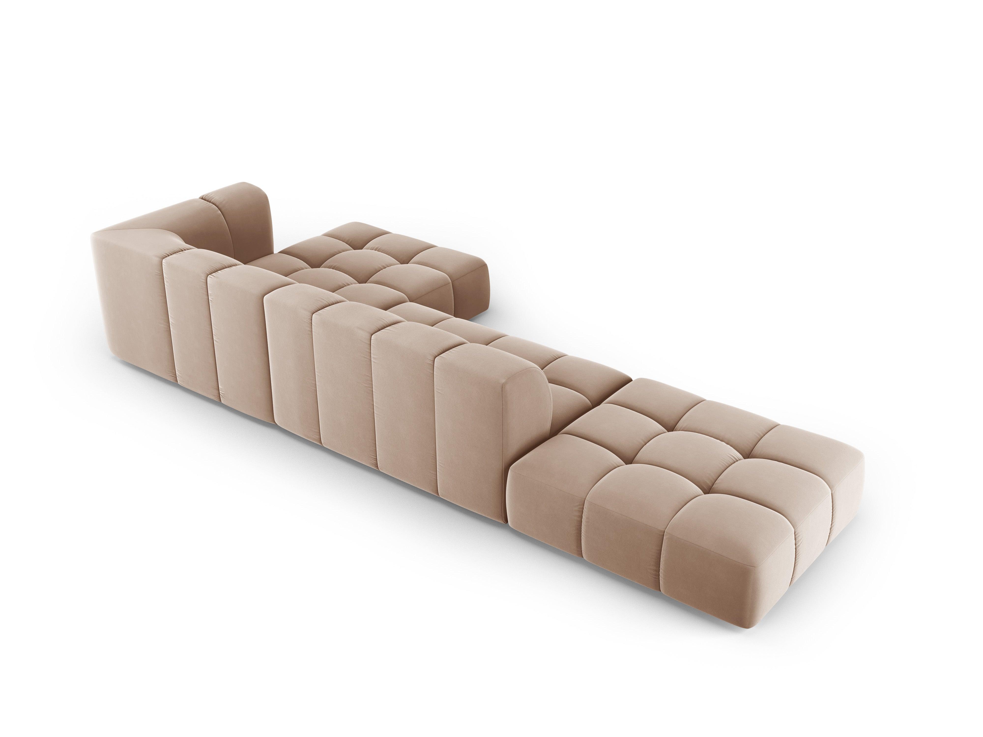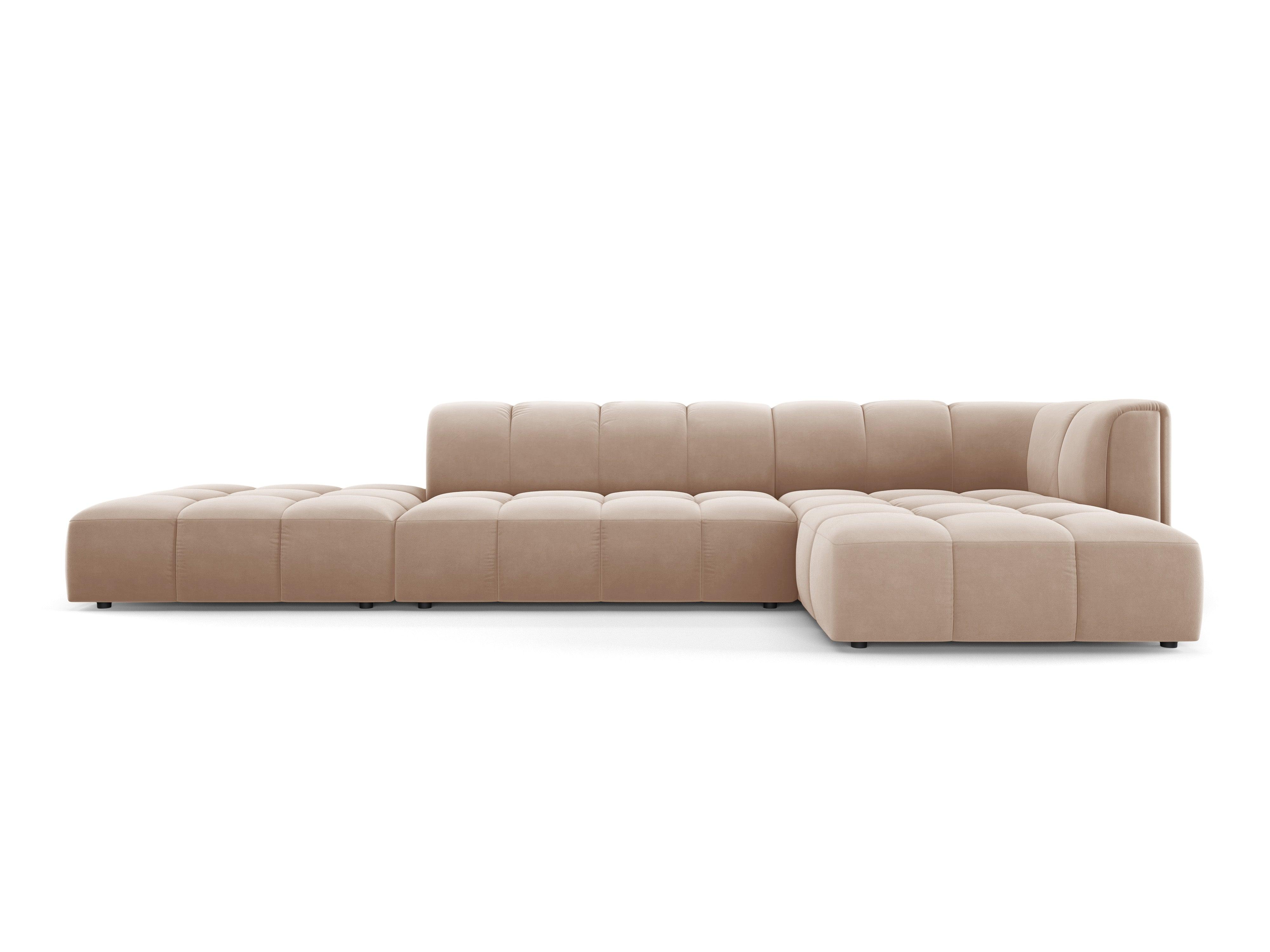 Narożnik aksamitny 5-osobowy prawostronny otwarty FRANCESCA beżowy