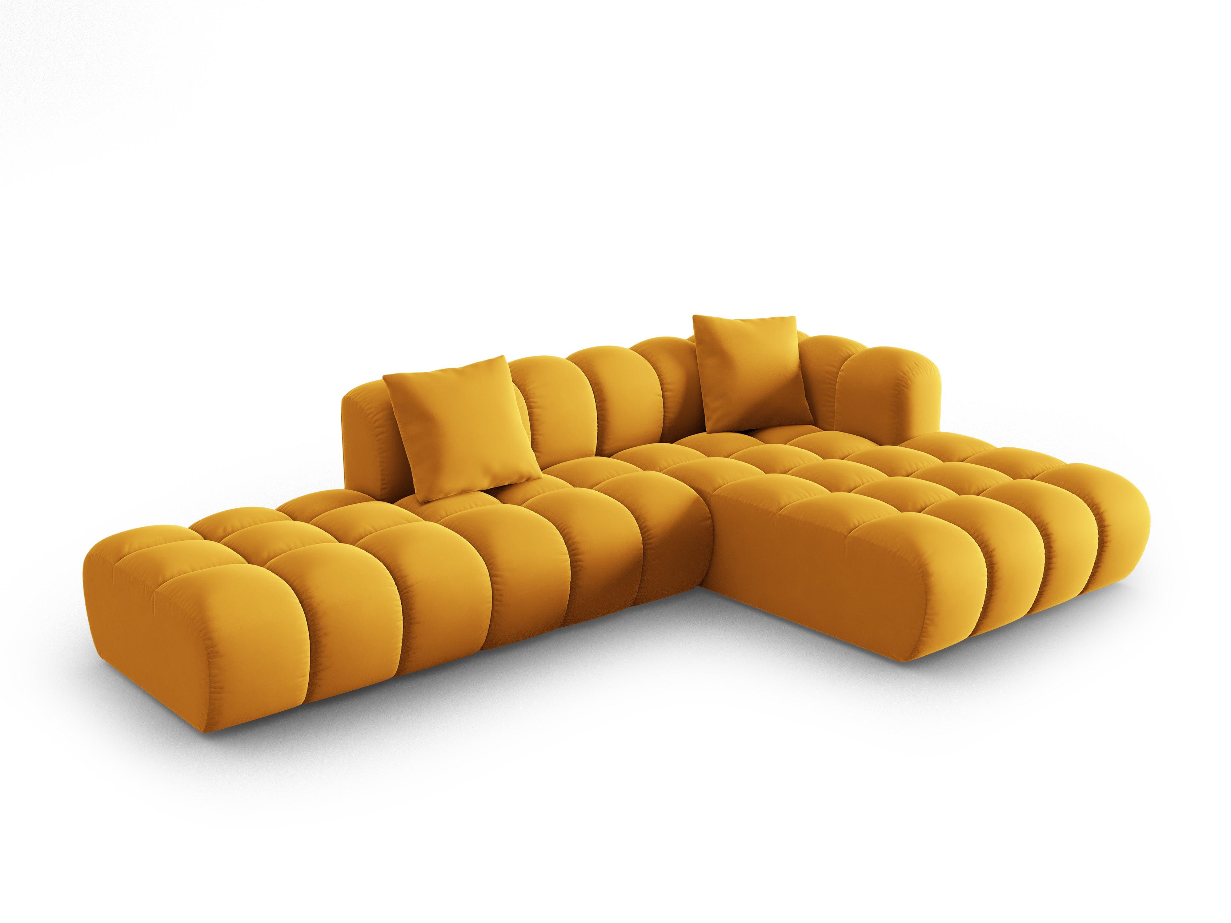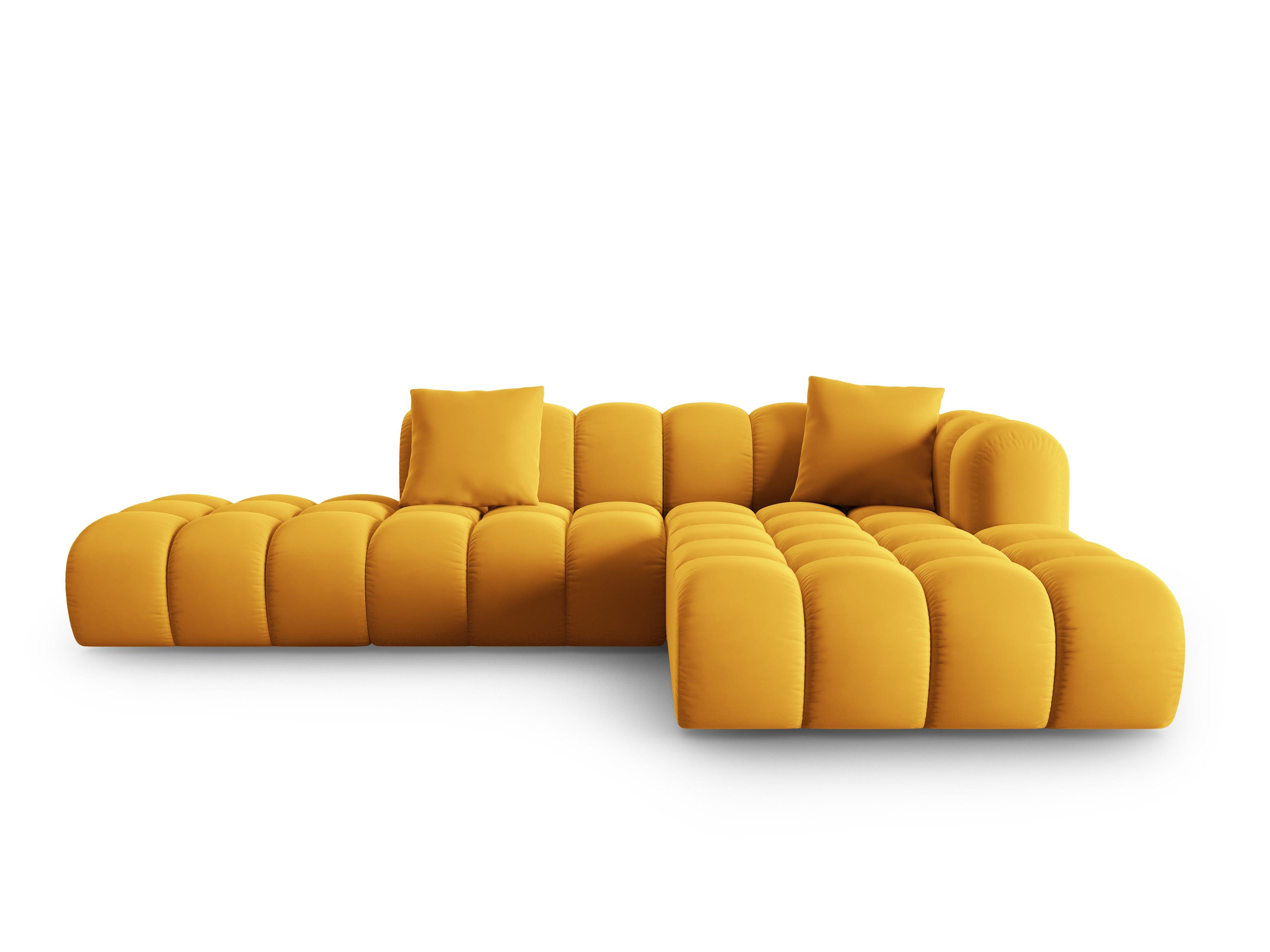 Narożnik aksamitny 5-osobowy prawostronny HALLEY żółty
