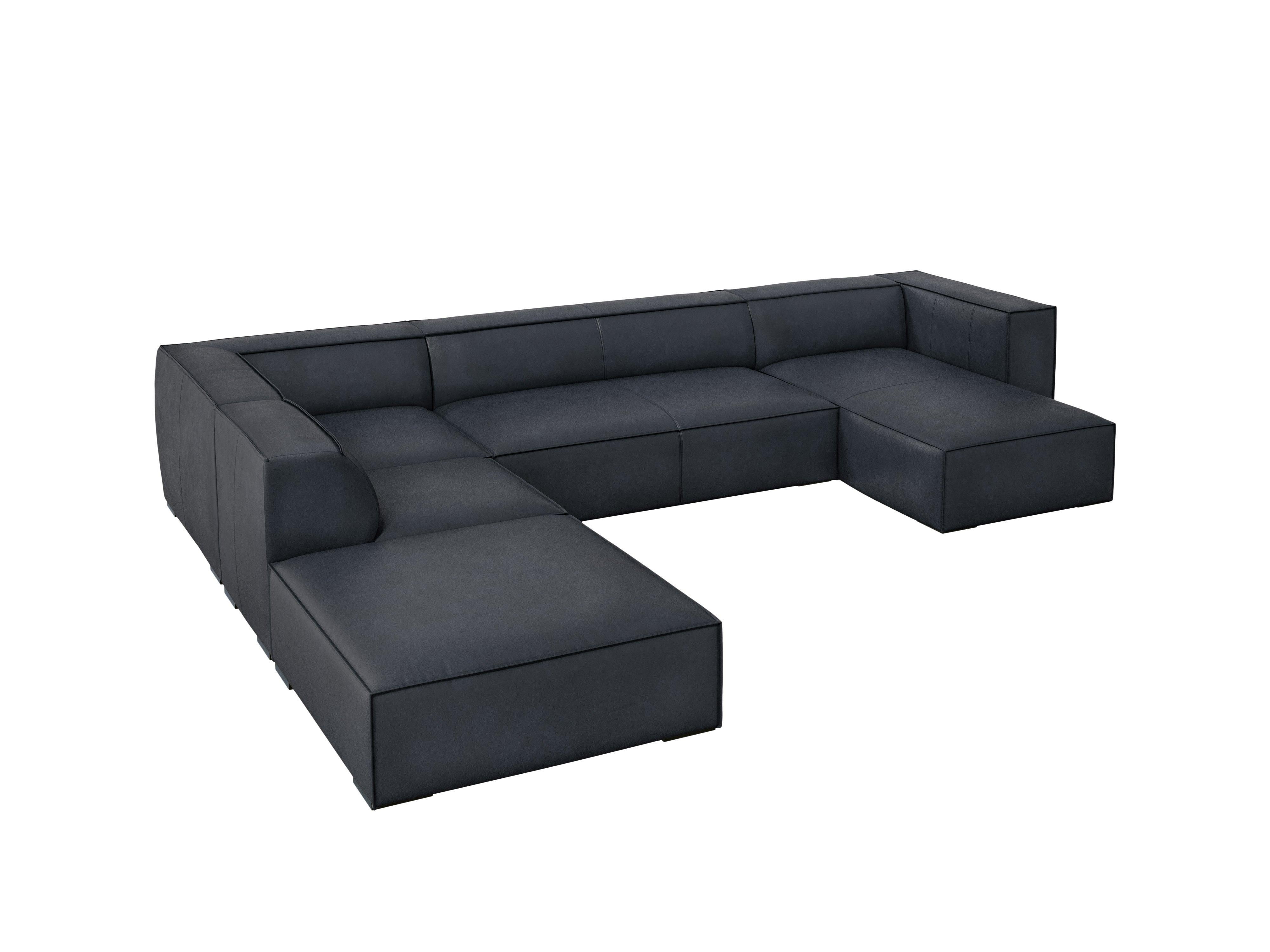 Skórzany narożnik panoramiczny Madame to idealne połączenie elegancji z ponadczasową formą. Geometryczna, nieco surowa bryła świetnie sprawdzi się we wnętrzach modern classic z nutą nowoczesności. Dekoracyjne przeszycia na skórzanej tapicerce dodają całości niezwykłego charakteru. Drewniane nóżki z drewna bukowego nie tylko pięknie się prezentują, ale stanowią też solidną podstawę.