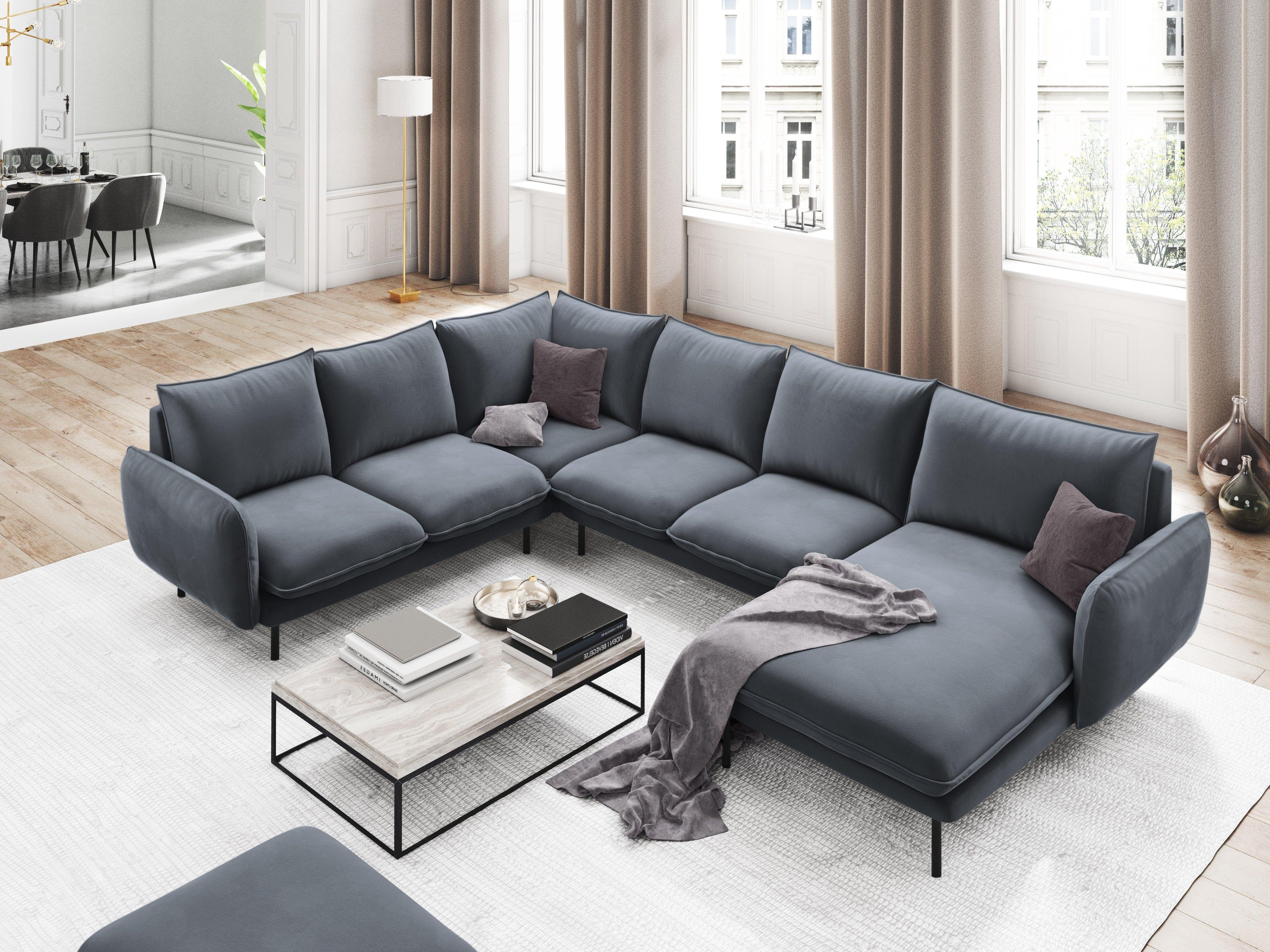 Narożnik panoramiczny Vienna wyróżniają piękne proporcje i harmonijne kształty. Narożnik do salonu jest nie tylko wygodny, ale też wprowadzi do wnętrza nutę paryskiego szyku i elegancji. Subtelna forma i miękkie siedzisko zapewnią niezwykły komfort użytkowania. Metalowe nogi nadają całej formie lekkości.