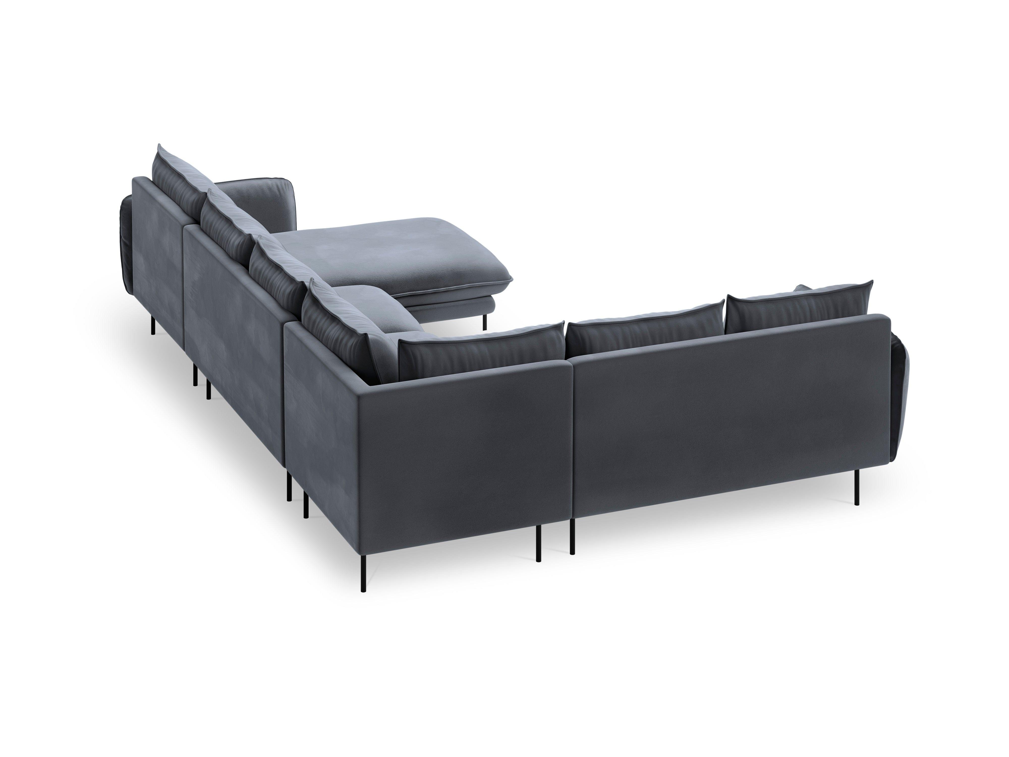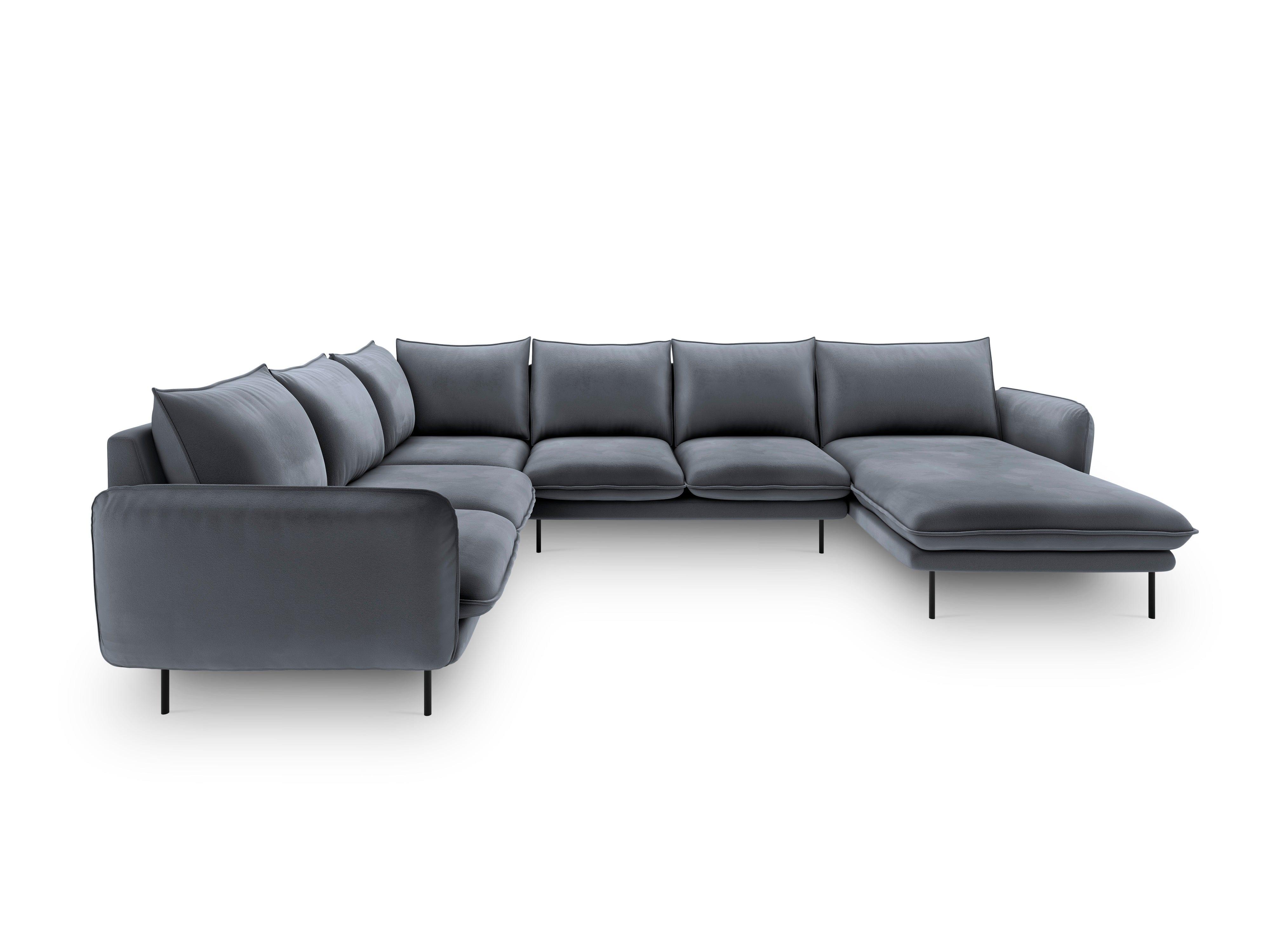 Narożnik lewostronny aksamitny panoramiczny VIENNA szary z czarną podstawą