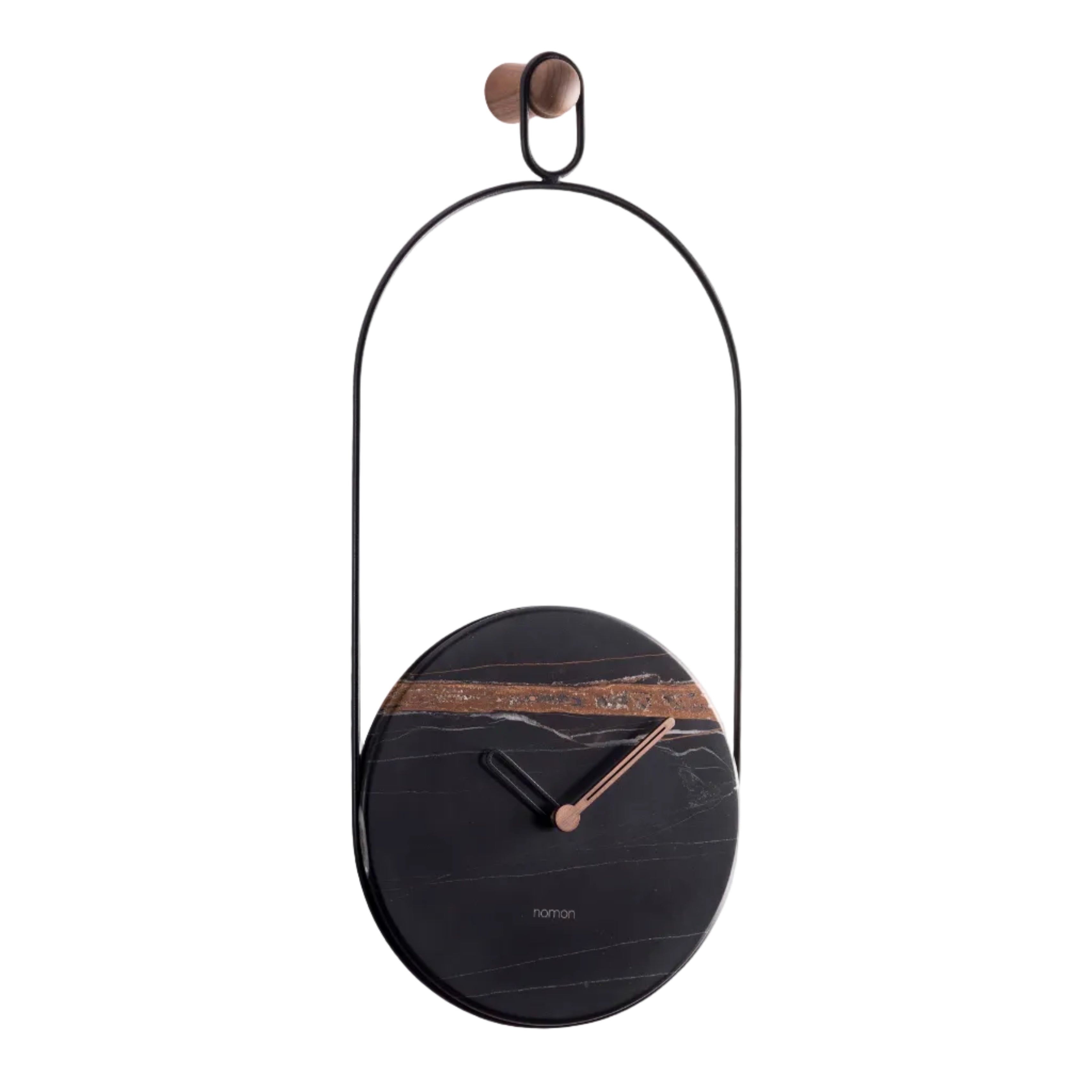 Zegar ścienny ESLABON czarny marmur z mosiężnym