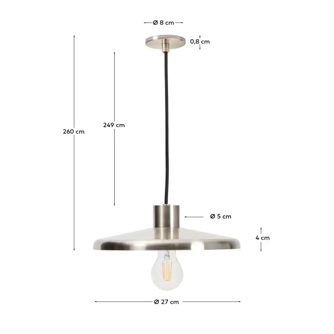 Lampa wisząca Nuvira to eleganckie połączenie nowoczesnej prostoty i ponadczasowej formy. Jej szczotkowana stalowa konstrukcja z powłoką zapobiegającą odciskom palców nadaje wnętrzu wyrafinowany charakter i zapewnia łatwość pielęgnacji. Geometryczny, płaski klosz inspirowany stylem vintage sprawia, że to idealna lampa do salonu, jadalni czy sypialni.