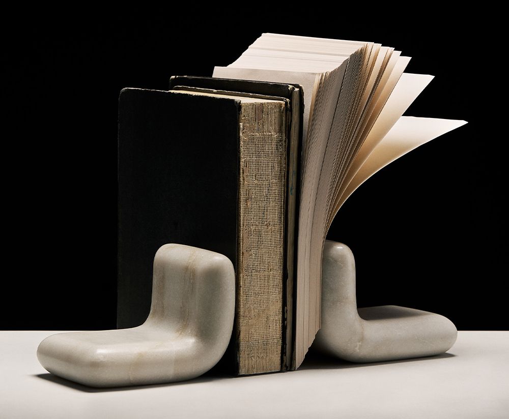 Podpórki do książek Stone to masywne, rzeźbiarskie elementy wykonane z białego marmuru o subtelnych, naturalnych żyłkach. Ich zaokrąglone krawędzie i minimalistyczny design sprawiają, że łączą w sobie zarówno funkcjonalność, jak i wyjątkową estetykę. Dzięki solidnej konstrukcji stabilnie podtrzymują książki, jednocześnie pełniąc rolę eleganckiej ozdoby w przestrzeni domowej lub biurowej.