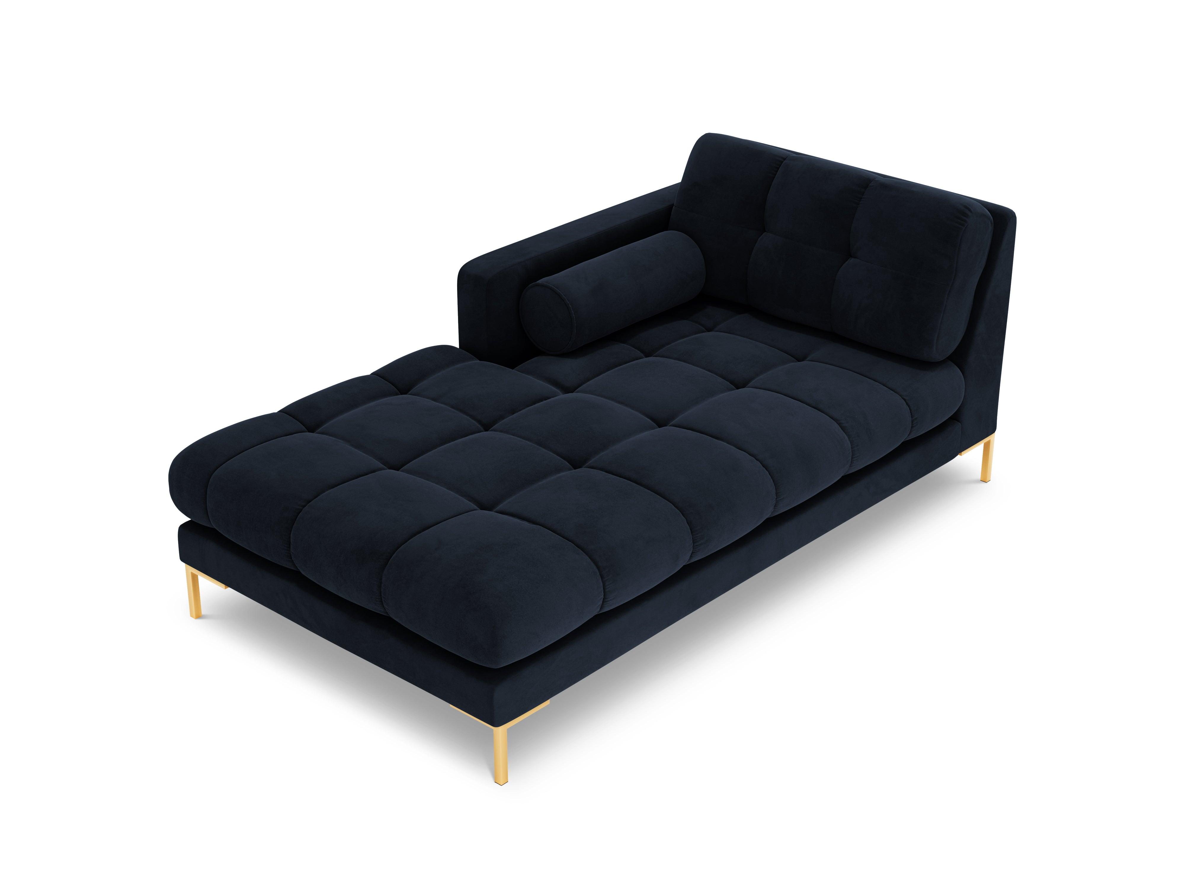 Szezlong aksamitny lewostronny BALI ciemnoniebieski ze złotą podstawą