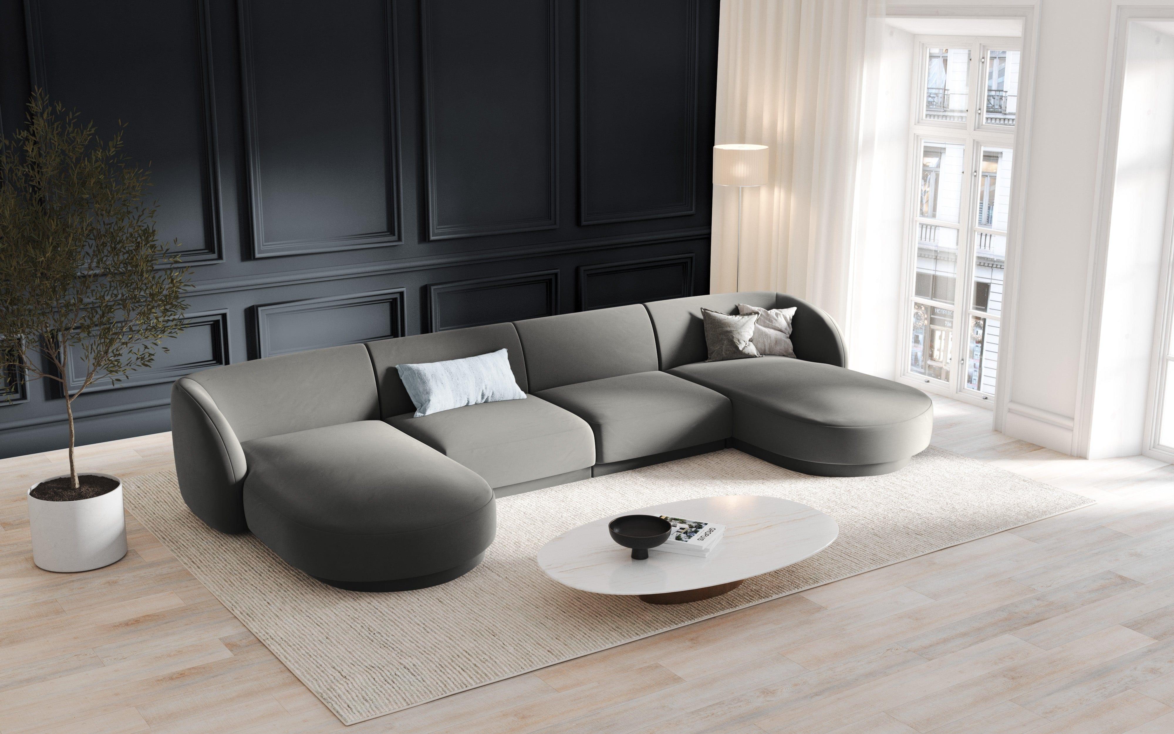 Narożnik aksamitny panoramiczny 5-osobowy MILEY jasnoszary