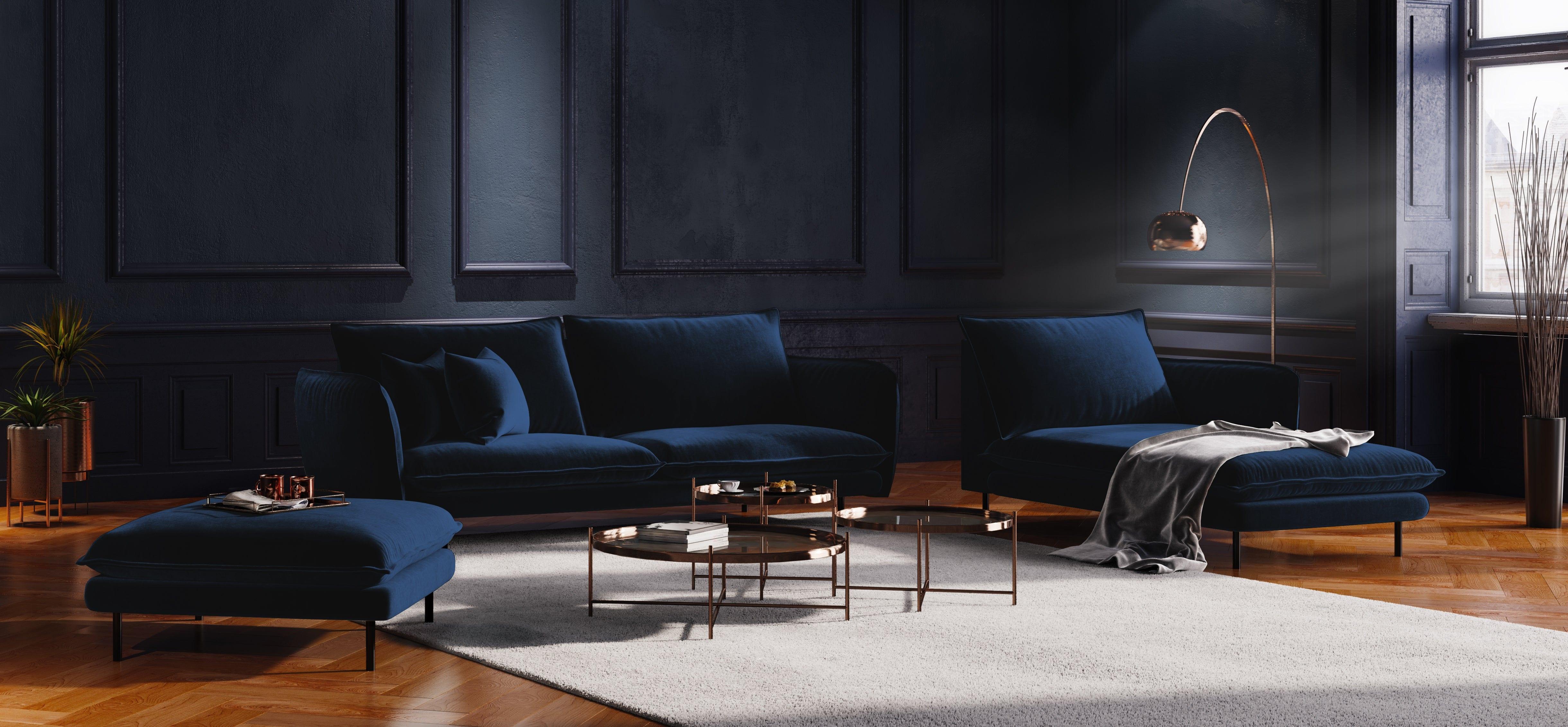Aksamitny szezlong Vienna wyróżniają piękne proporcje i harmonijne kształty. Szezlong jest nie tylko wygodny, ale też wprowadzi do wnętrza nutę paryskiego szyku i elegancji. Subtelny kształt i miękkie siedzisko zapewnią niezwykły komfort użytkowania. Metalowe nogi nadają całej formie lekkości.