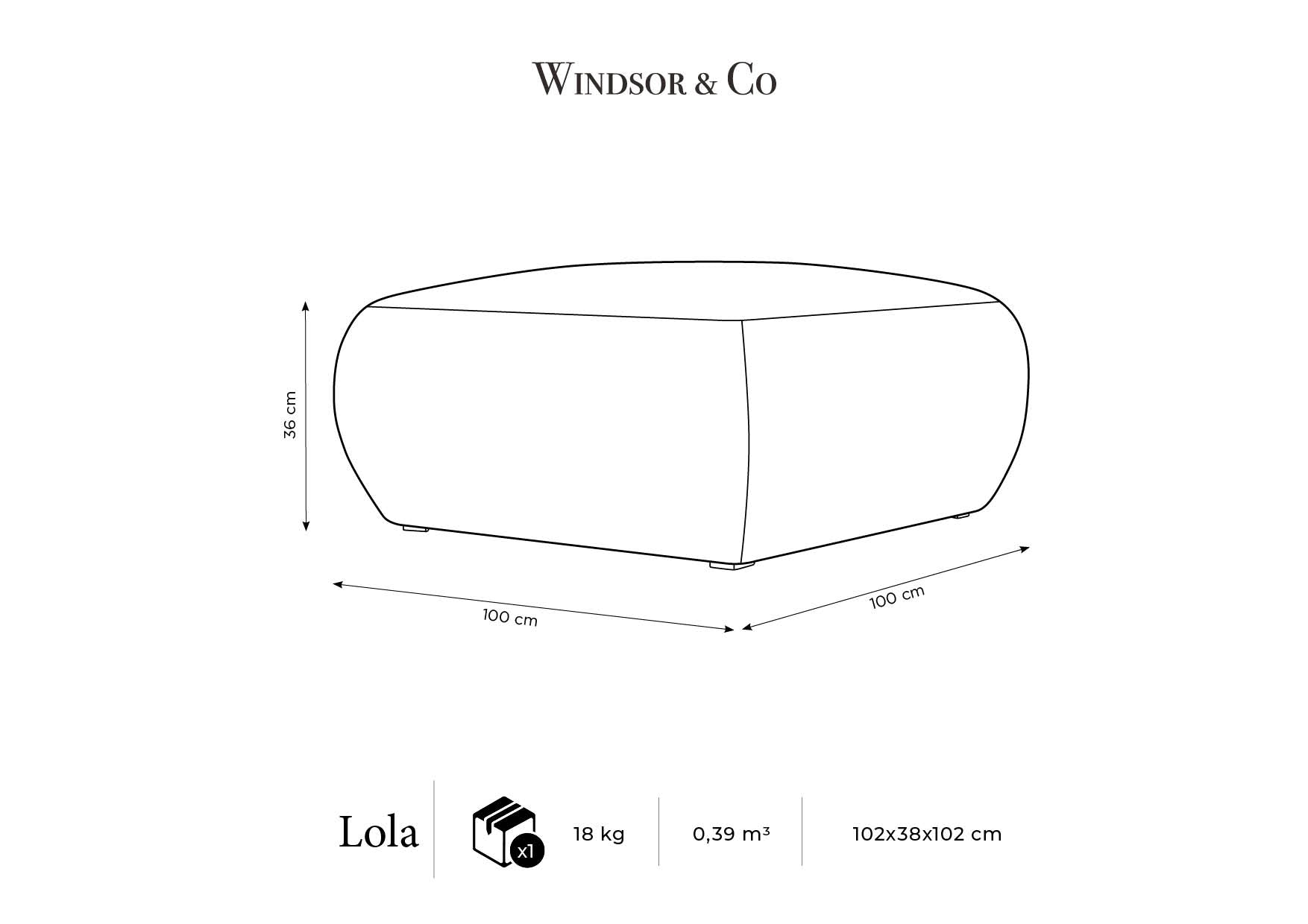Dzięki swoim kompaktowym wymiarom puf Lola doskonale sprawdzi się jako dodatkowe miejsce do siedzenia lub podnóżek, idealny do salonu, pokoju czy też biura. Jego minimalistyczny design nadaje wnętrzu elegancji i nowoczesnego charakteru.