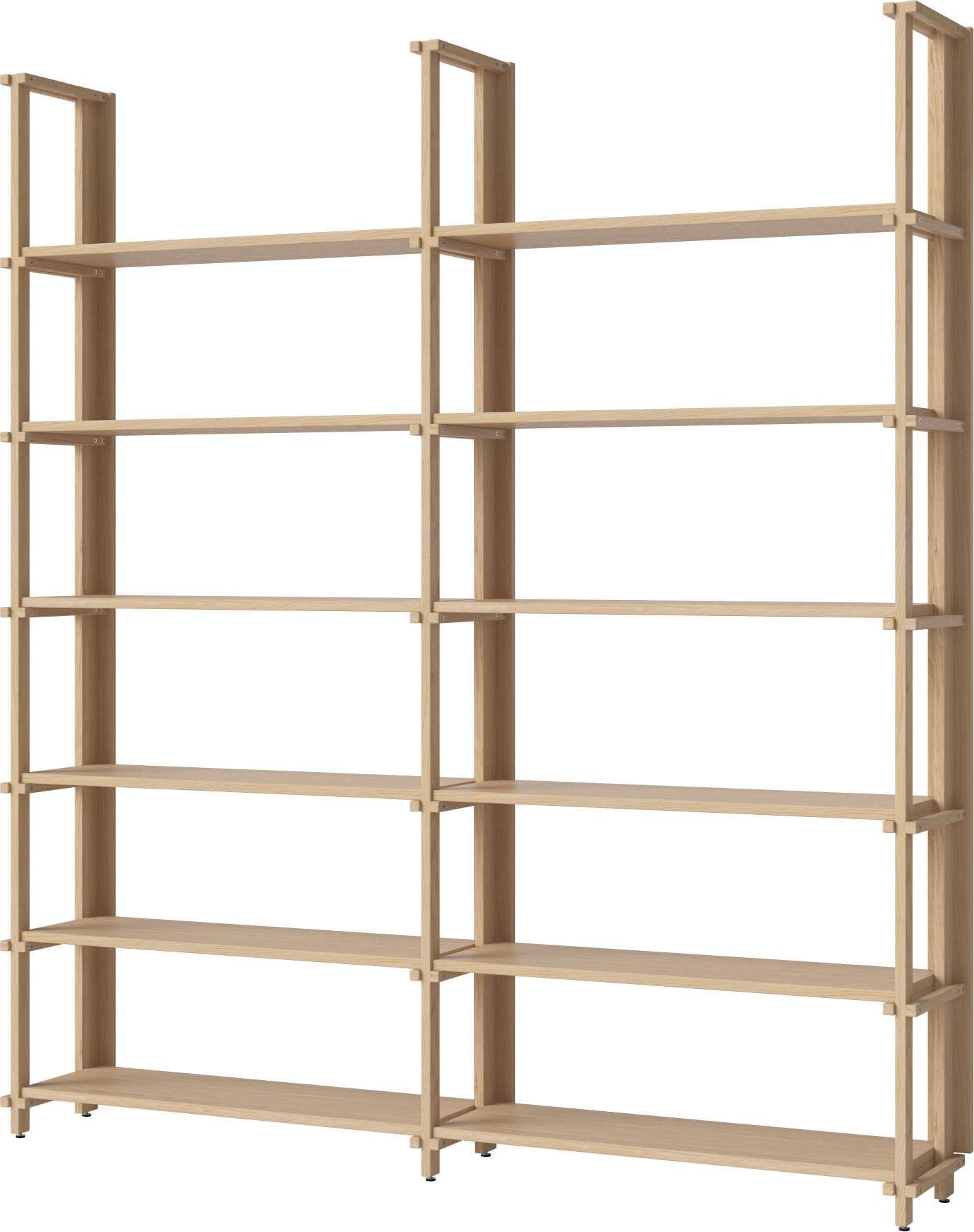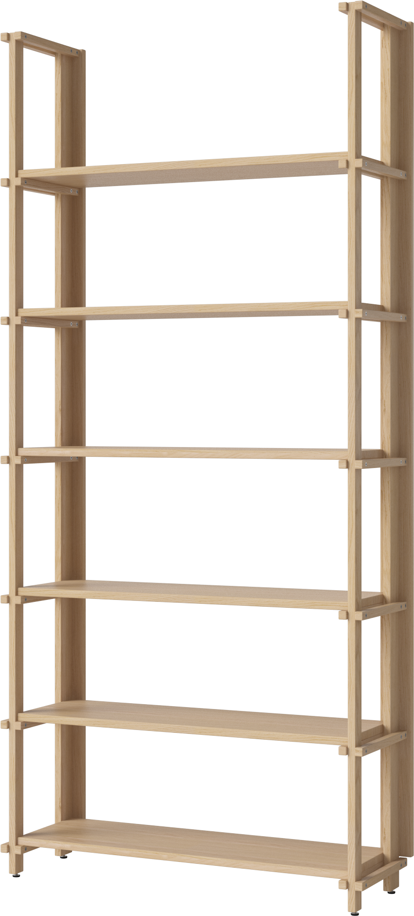 Regał wykonany jest z drewna dębowego certyfikowanego FSC®, co świadczy o zrównoważonym podejściu do produkcji. Funkcjonalny design łączy rygorystyczną estetykę z praktycznością, tworząc wszechstronny mebel, który harmonijnie wkomponuje się w każde wnętrze.