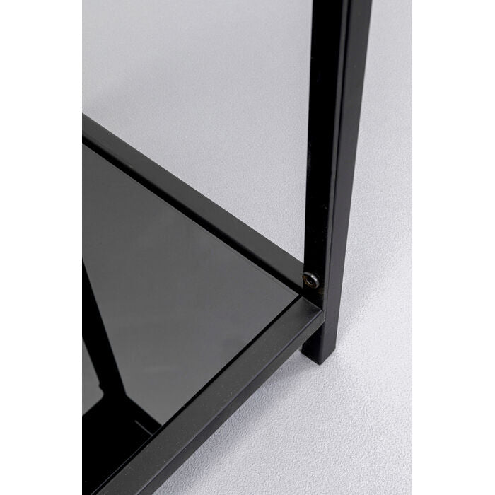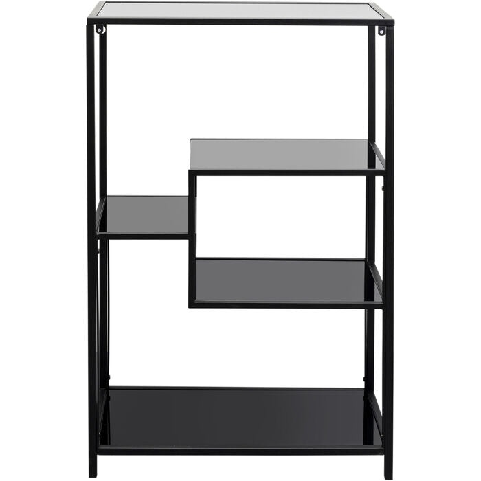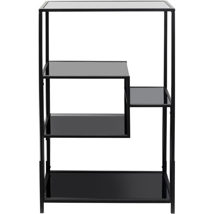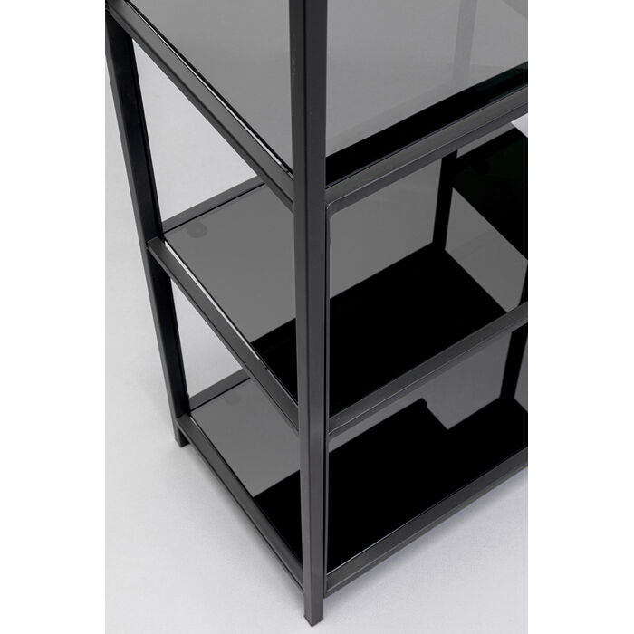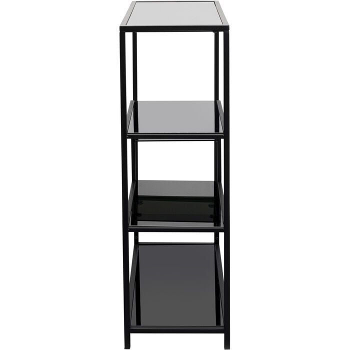 Ten czarny regał z serii Loft wprowadza wyjątkowy akcent do każdego pomieszczenia. Charakteryzuje się nowoczesnym, graficznym designem w eleganckim kolorze czerni: wysoka stalowa konstrukcja z szklanymi półkami.