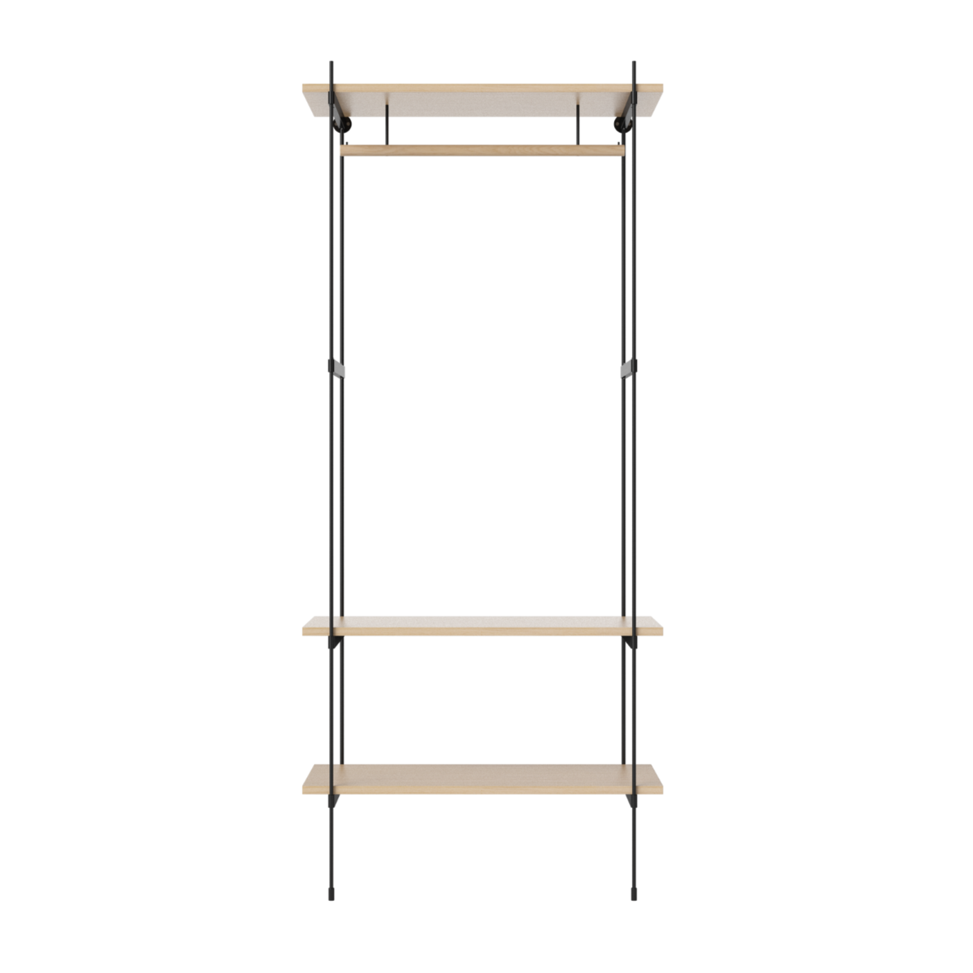 Regał z wieszakiem ROD bielony fornir dębowy z czarną ramą