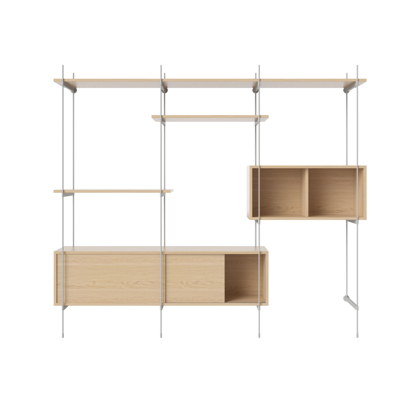 Regał z szafkami ROD bielony fornir dębowy ze stalową ramą