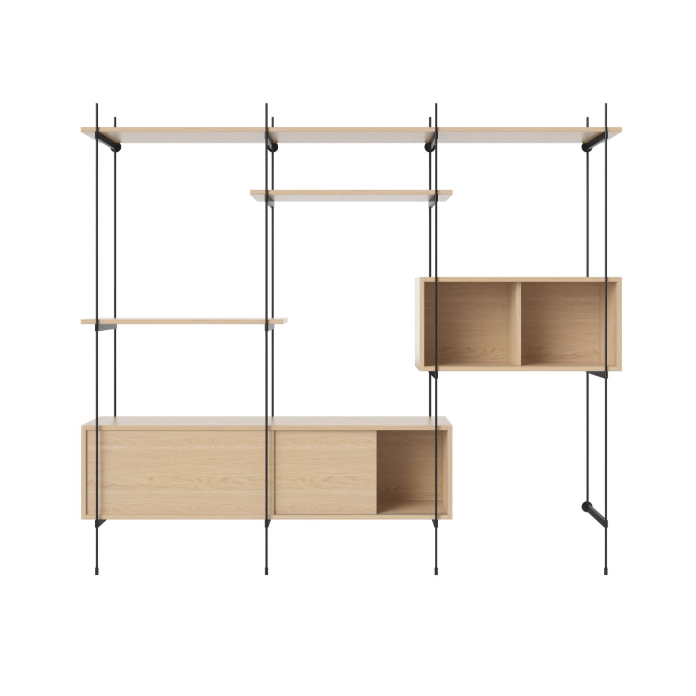 Regał z szafkami ROD bielony fornir dębowy z czarną ramą