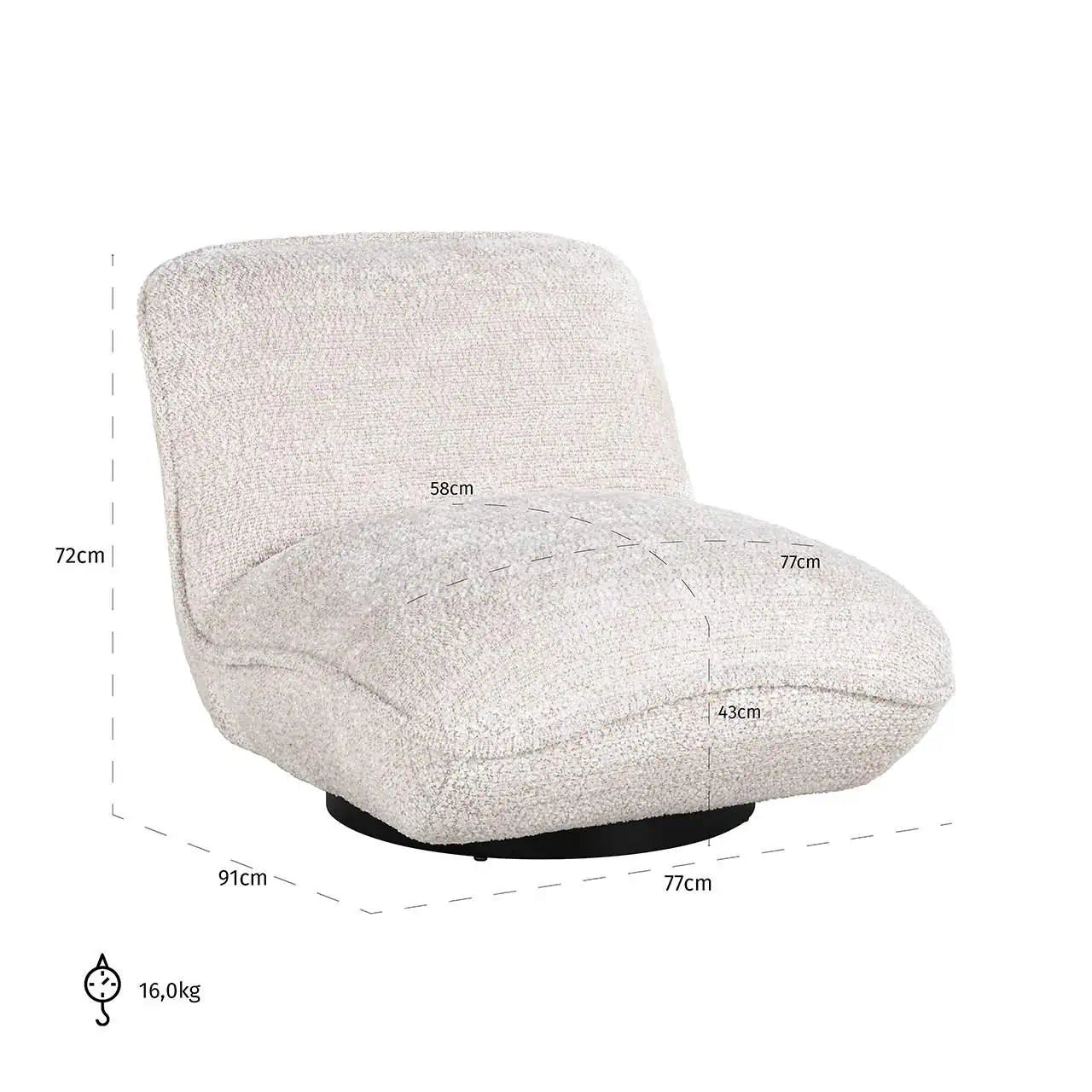 Fotel wyróżnia się wyraźnymi liniami i ponadczasową estetyką. Kolor kremowy nadaje mu elegancki i przyjazny wygląd, który świetnie komponuje się z różnymi aranżacjami wnętrz. Dzięki przestronnemu siedzisku i miękkiej wyściółce Ophelia zapewnia wyjątkowo komfortowe miejsce do wypoczynku. Oparcie i podłokietniki tworzą przyjemną, przytulną atmosferę. Fotel Ophelia został starannie wykonany z dbałością o najwyższe standardy trwałości i estetyki, będąc nie tylko estetycznym elementem, ale także funkcjonalnym i wygodnym meblem w Twoim wnętrzu.