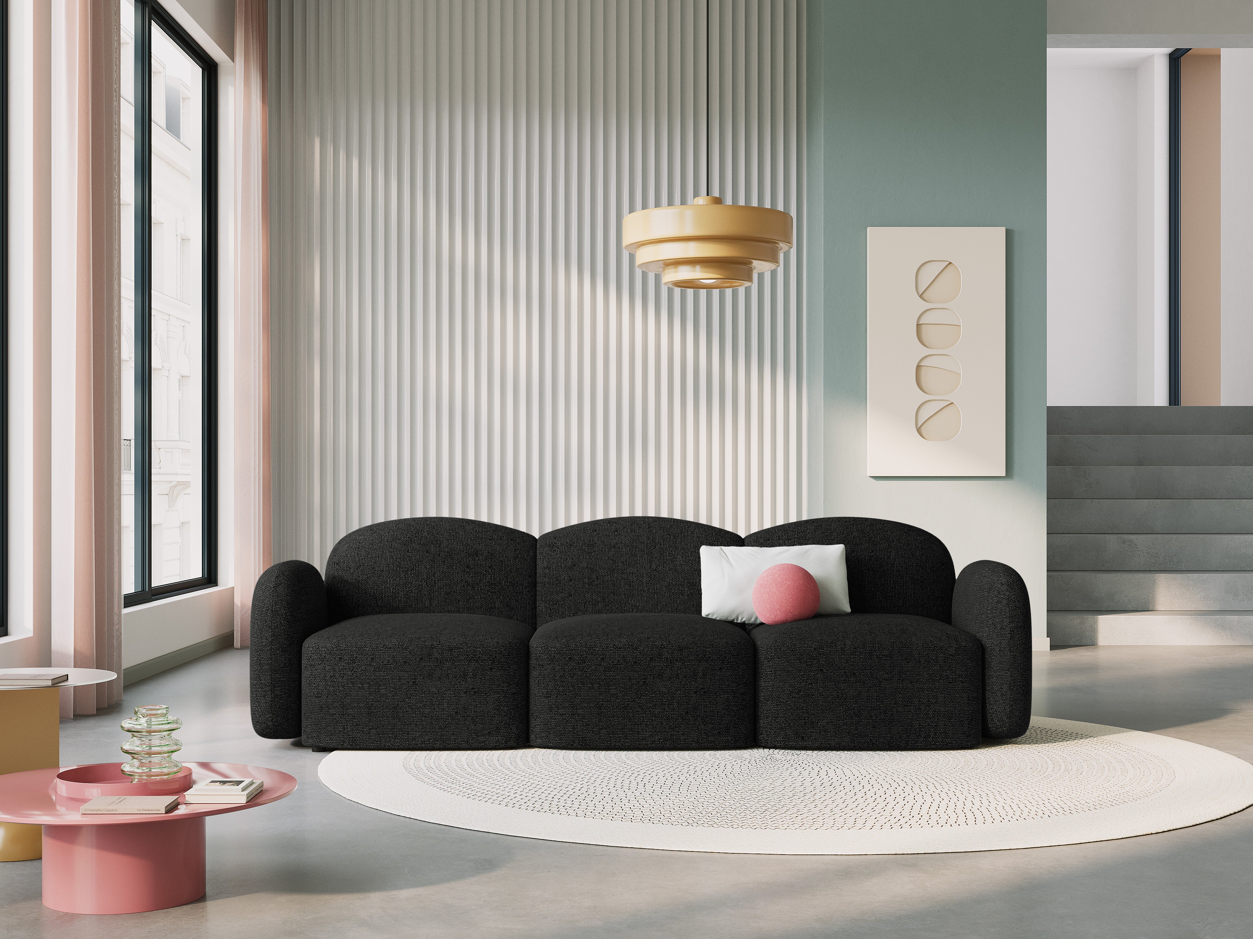 Sofa dla trzech osób z kolekcji Blair doskonale łączy trendy minimalizmu i zaokrąglonych kształtów. Klasyczne, a jednocześnie przyciągające uwagę krawędzie emanują miękkością, co sprawia, że są niezwykle przytulne. Każdy element posiada delikatne krągłości, które zachęcają do natychmiastowego odpoczynku po ciężkim dniu.