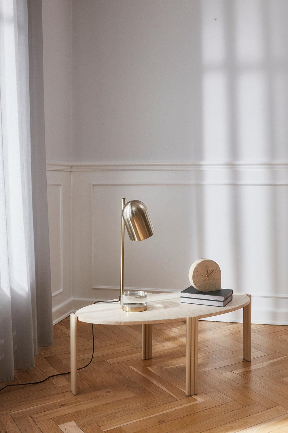 Stolik kawowy TRIBUS jasny blat z beżową podstawą