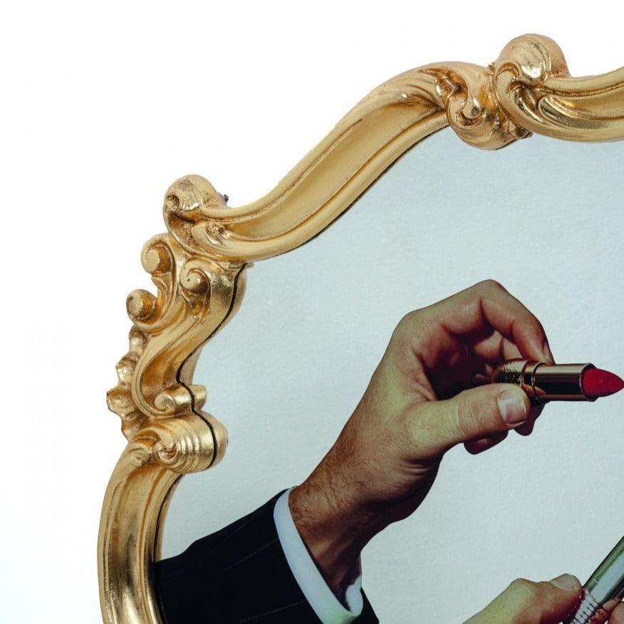 Lustro Baroque Lipsticks to wyjątkowa ozdoba, która przenosi nas w świat sztuki barokowej i luksusu. Jego ozdobna rama, pełna zakrzywionych i dekoracyjnych elementów, w połączeniu z nadrukiem dłoni trzymających szminki , tworzy niezwykle efektowną kompozycję.