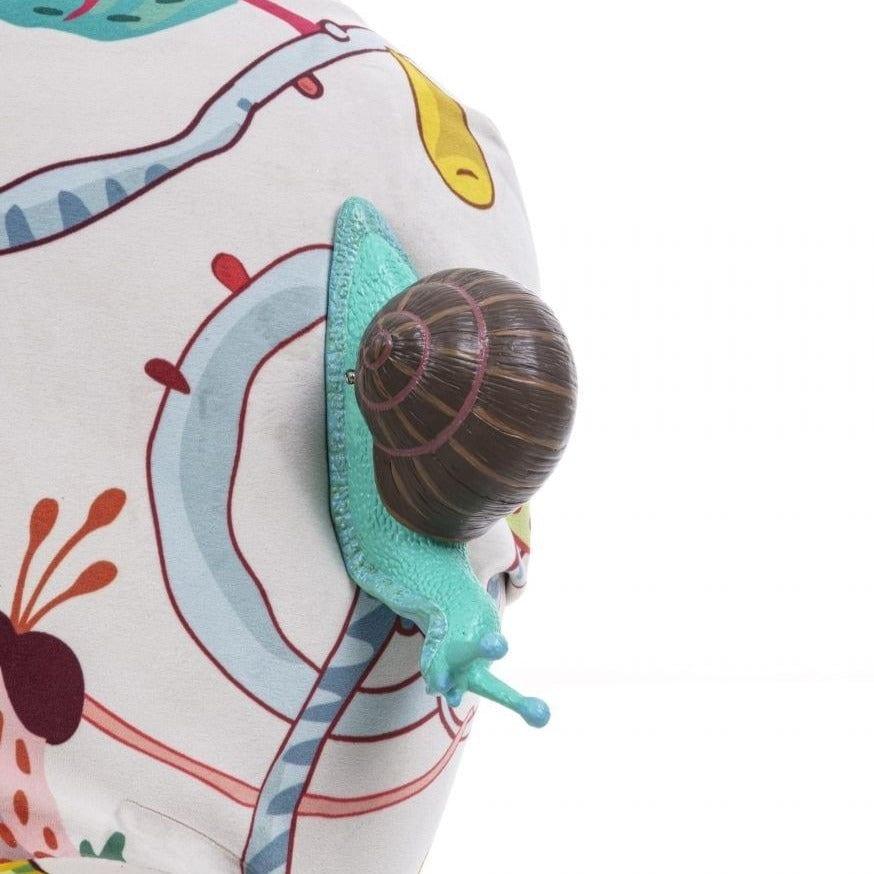 Do sofy można przymocować dekoracyjne wieszaki: intrygujące rzeźby w kształcie muchomorów i ślimaków, nadające całości bajkowy charakter. Dostępne osobno.
