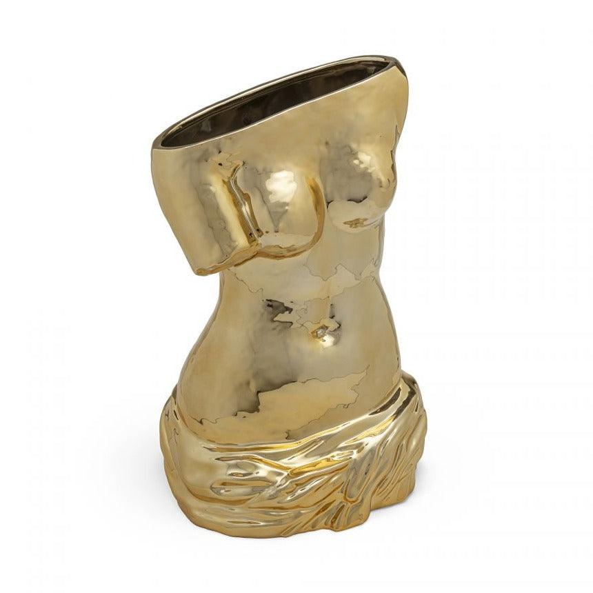 Wazon Milo w kolorze złotym to wyjątkowy produkt, który nada Twojemu wnętrzu szyku i klasy. Zarówno forma jak i design wazonu nawiązuje do słynnej rzeźby Wenus z Milo. Dzięki ponownej interpretacji piękna kobiecego ciała powstał złoty wazon, który jest nie tylko naczyniem, które wyeksponuje bukiet kwiatów, ale również w pełni autonomiczną dekoracją.
