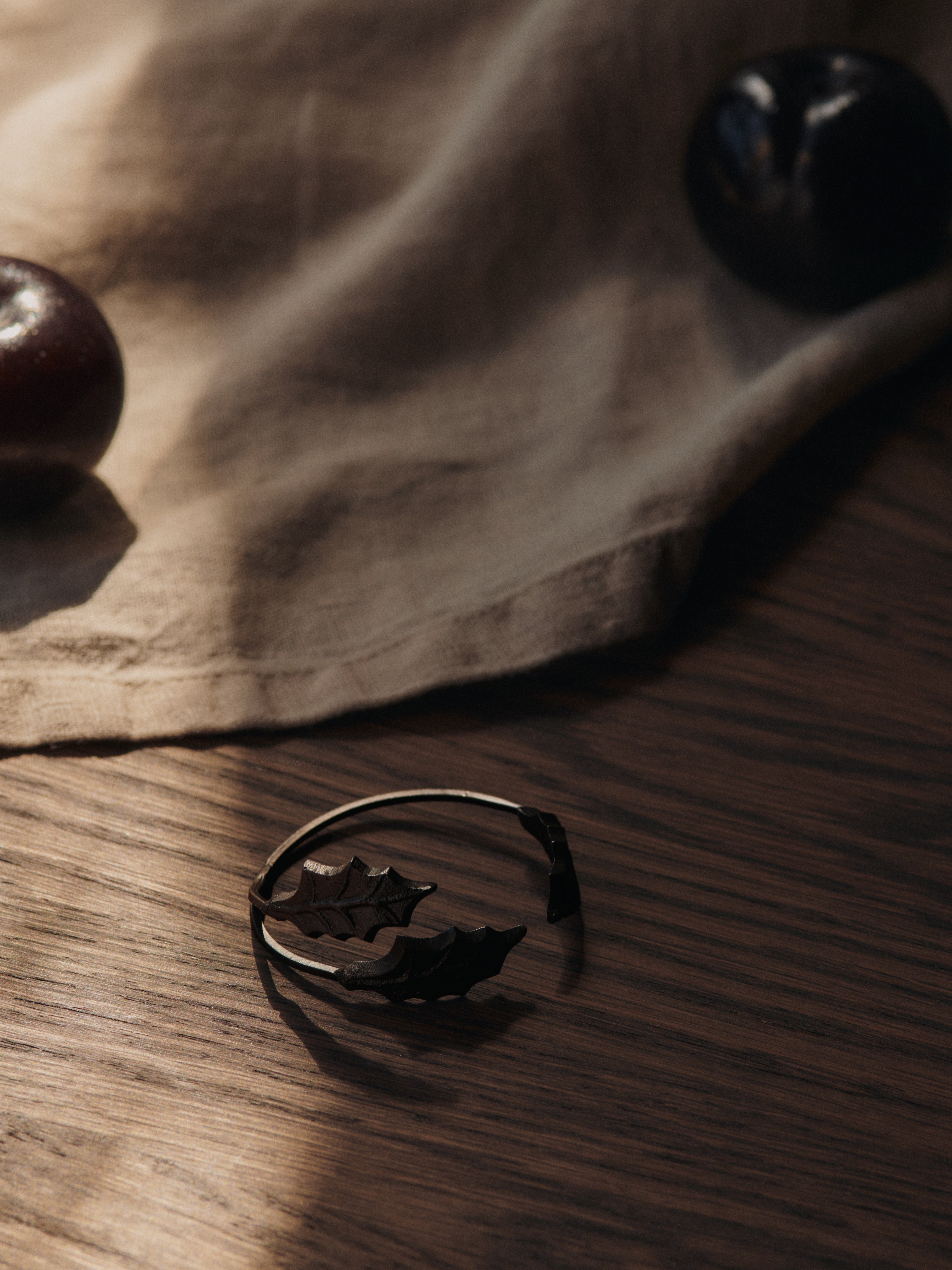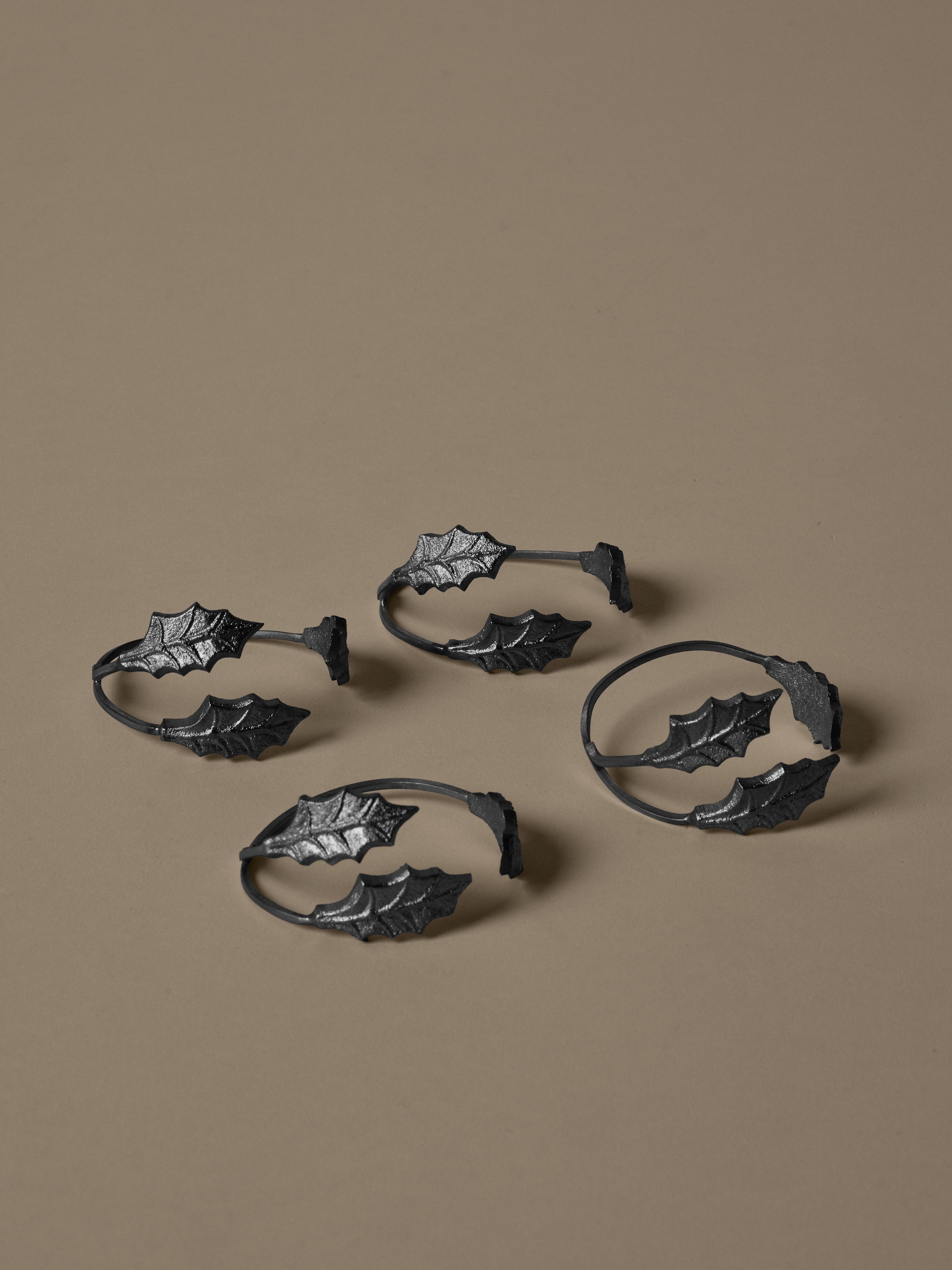 Zestaw pierścieni do serwetek HOLLY LEAF czarny mosiądz