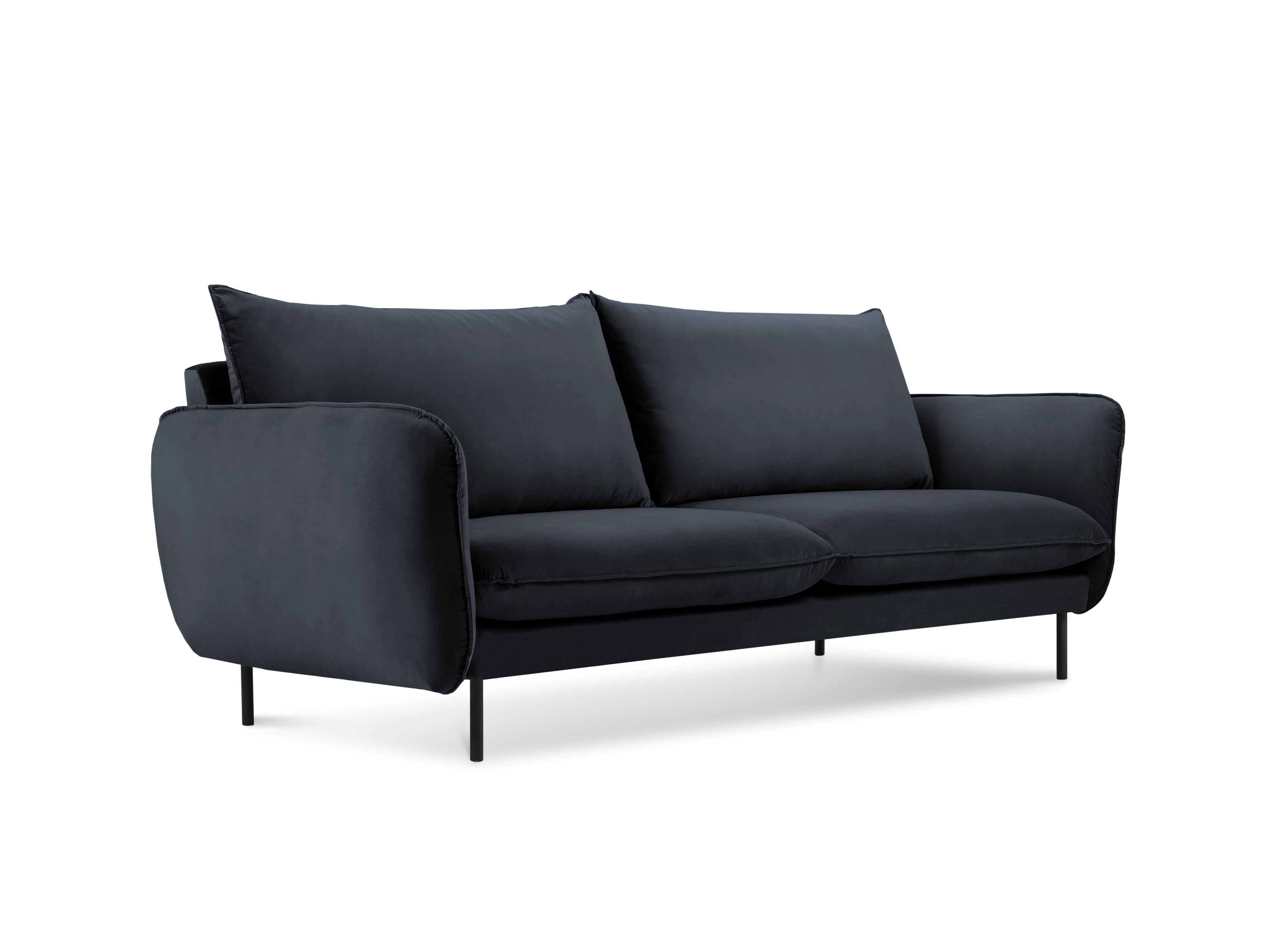 Sofa aksamitna 2-osobowa VIENNA granatowy z czarną podstawą