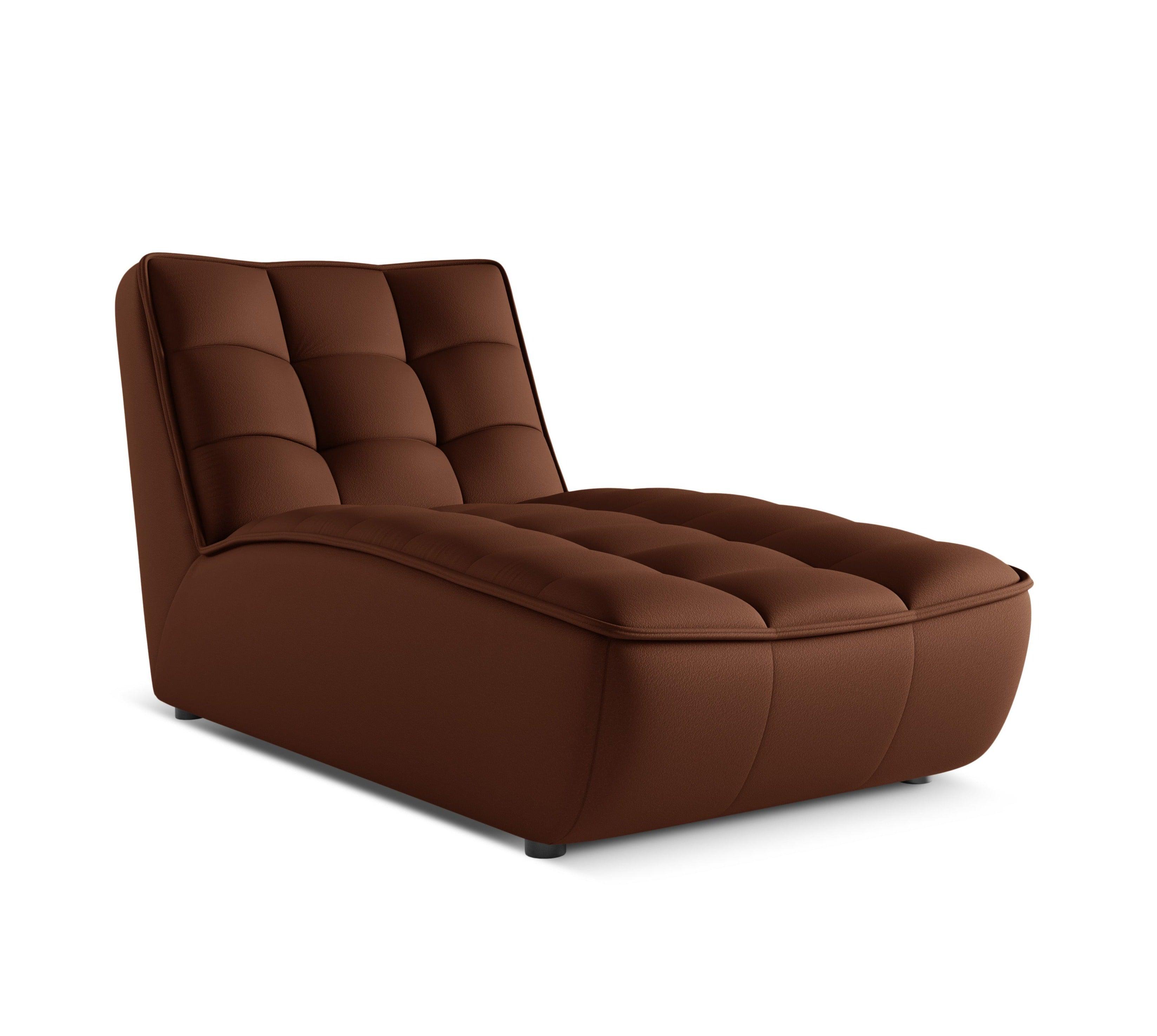 Skórzany szezlong Moni definiuje funkcjonalność i wygoda w połączeniu z nowoczesnym designem. Stylowe pikowanie i oryginalna bryła świetnie sprawdzą się zarówno w eleganckim salonie, jak i w nowoczesnym biurze. Linia siedziska i oparcia jest wygięta w łuk i posiada delikatnie wyprofilowane wgłębienie, oferujące niezwykły komfort użytkowania.
