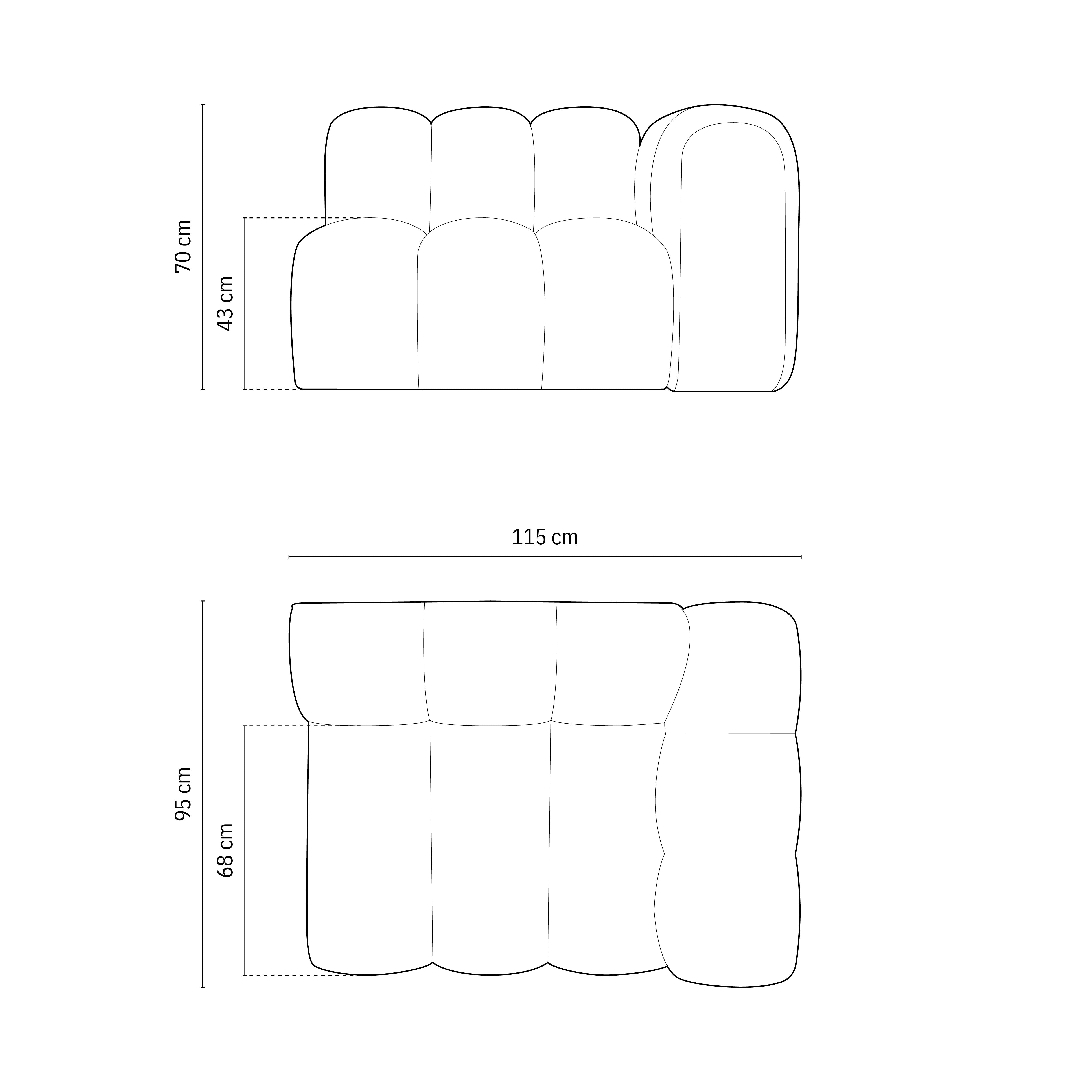 Niezależnie od tego, czy aranżujesz nowoczesną przestrzeń czy stawiasz na klasyczny glamour, ta sofa modułowa idealnie wpasuje się w Twoje potrzeby. Dzięki swojemu designerskiemu wyglądowi i wysokiej jakości wykonaniu, moduł Lupine stanie się centralnym punktem każdego pomieszczenia, nadając mu niepowtarzalnego charakteru i stylu.