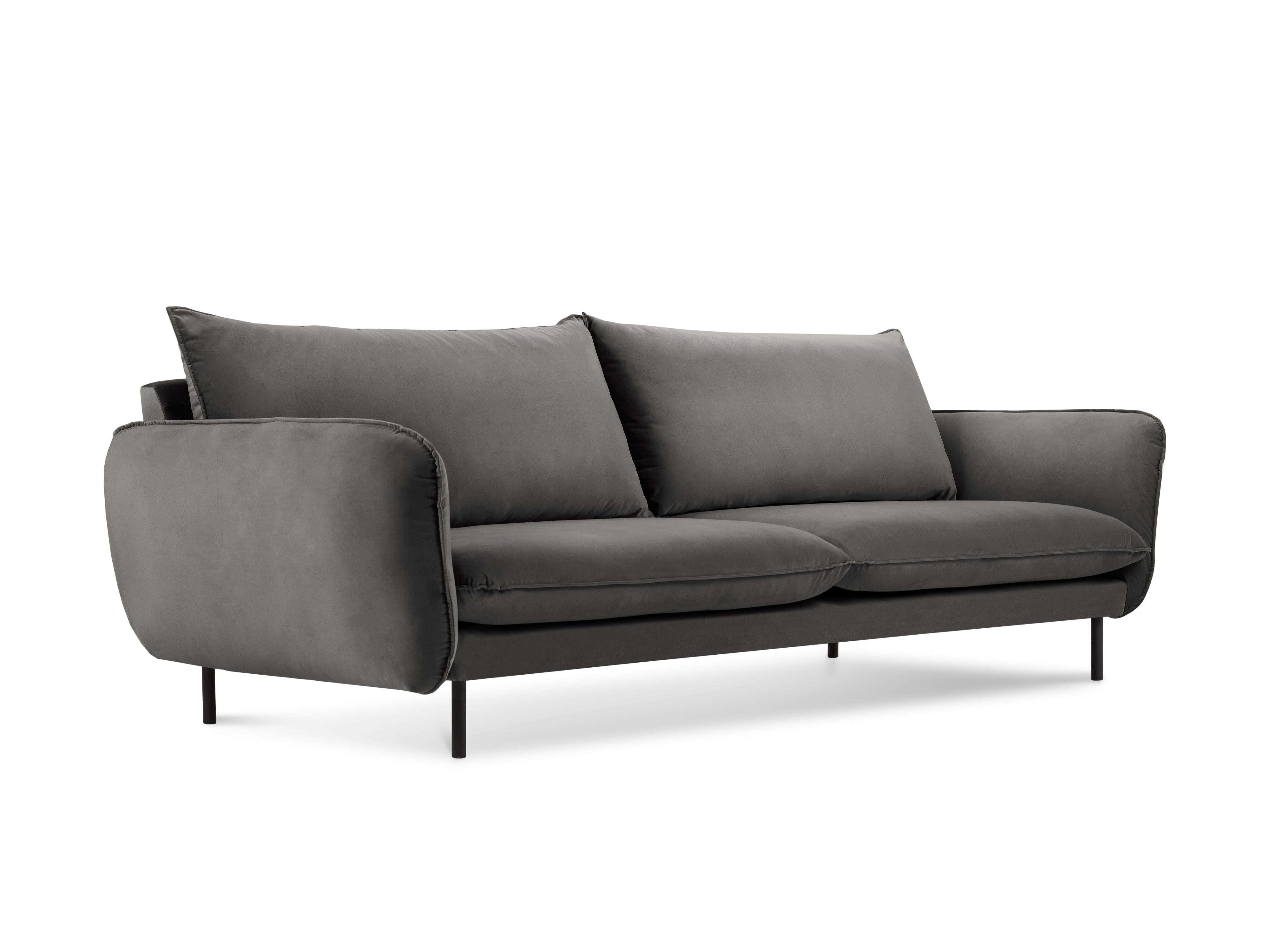 Sofa aksamitna 3-osobowa VIENNA ciemnoszary z czarną podstawą