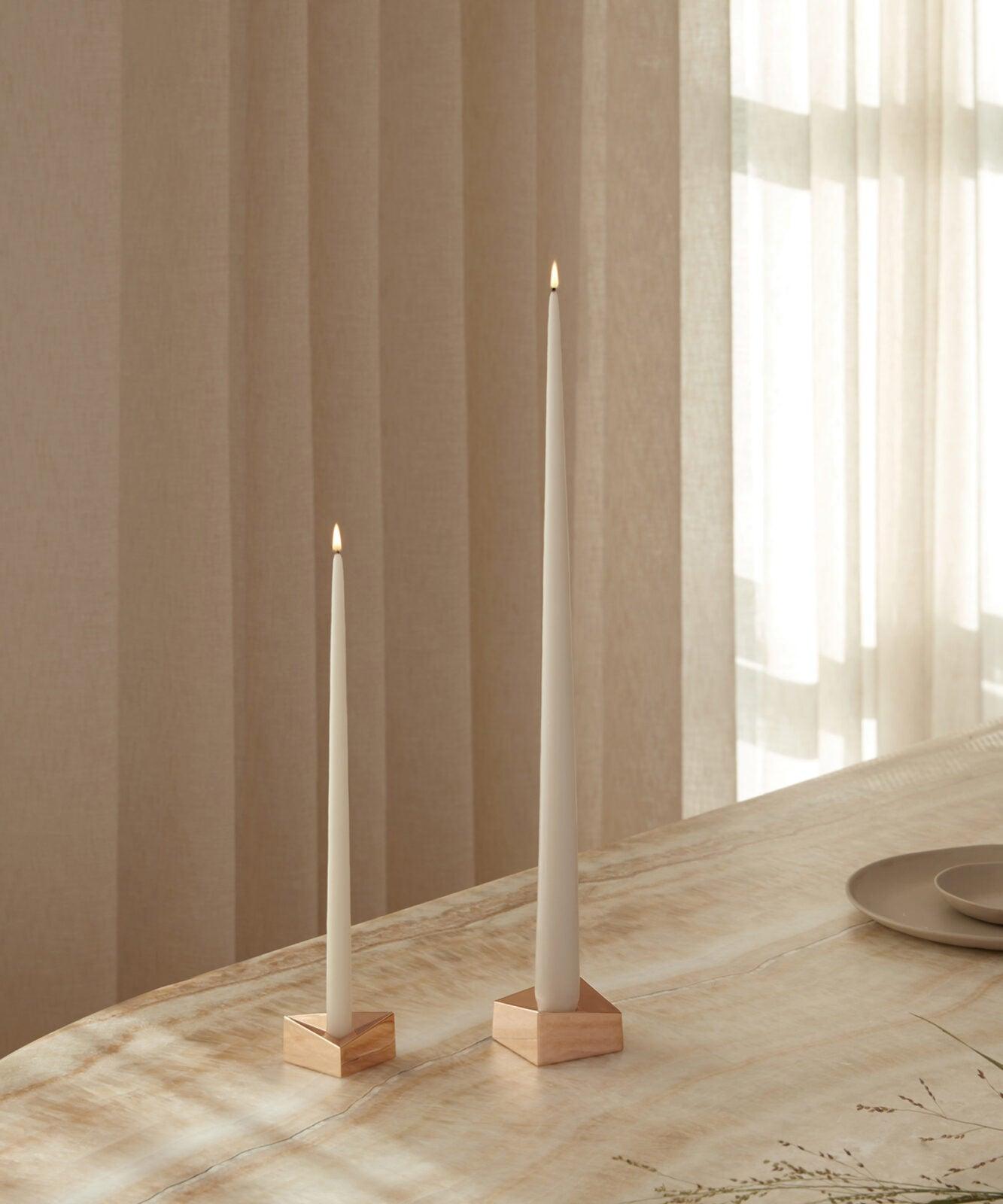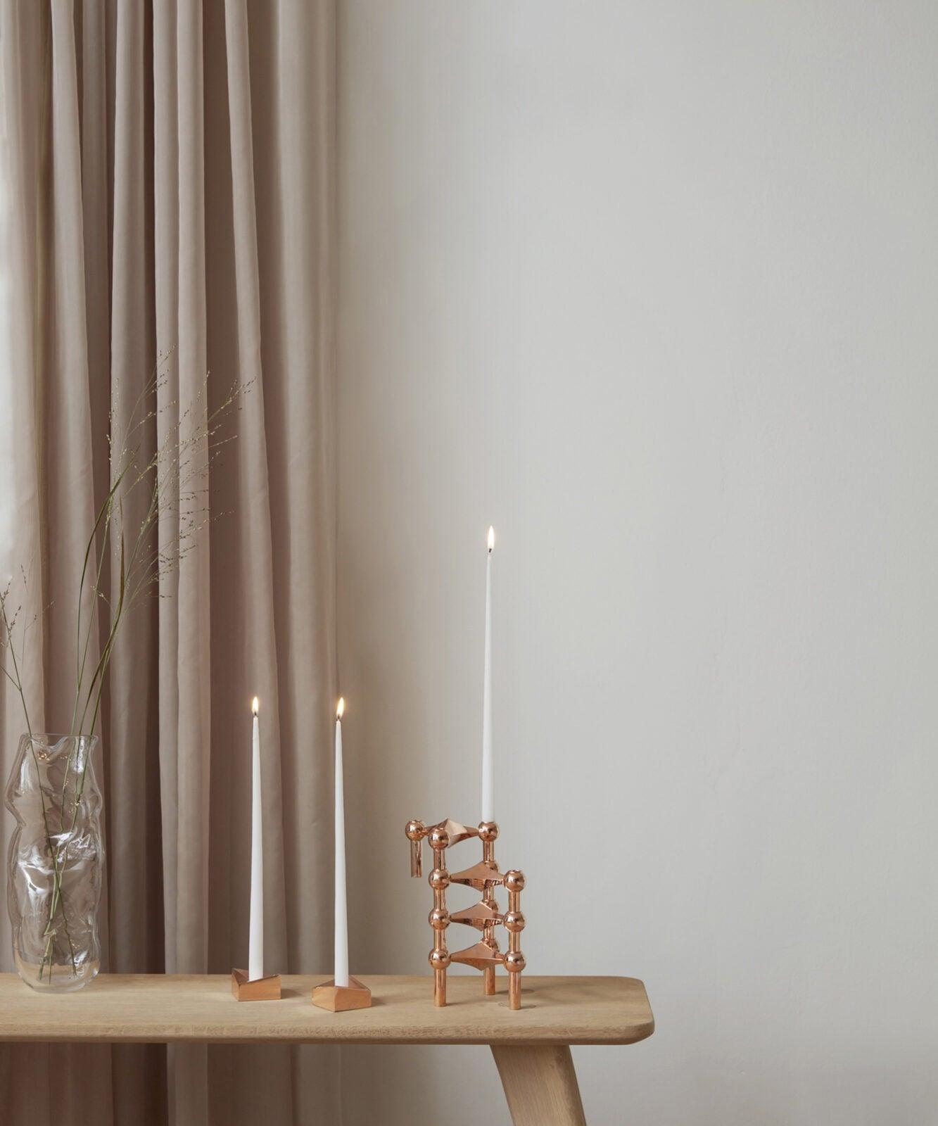 Geometryczna i minimalistyczna forma świeczników tworzy niezwykle estetyczny dodatek do eleganckich wnętrz. Możliwości łączenia różnych elementów pozwala tworzyć rozbudowane rzeźby, które stają się małym dziełem sztuki na stole w jadalni, konsoli czy komodzie w salonie. Będzie to nieoczywisty element, który nada wnętrzu niepowtarzalnego charakteru.