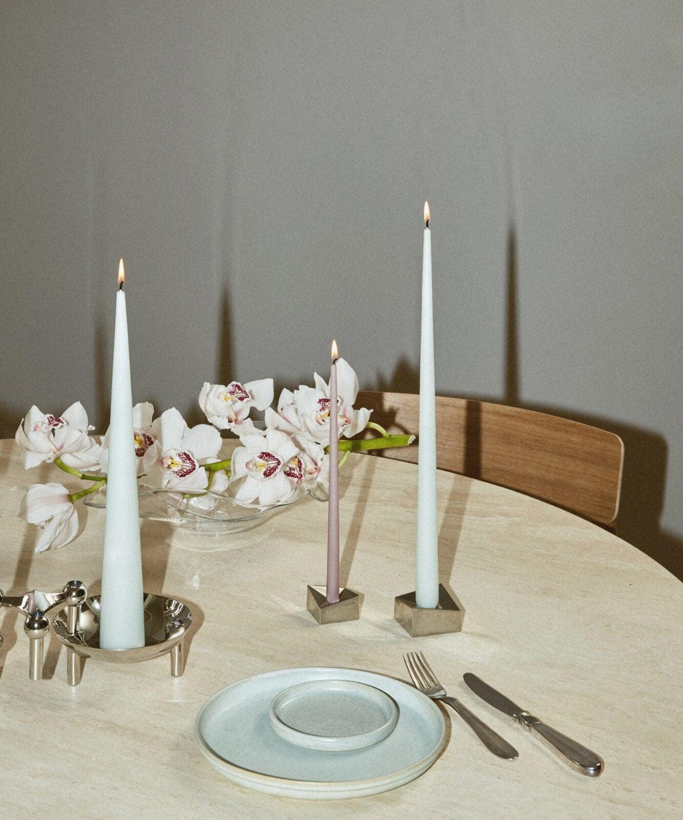 Ekskluzywne, ręcznie barwione świece marki Stoff Nagel mają kształt stożka, dzięki czemu idealnie pasują do dekoracyjnych świeczników. Świece nie kapią, są samogasnące i wypalają się powoli i elegancko, dzięki czemu w świecznikach nie zostają żadne pozostałości.