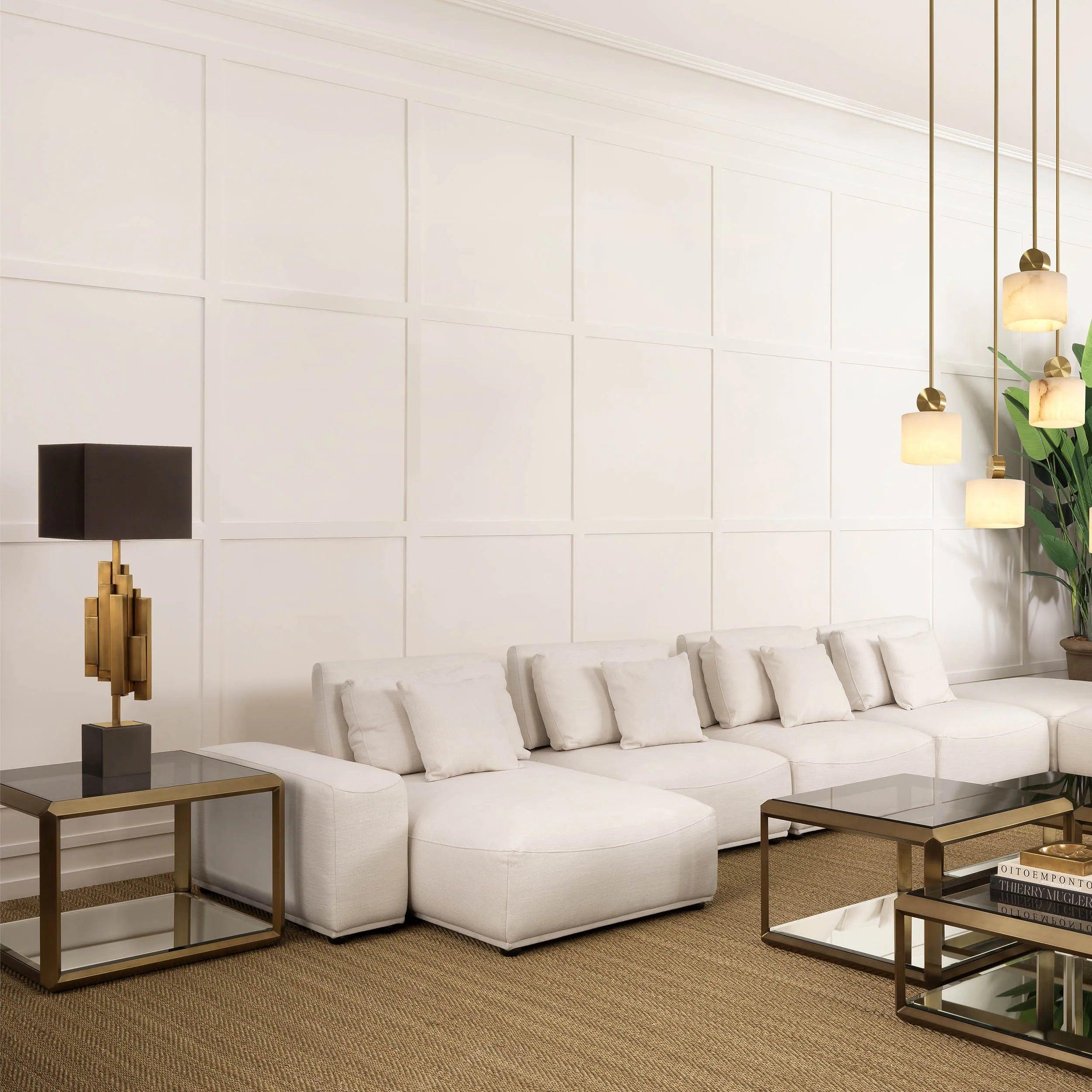 Stolik boczny Callum to esencja retro-elegancji z najbardziej stylowej dekady XX wieku. Wyobraź sobie dyskotekowe kule, błyszczące platformy i śmiały design, a potem spójrz na Callum – mosiężny stolik, który idealnie oddaje ducha lat siedemdziesiątych. Jego wyrafinowana rama wykonana ze szczotkowanego mosiądzu z charakterystycznymi ściętymi krawędziami jest niczym złote ramki przeszłości. Blat ze szkła dymnego dodaje głębokiej tajemniczości, podczas gdy dolna półka z lustrzanego szkła doskonale odbija światło, tworząc wrażenie przestrzeni i luksusu.