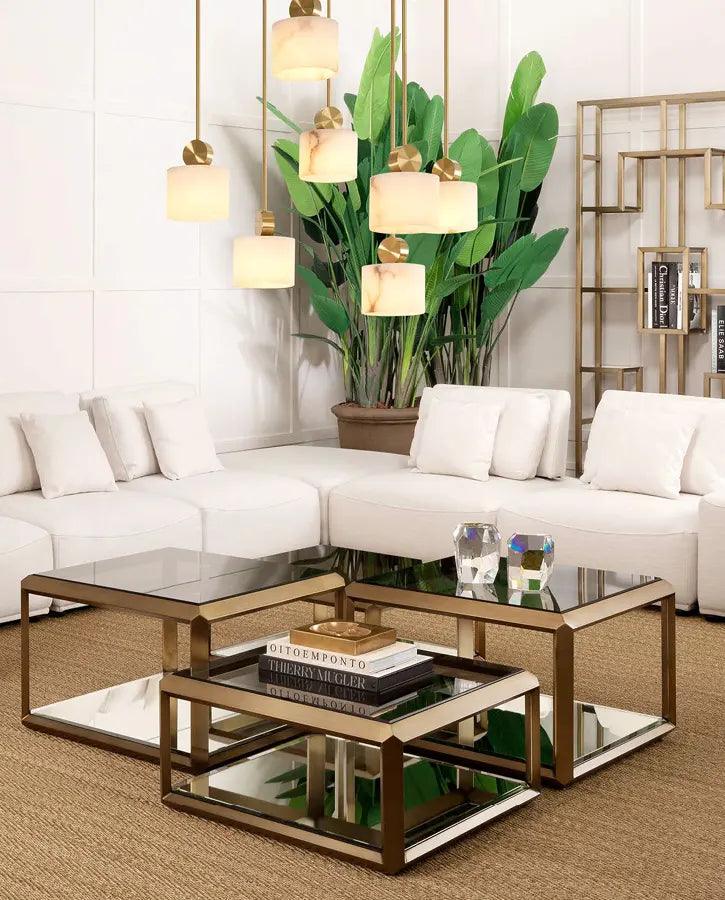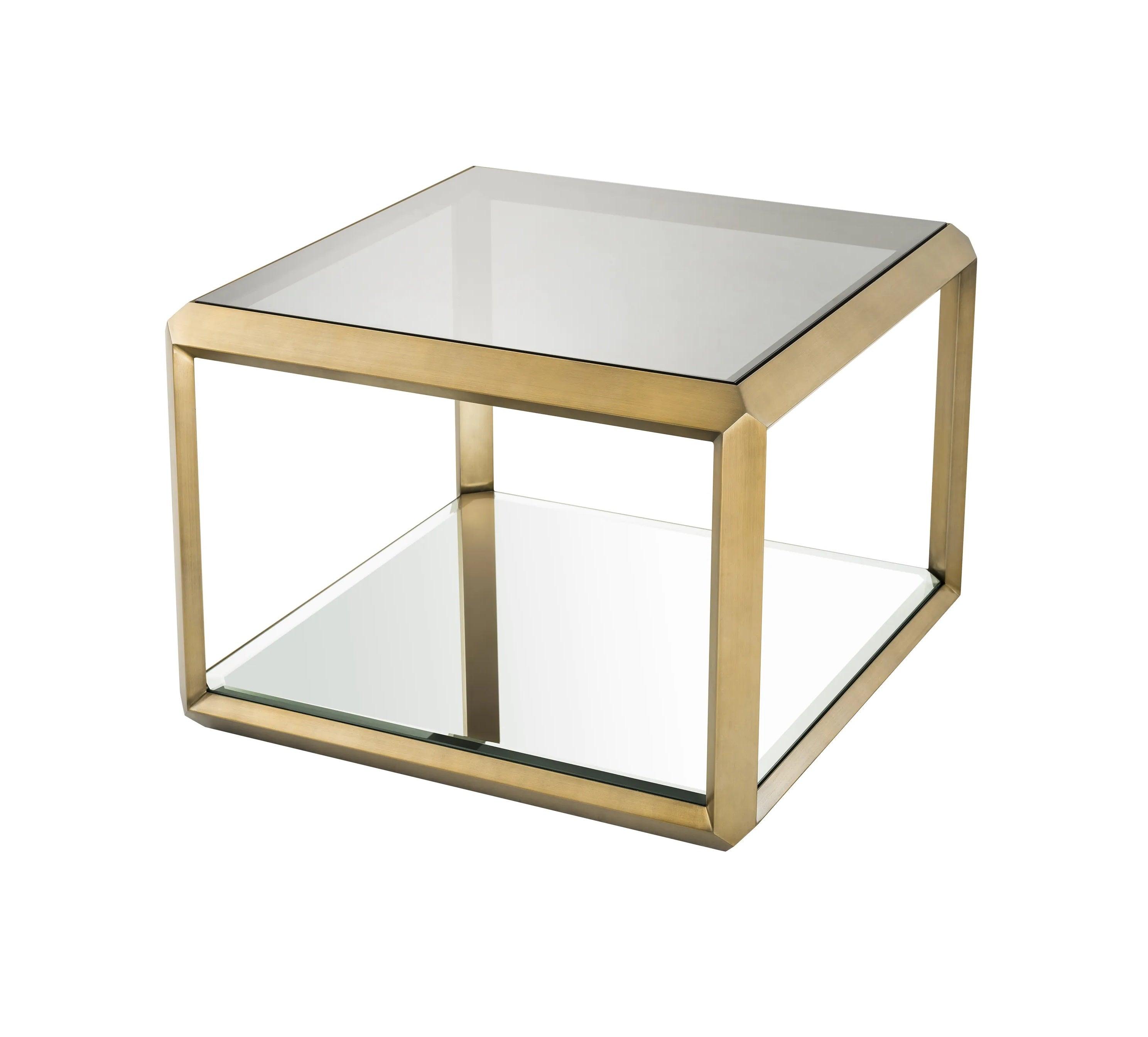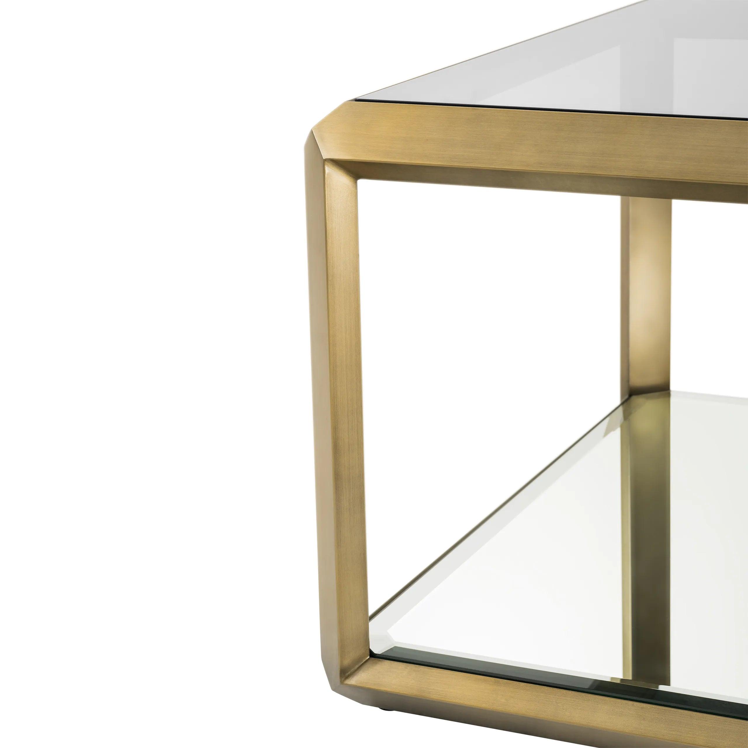 Stolik boczny CALLUM mosiężny ze szklanym blatem