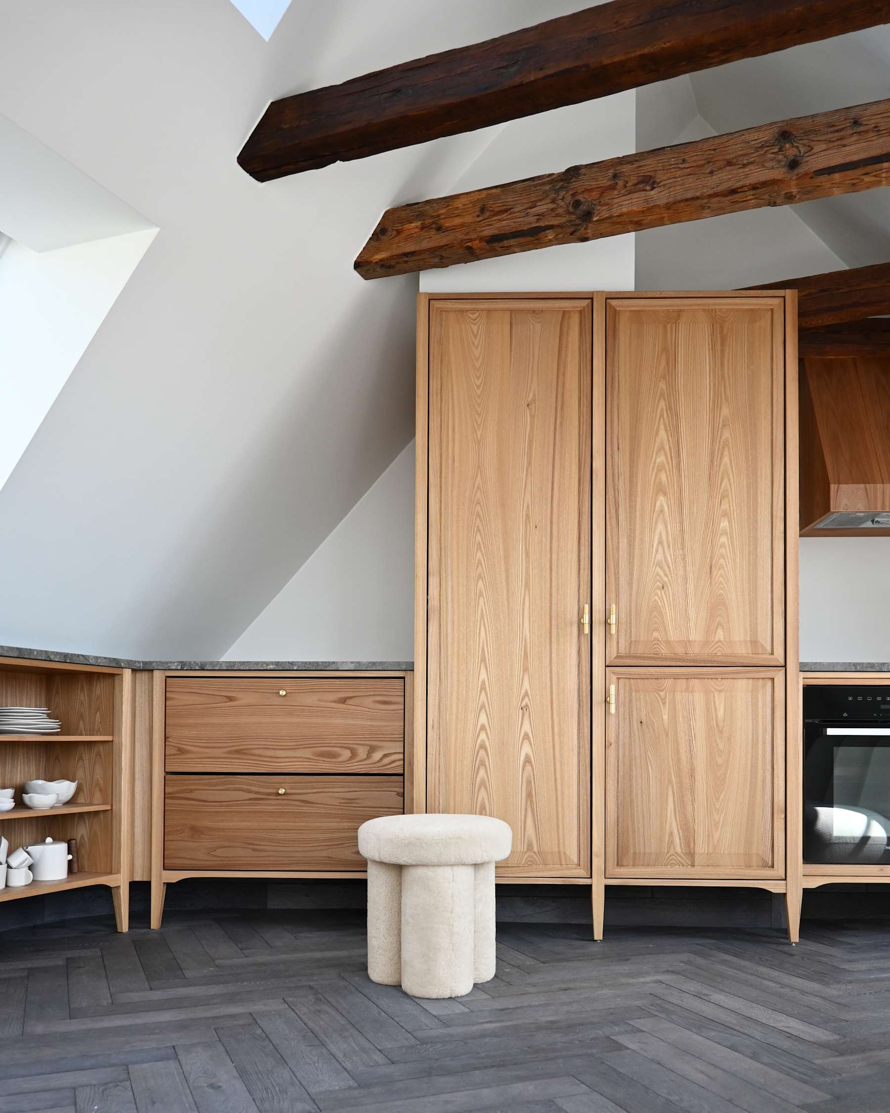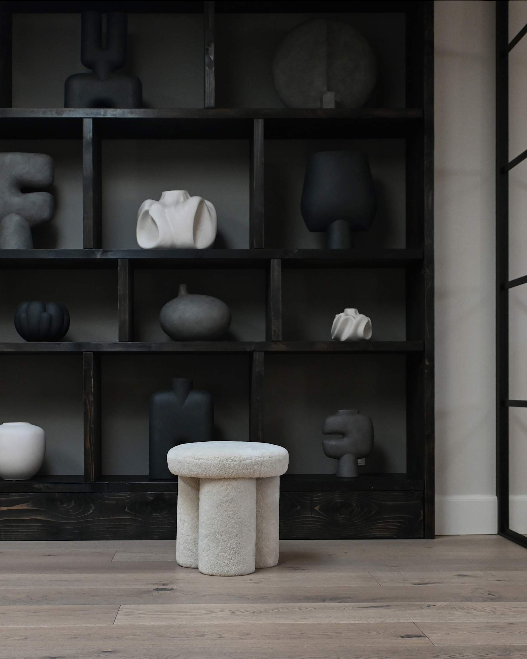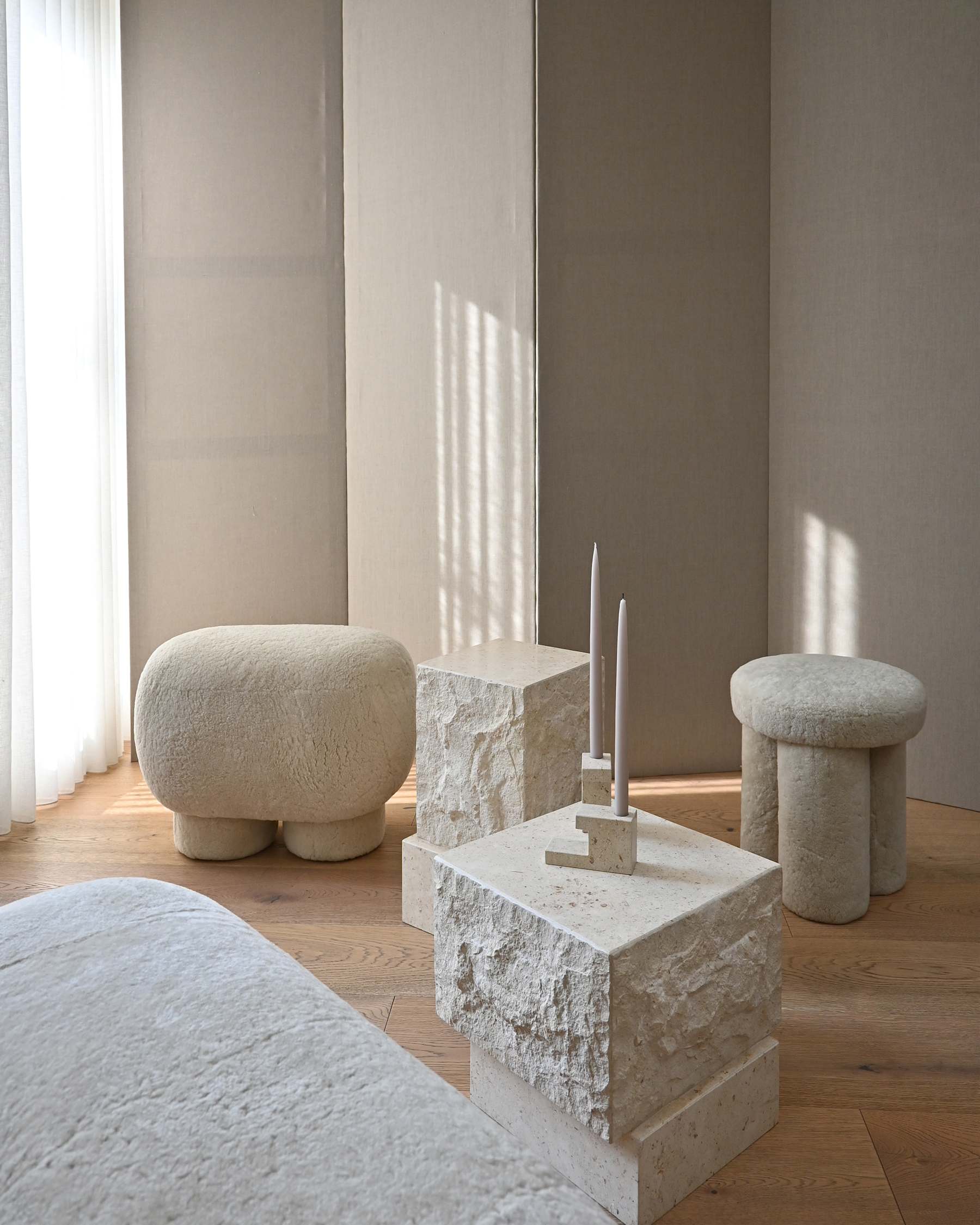 Stołek w tkaninie Sheepskin BIG FOOT piaskowy