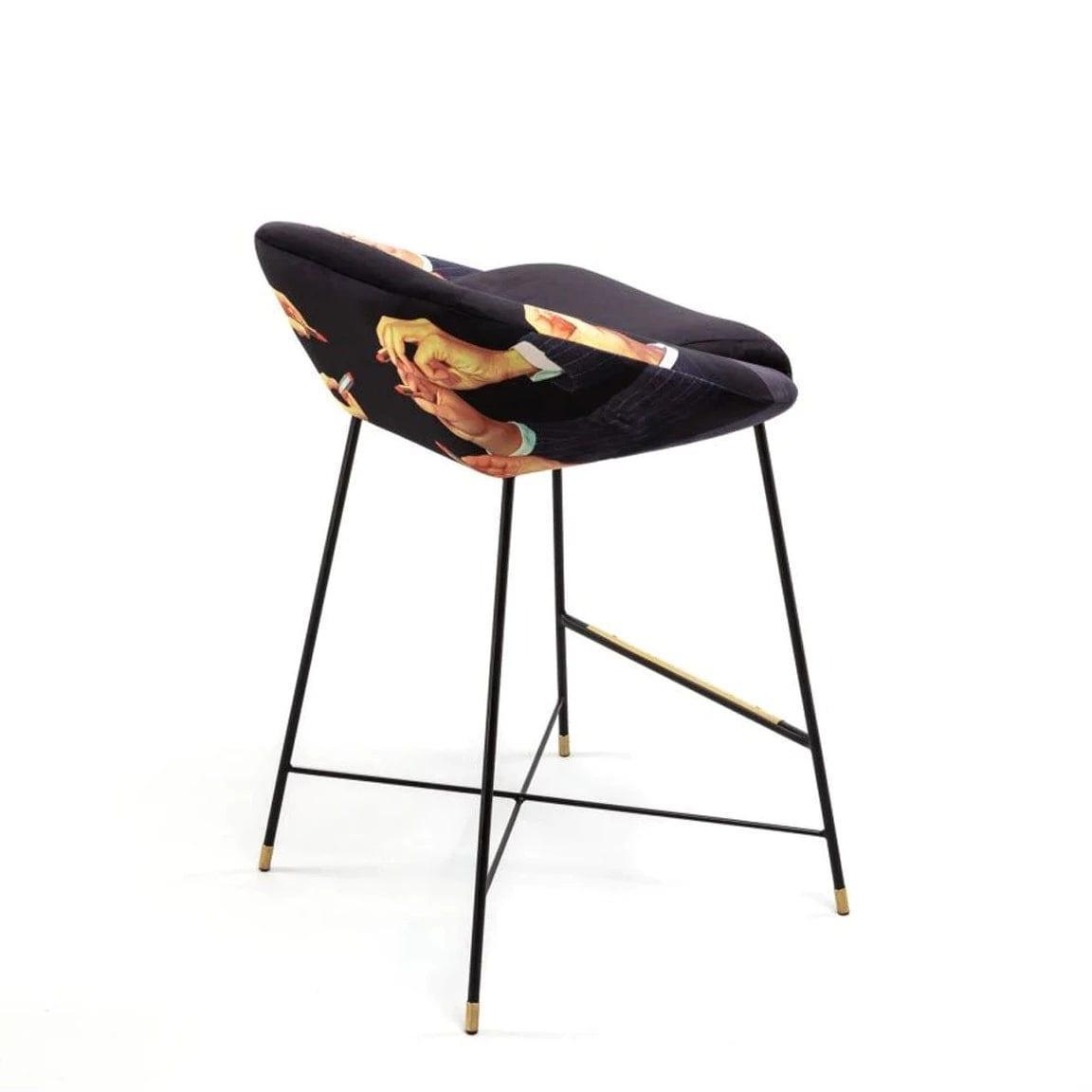 Designerski hoker w stylu lat 50-tych od włoskiego króla awangardy — Seletti, które niczym wrota do innego, surrealistycznego wymiaru, nada wnętrzu niepowtarzalnego charakteru. Tapicerka o wyrazistych, pełnych dynamizmu kolorach i lekko kontrowersyjny kolaż tworzą oryginalne dzieło sztuki.